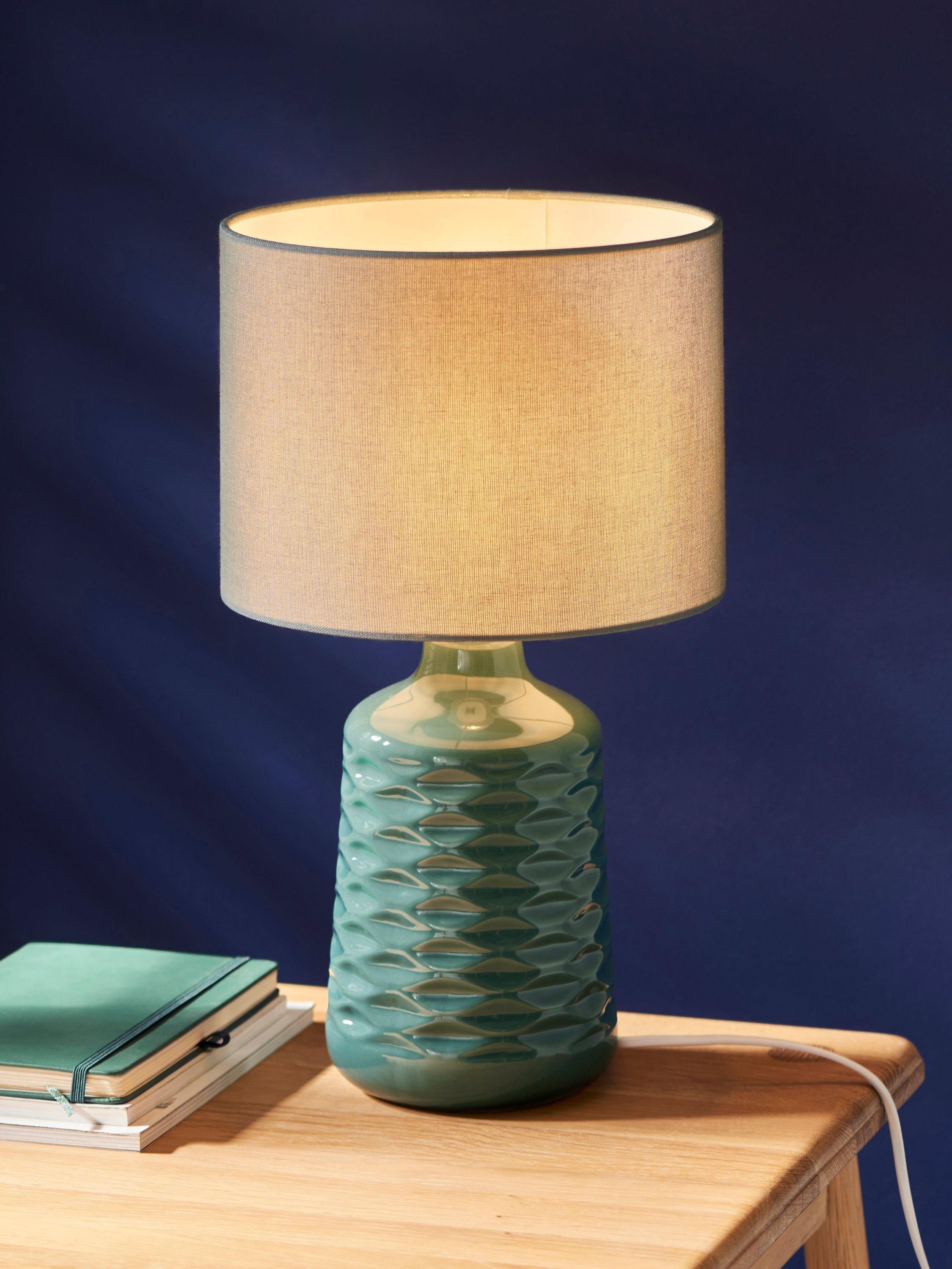 With a ceramic base and fabric lampshade, this table lamp offers a warm glow of light. The base has a ribbed finish and is available in a range of bold or neutral colours, so it's easier than ever to add an instant accent of colour and texture to your space.
