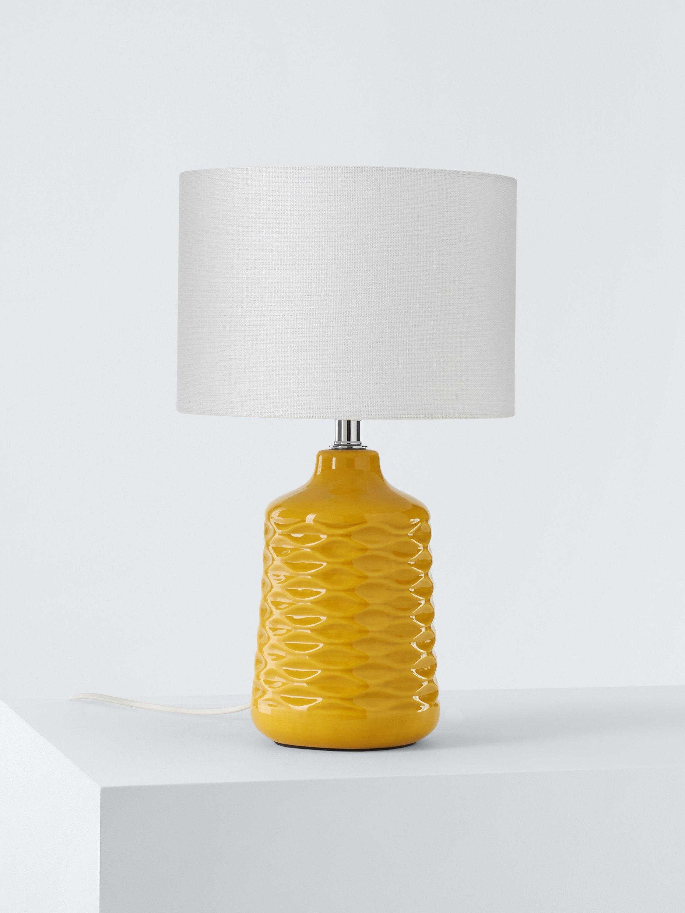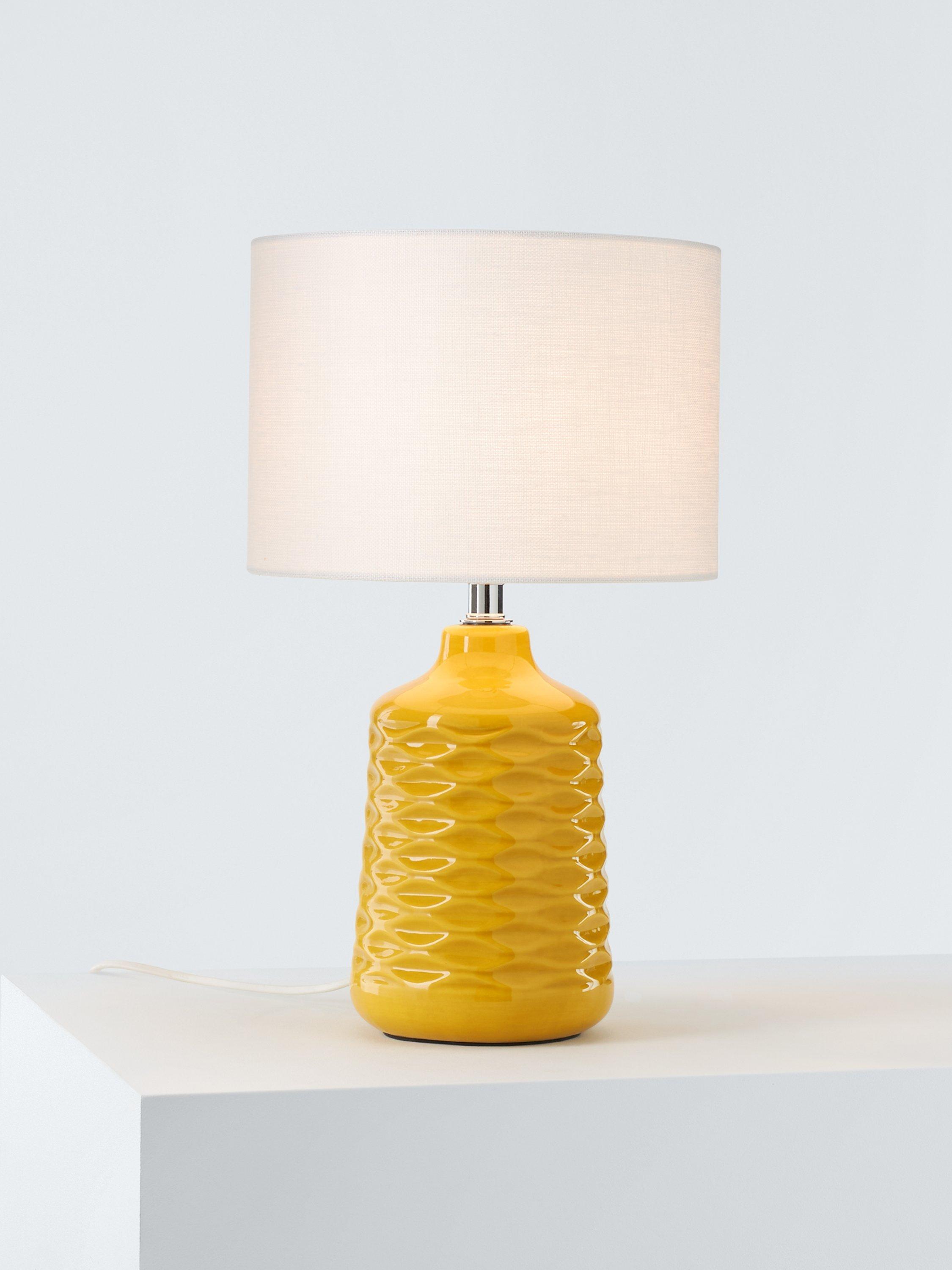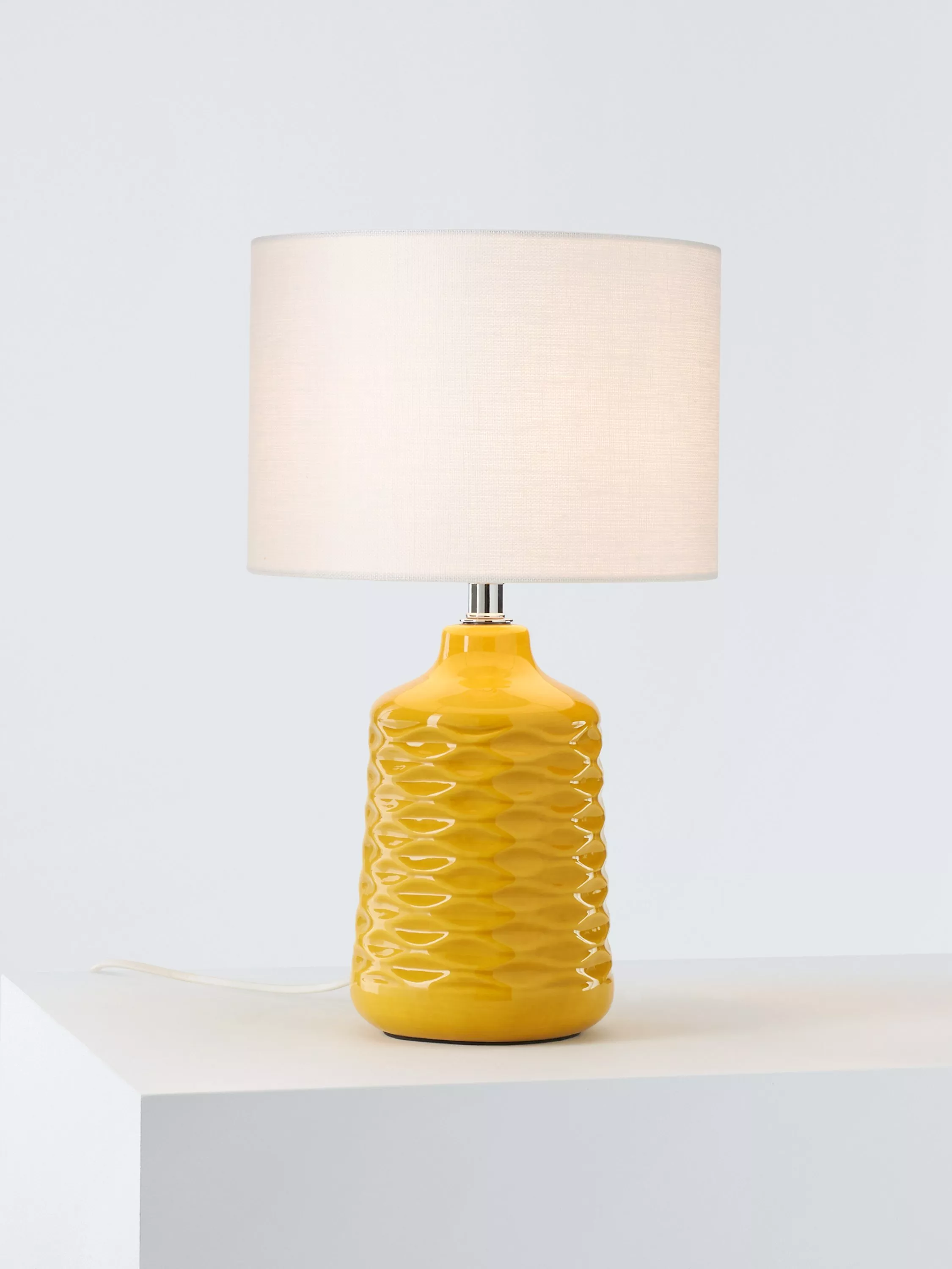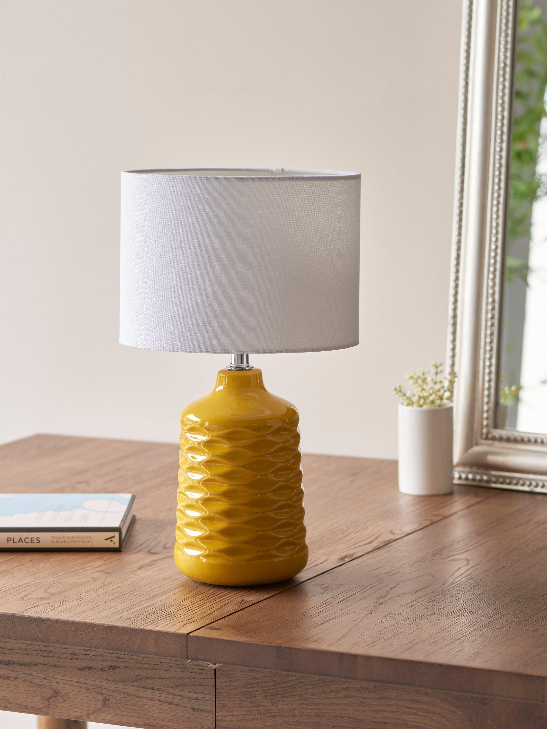 With a ceramic base and fabric lampshade, this table lamp offers a warm glow of light. The base has a ribbed finish and is available in a range of bold or neutral colours, so it's easier than ever to add an instant accent of colour and texture to your space.