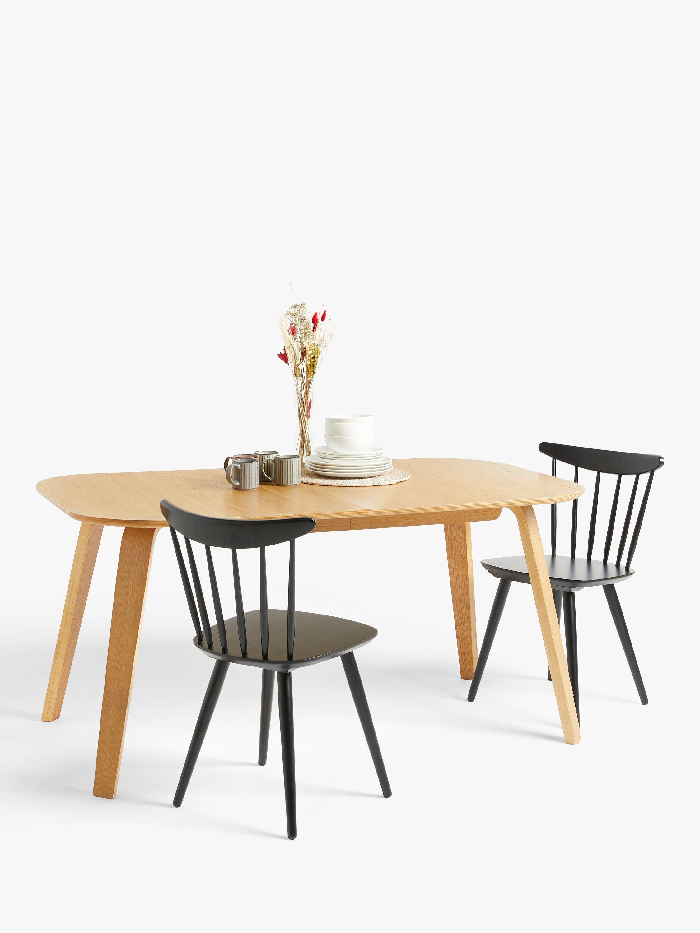 We've made this practical dining table from high-quality oak veneer and plywood, with a lacquered coating for extra durability. There's space for eight people when fully extended, so it's great for entertaining at home. Rounded edges give it a softer, more subtle profile, while splayed legs play on Scandi-inspired design. We like how it will add a natural accent to your space, but we've also made it with painted legs for a more striking, on-trend look.