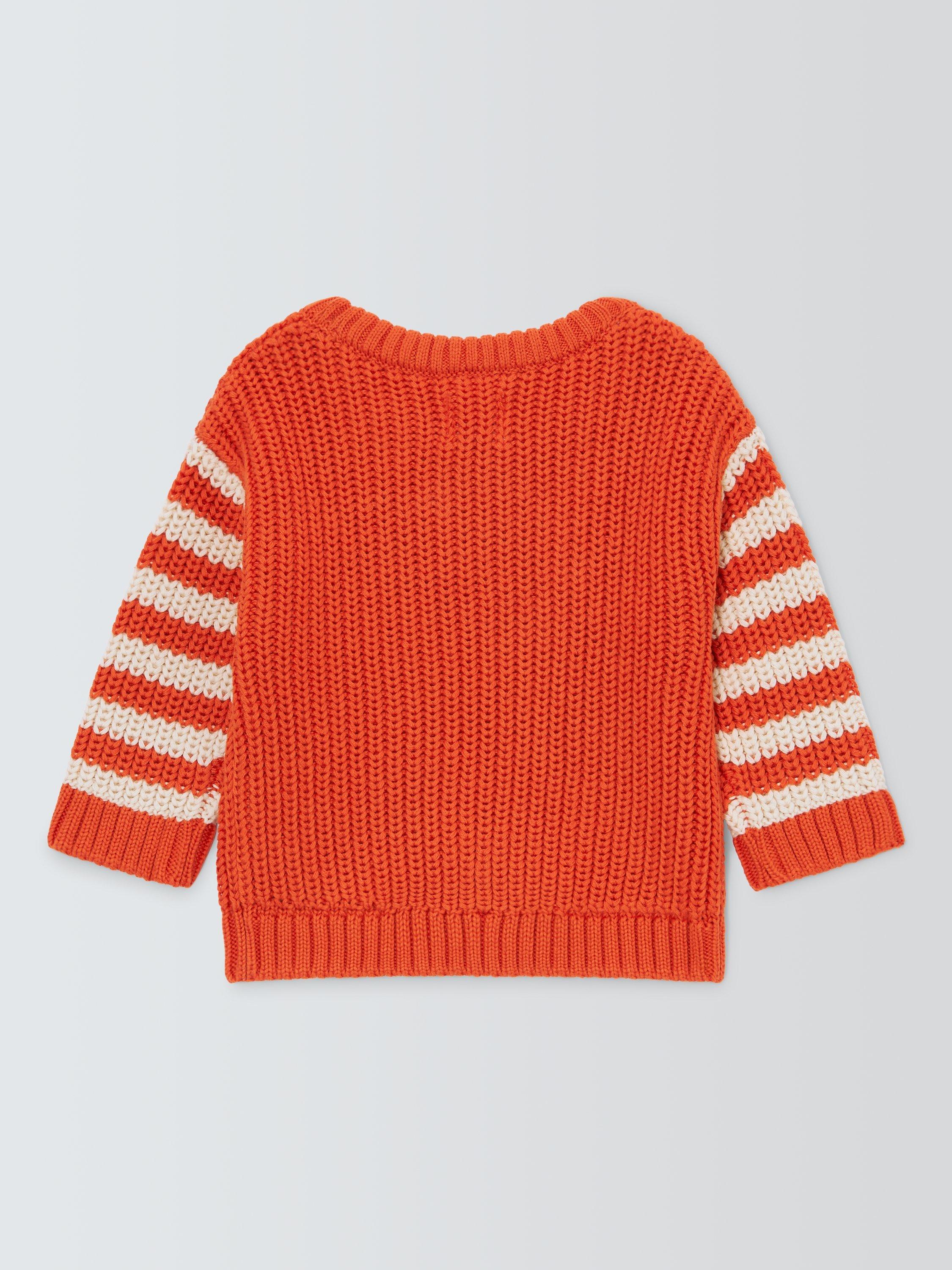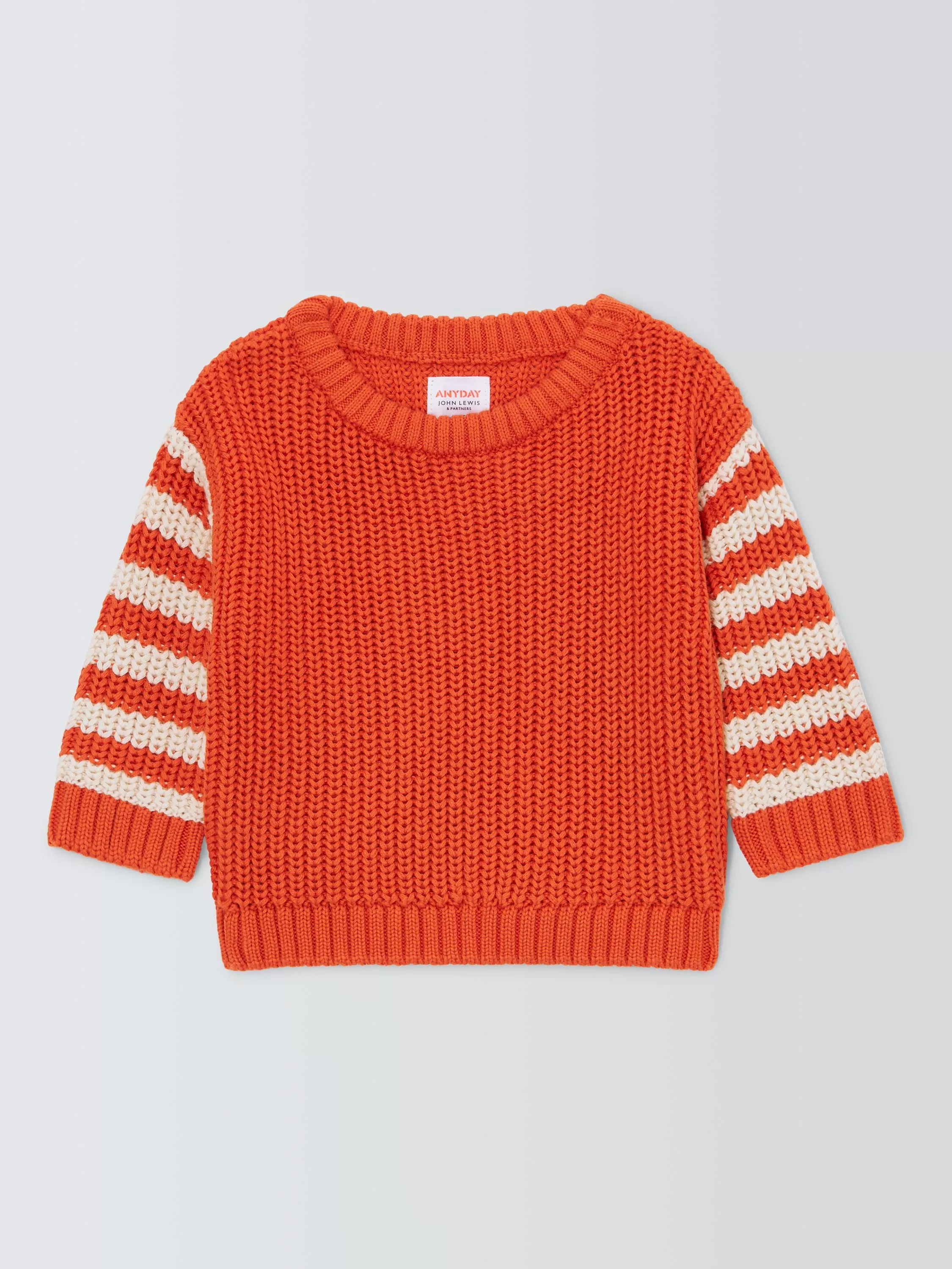 Beautifully knitted, this jumper has a solid centre with striped sleeved. It is made from a cotton acrylic blend so it's both soft and breathable to wear.
