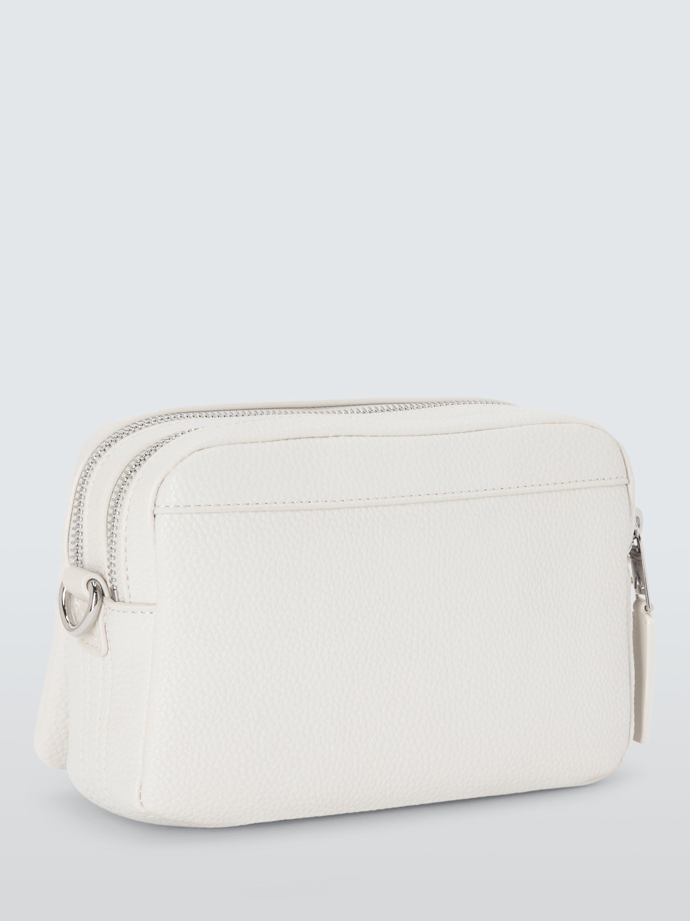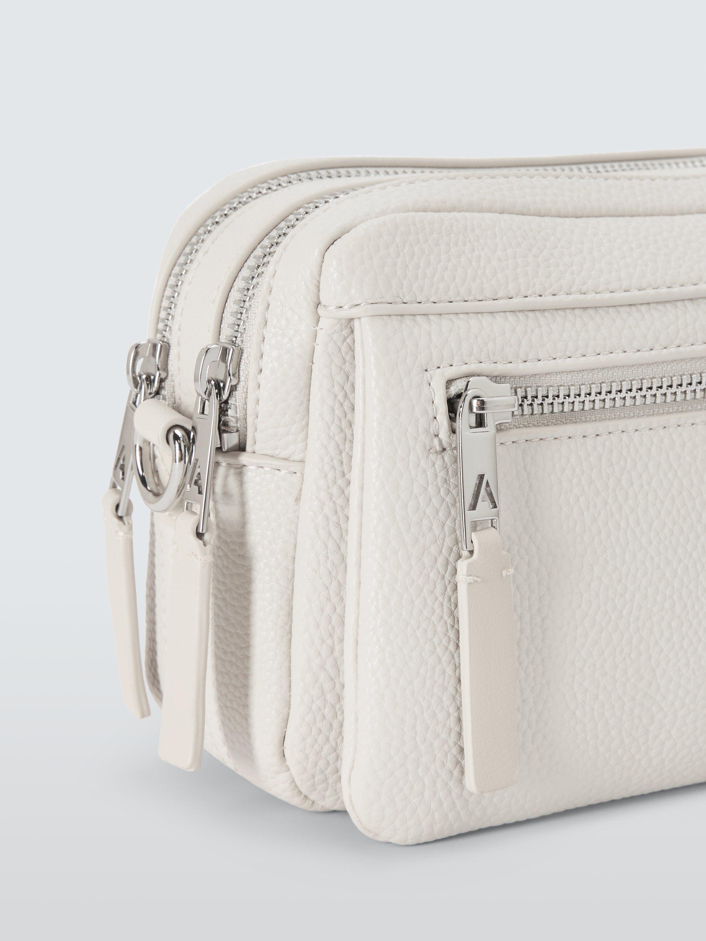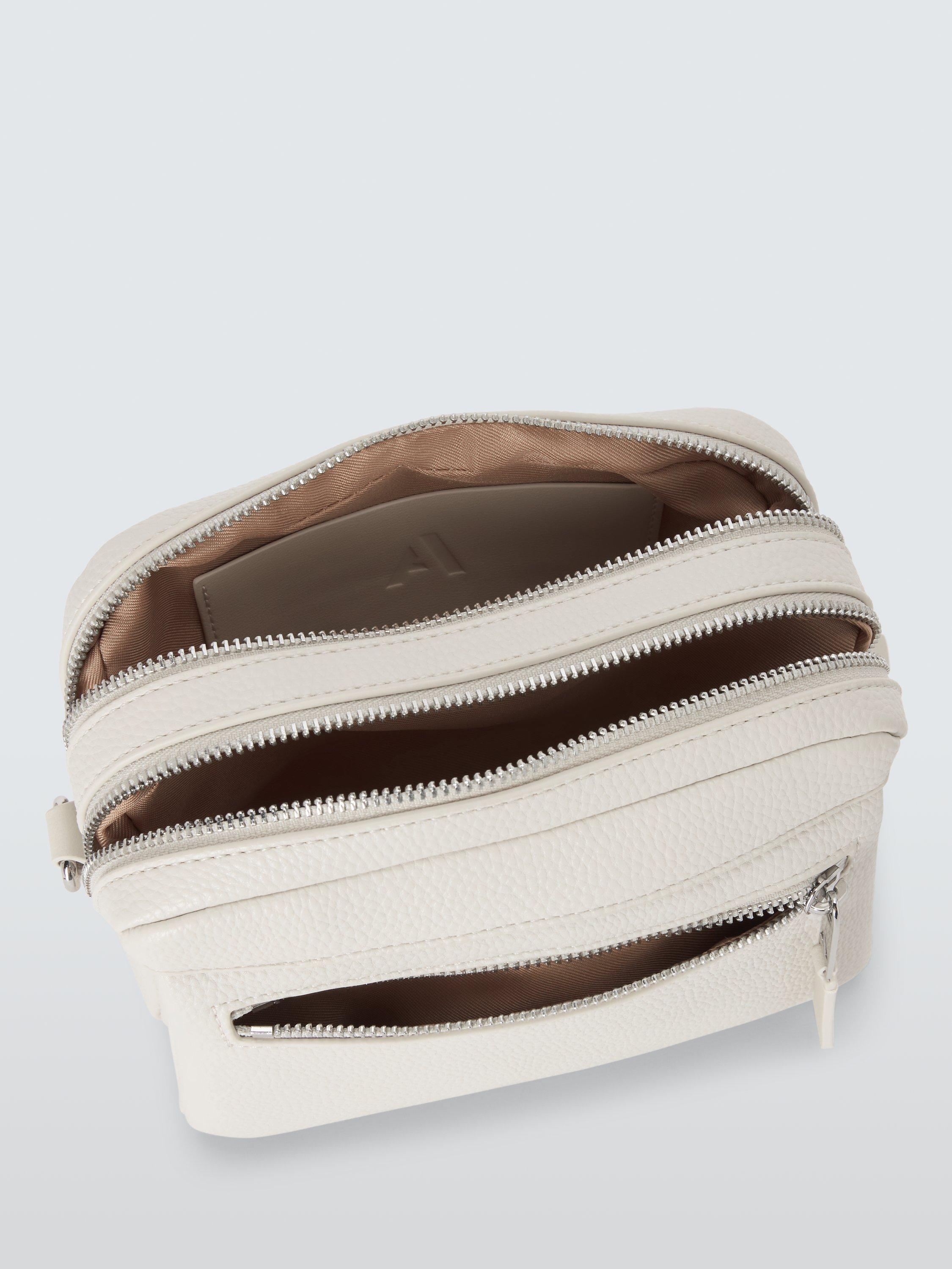 Stylish shoulder bag with two internal compartments and an exterior zip pocket.