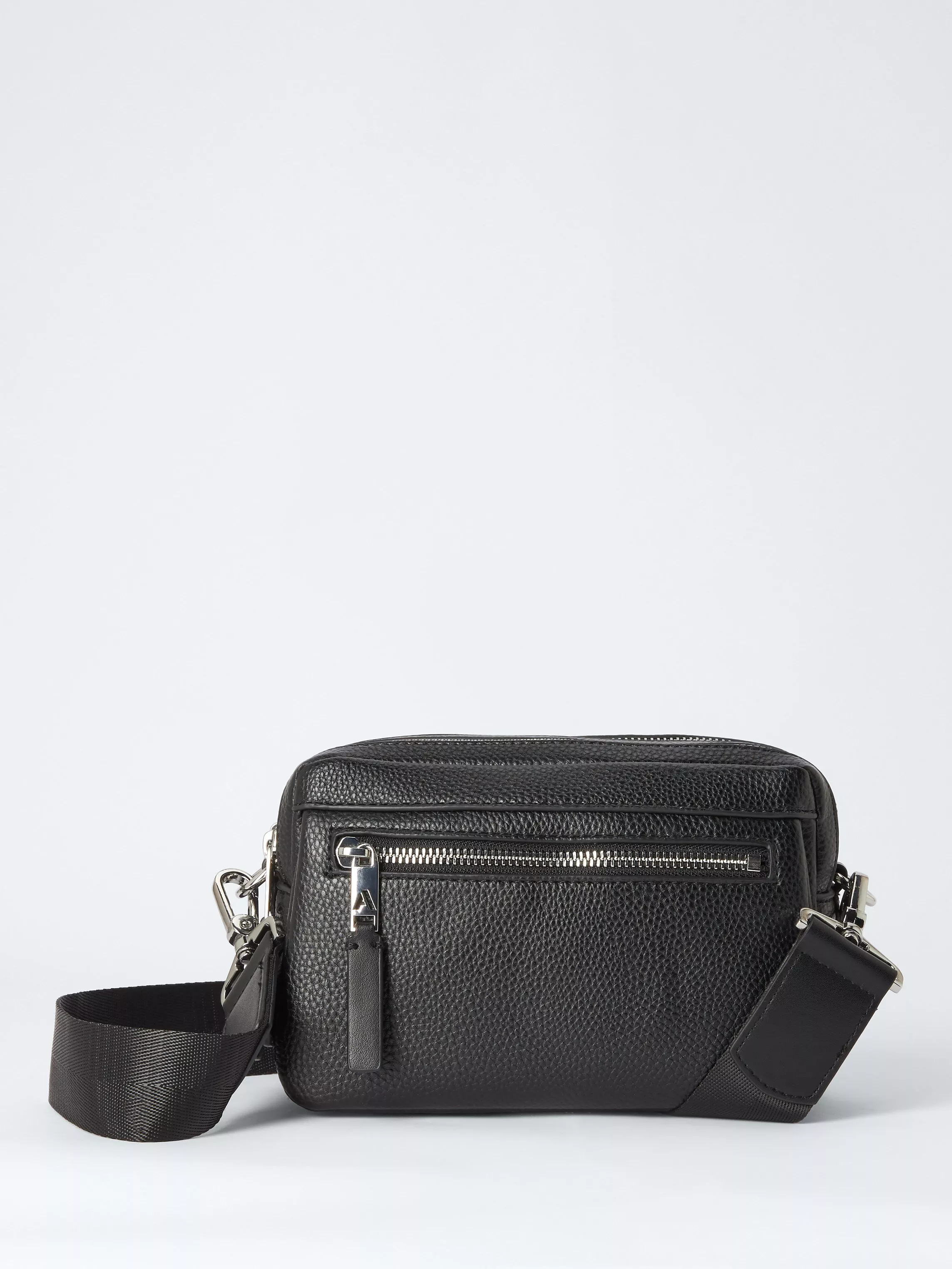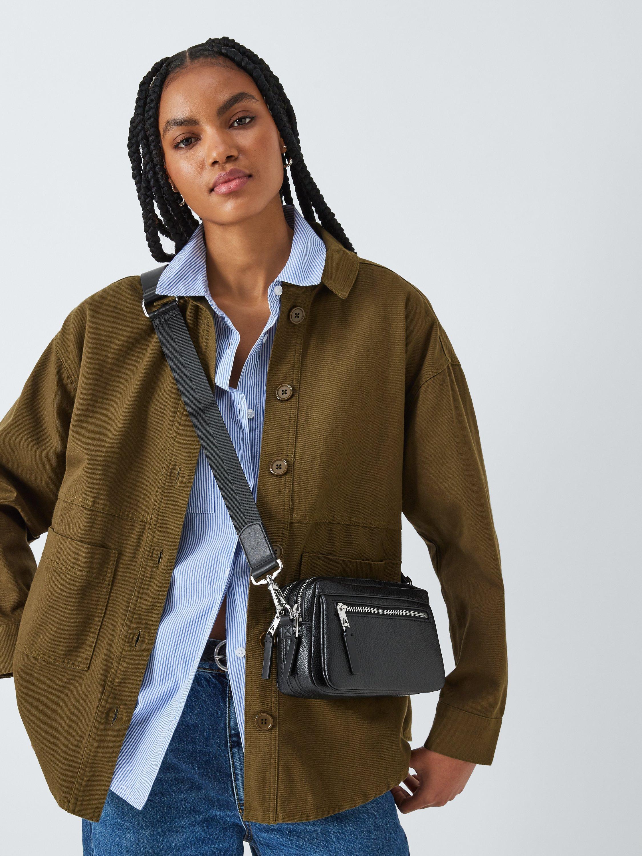 Stylish shoulder bag with two internal compartments and an exterior zip pocket.
