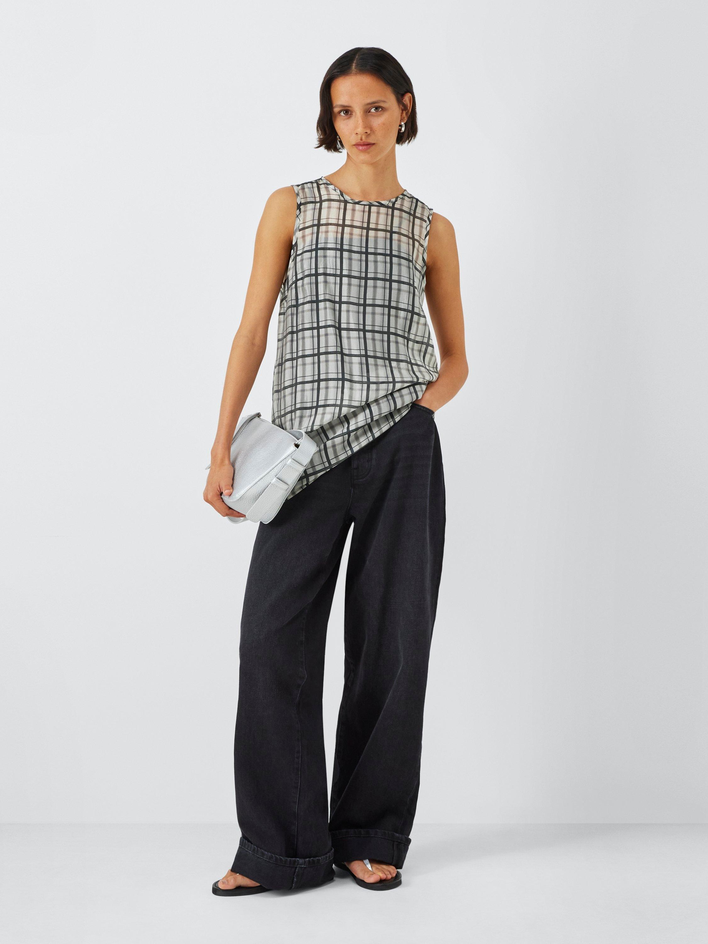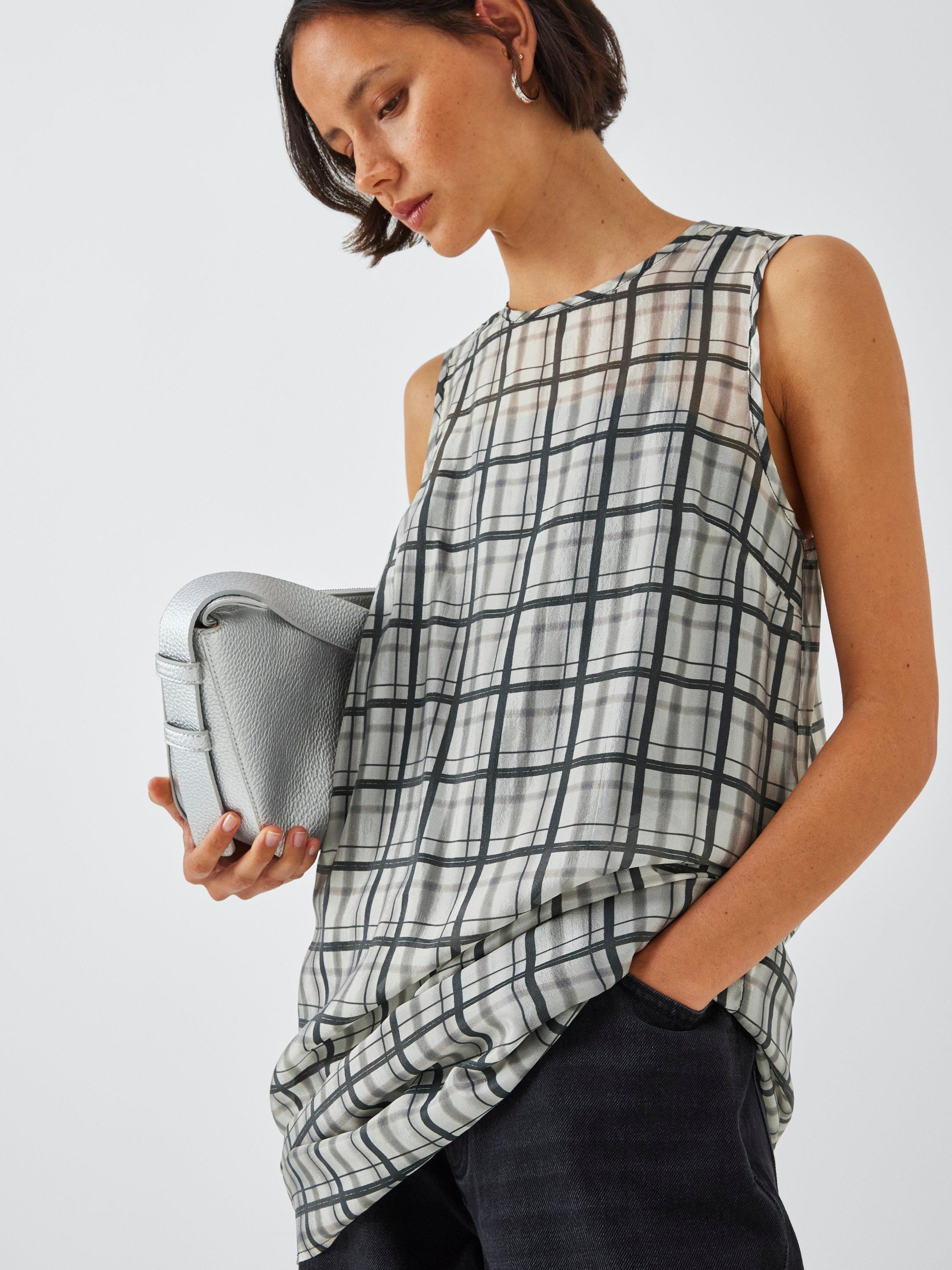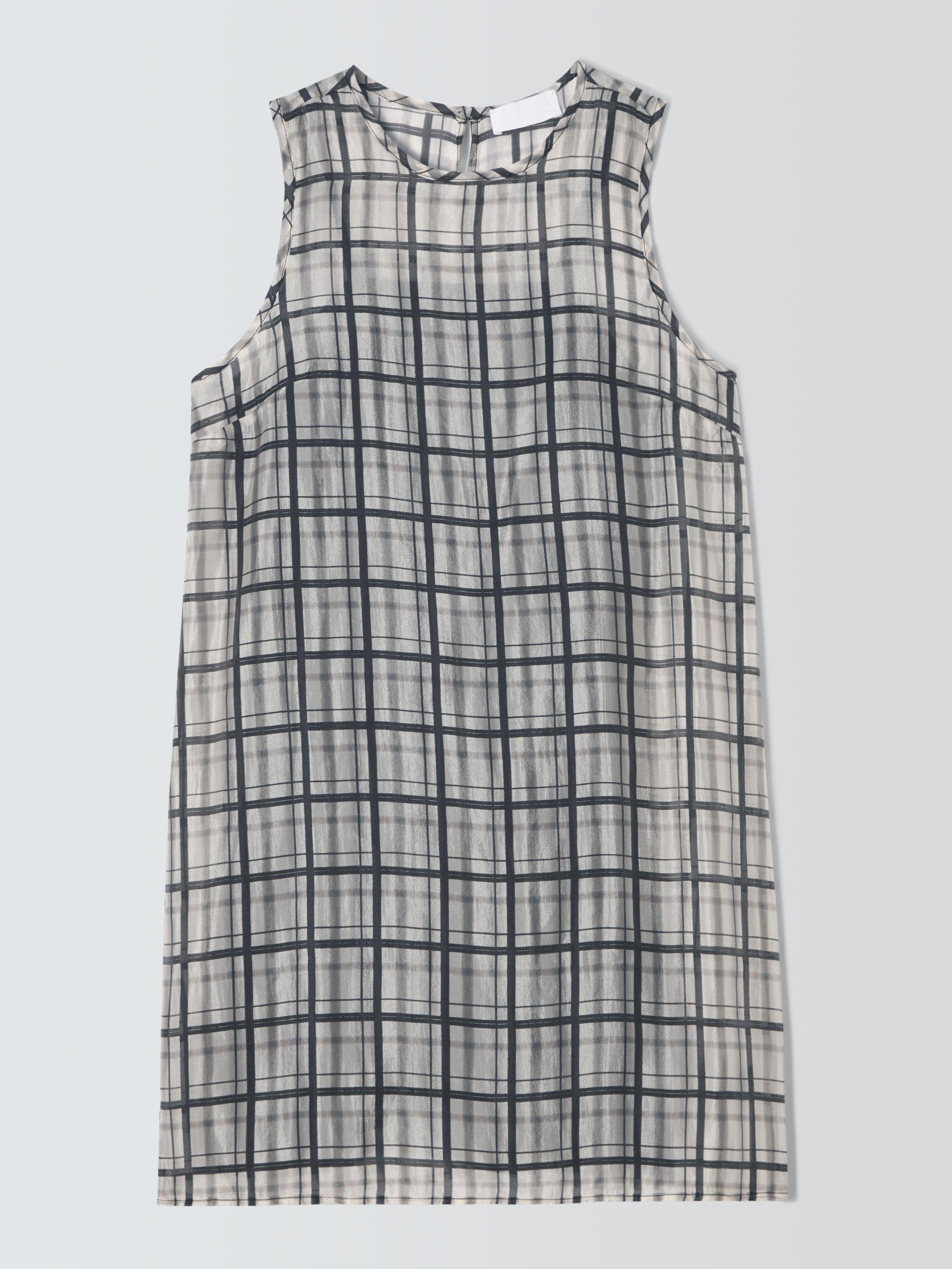 - Check sleeveless shift dress