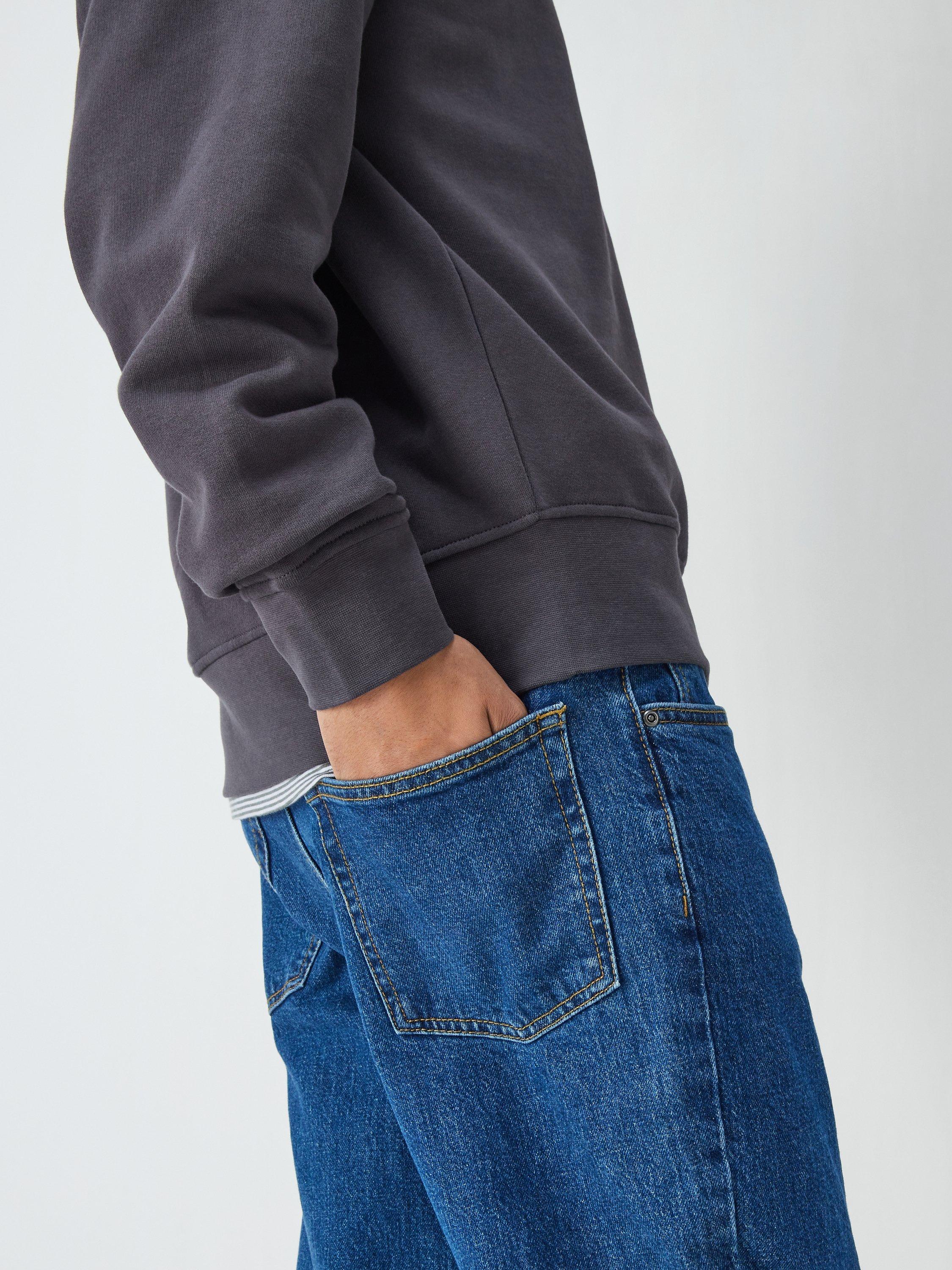 A plain cotton sweatshirt is a must-have, ready in the wardrobe to throw on. A classic design, this long-sleeved crew neck sweatshirt is cut to a comfortable regular fit with ribbed cuffs and hem.