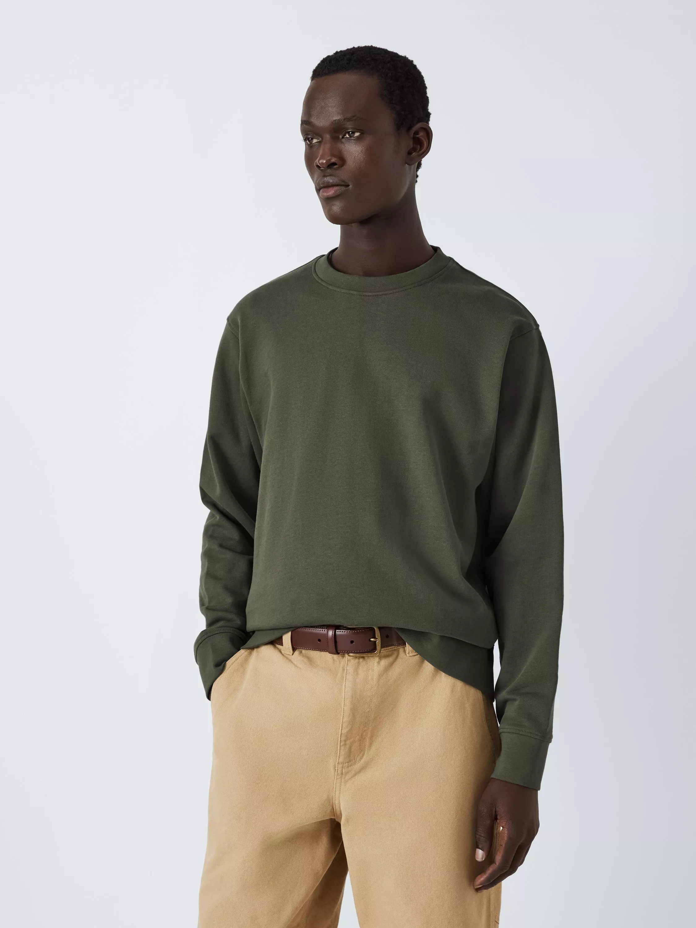 A plain cotton sweatshirt is a must-have, ready in the wardrobe to throw on. A classic design, this long-sleeved crew neck sweatshirt is cut to a comfortable regular fit with ribbed cuffs and hem.