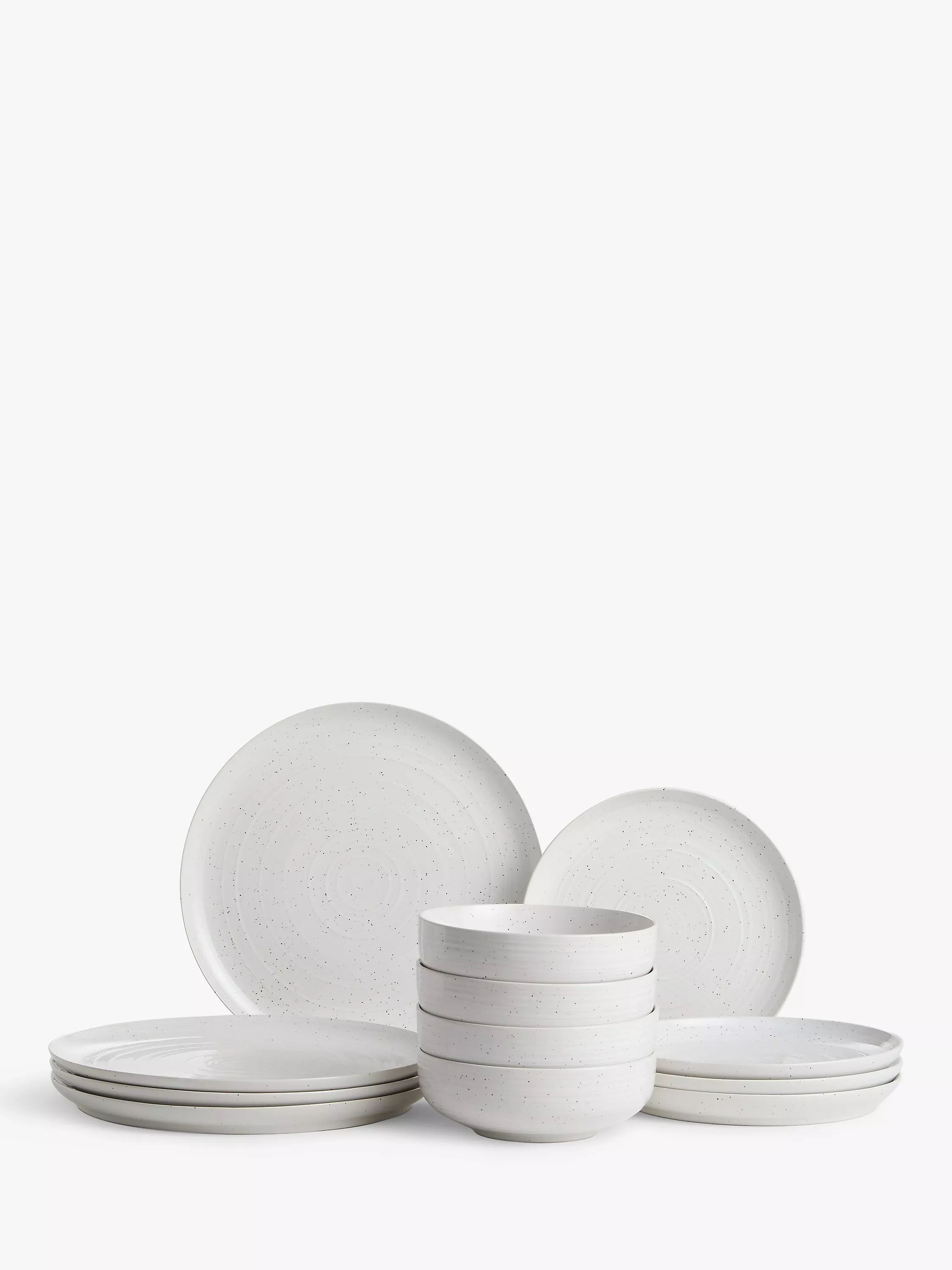 A contemporary 12-piece dinnerware set from our Craft tableware range, made of stoneware. Finished with a glossy reactive speckle glaze, the set is dishwasher and microwave safe for everyday use.