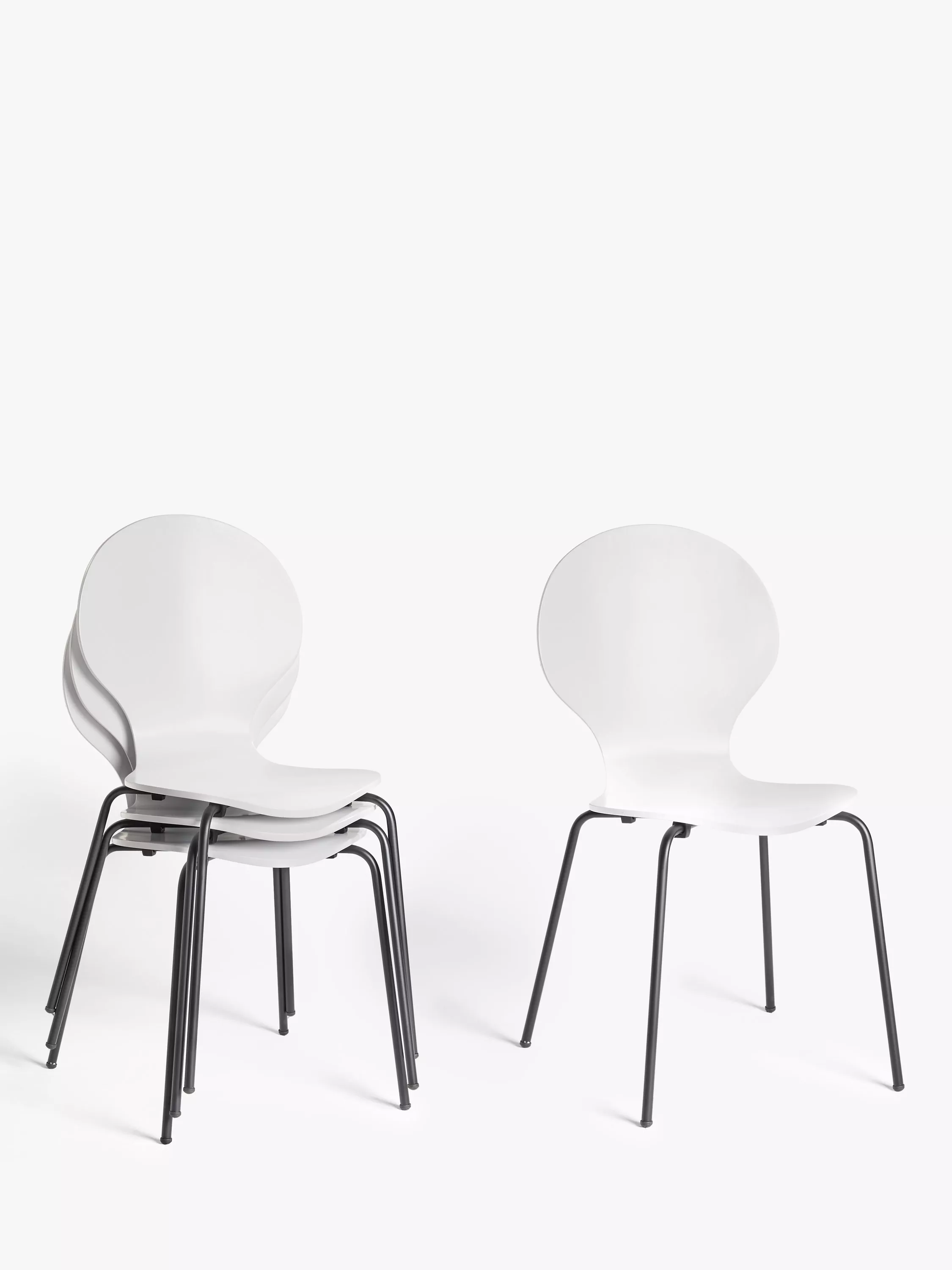 Great-value and reassuringly robust, these chairs are ideal for smaller spaces. Supplied as a set of four, the curved seat is made from painted plywood and the metal frame is finished in black for an on-trend, monochrome contrast. Plus, for added practicality, the chairs are stackable for easy storage and also quick to assemble.