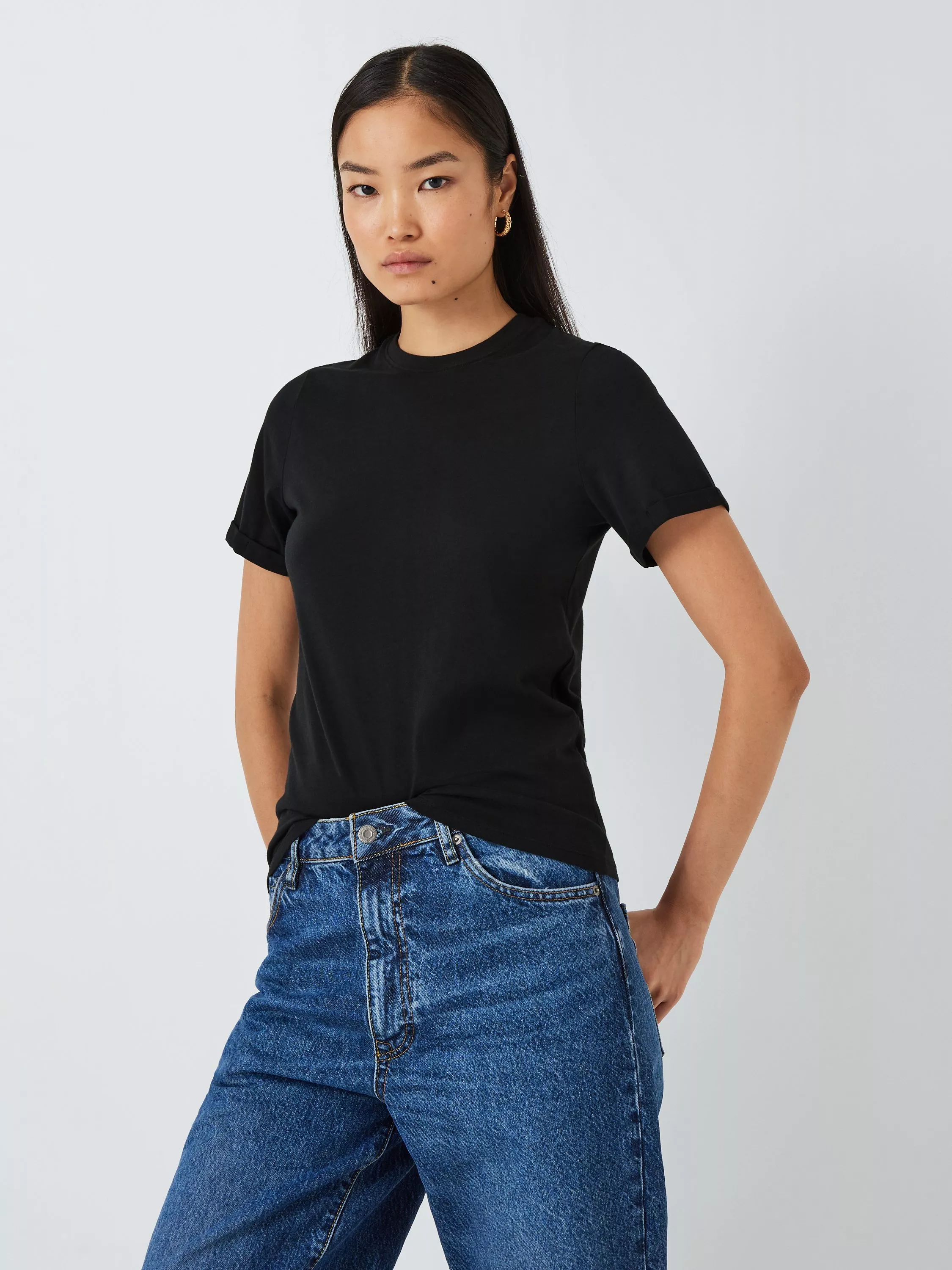 A wardrobe staple, we've designed this pure cotton jersey top with a fuss-free round neckline and turn up sleeve detailing.