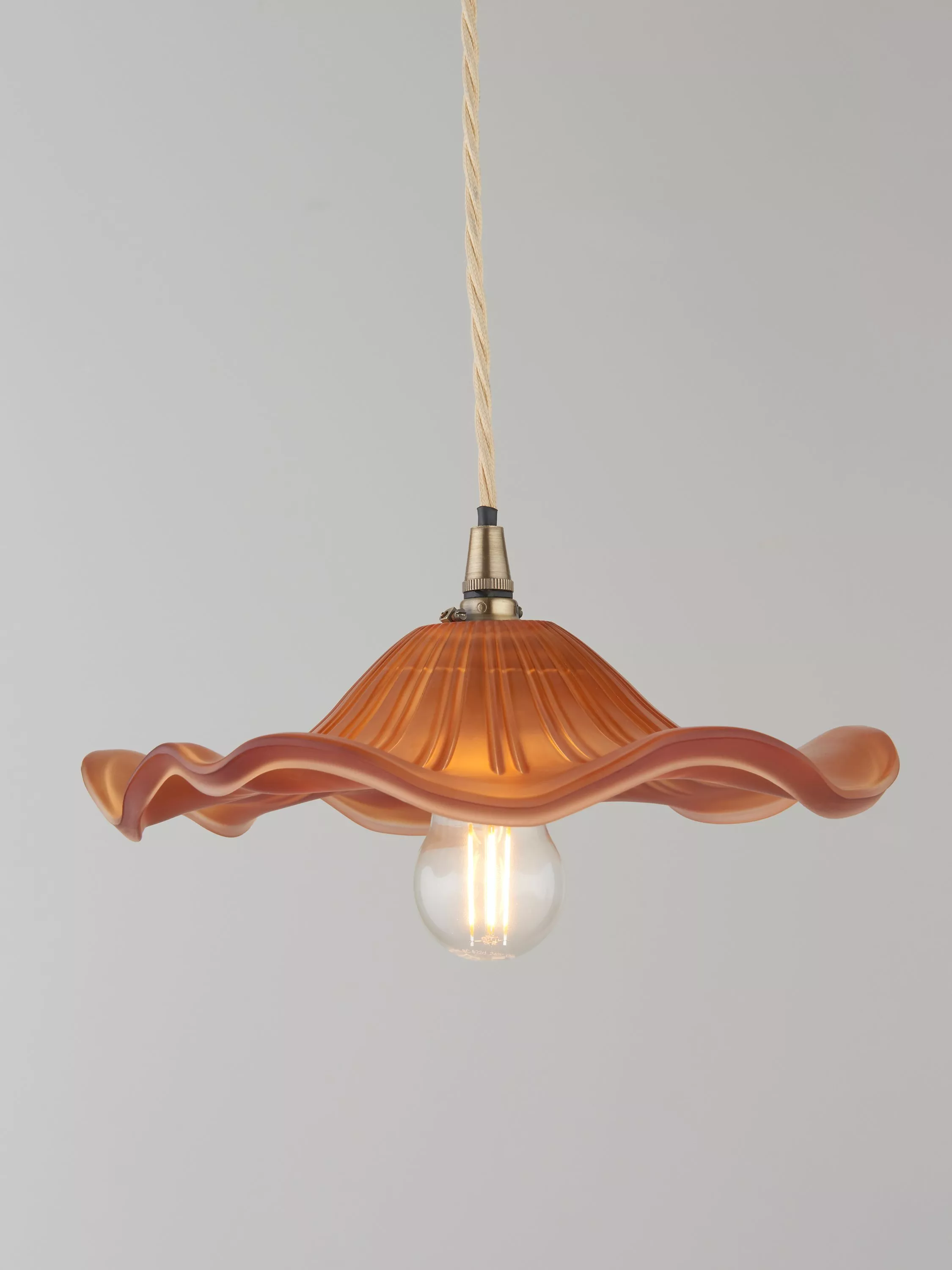 Attach this shade to your existing ceiling light for a vintage-style look. Made from glass with ribbed detailing and an elegant ruffle on the edge.