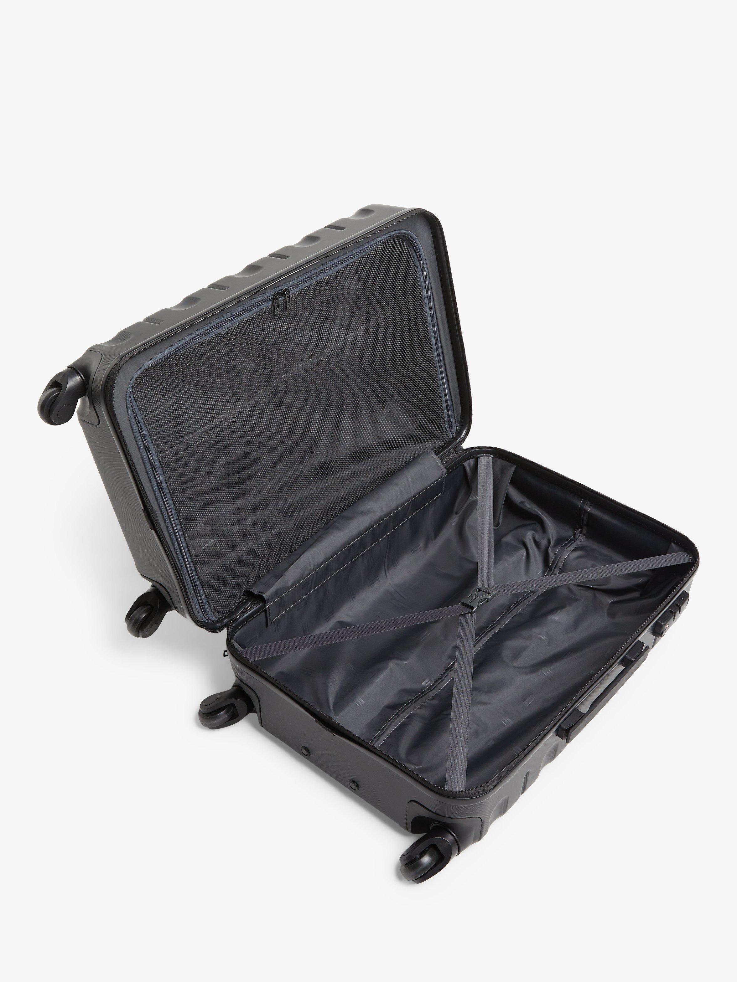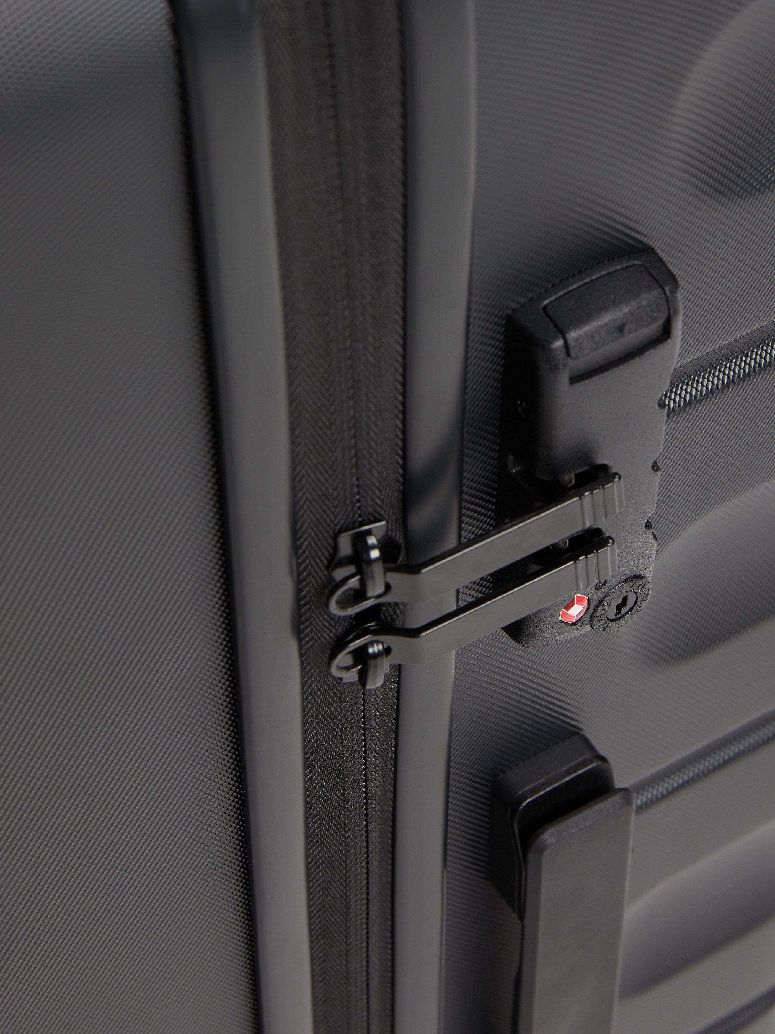 Built from a durable ABS hardshell outer, its unique exterior and horizontal line details make it easily identifiable on the carousel; handy when you're in a rush for a taxi and connecting flights.