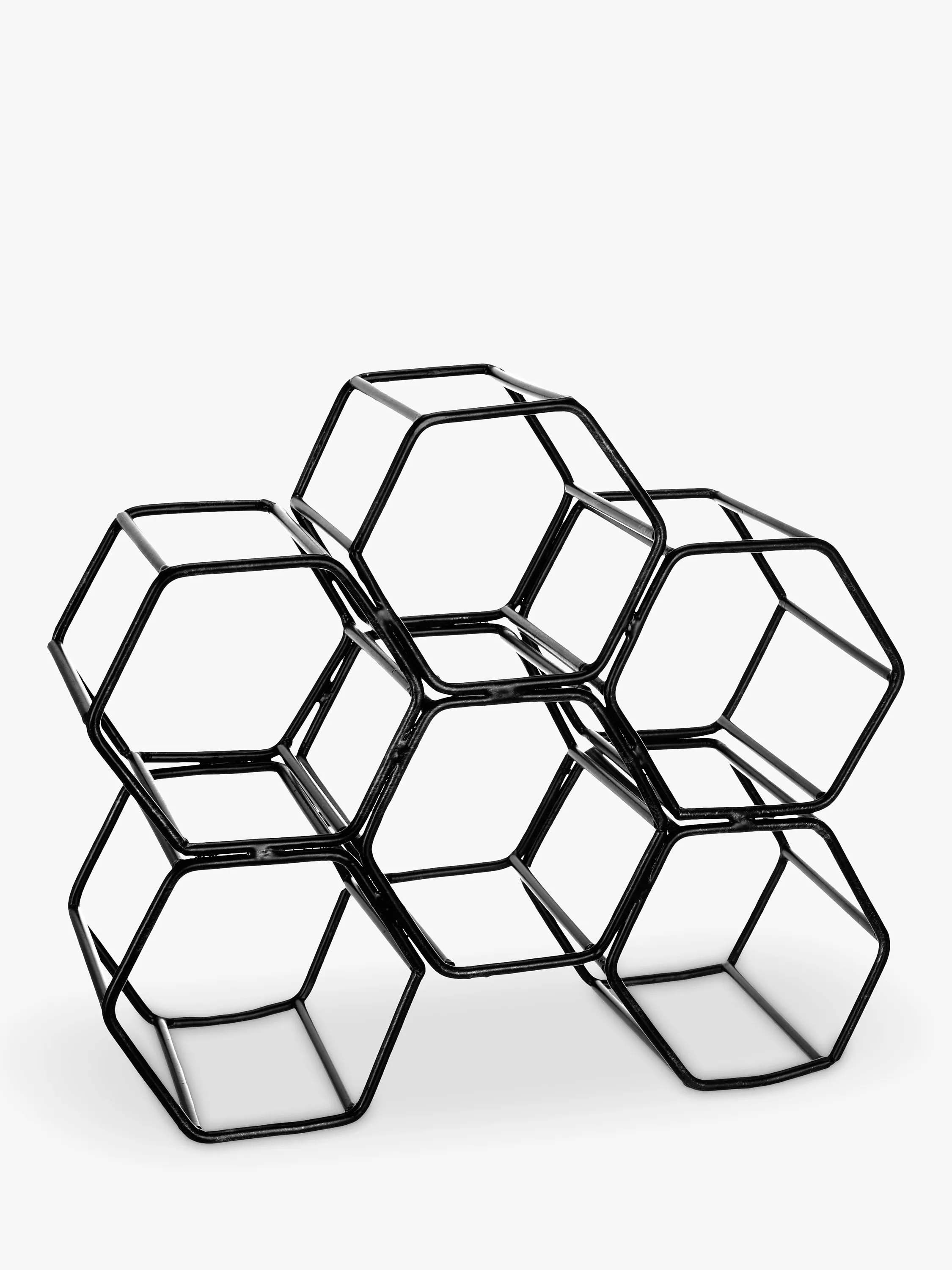 Drawing inspiration from hexagonal honeycombs, this freestanding wine rack holds six bottles together for practical storage. Made of coated iron, this sturdy design is easy to wipe clean.