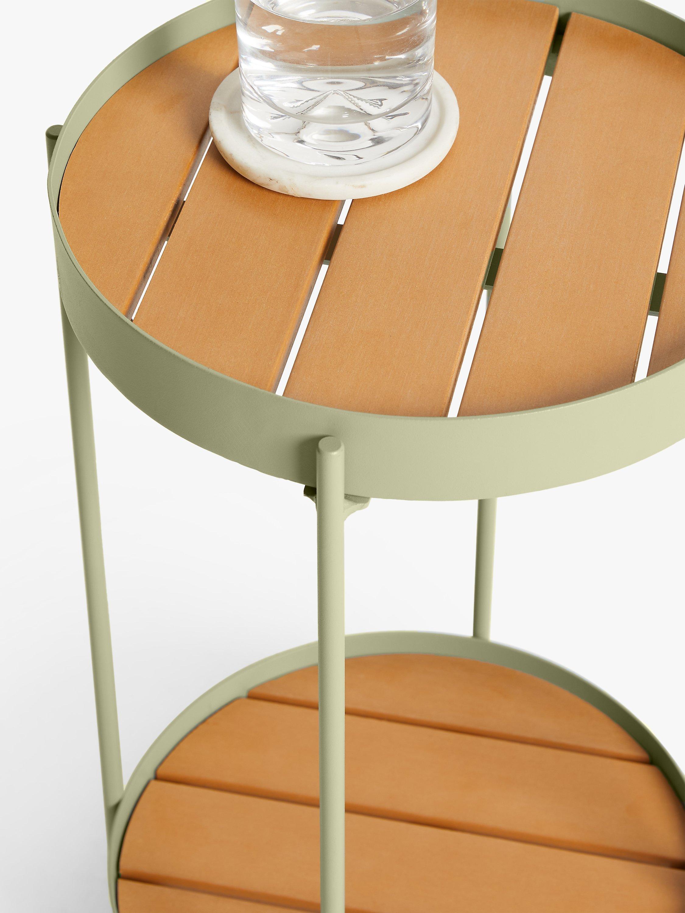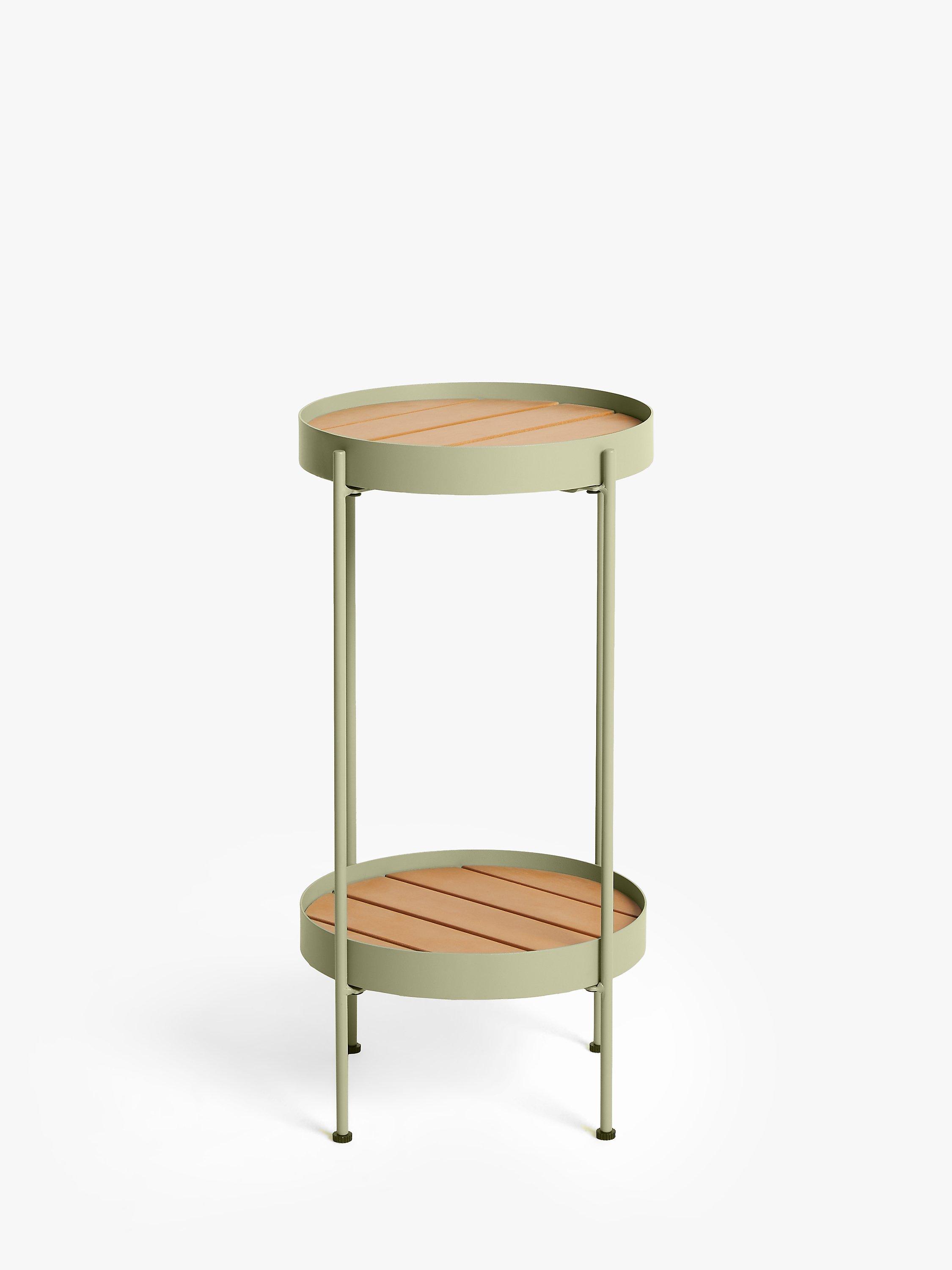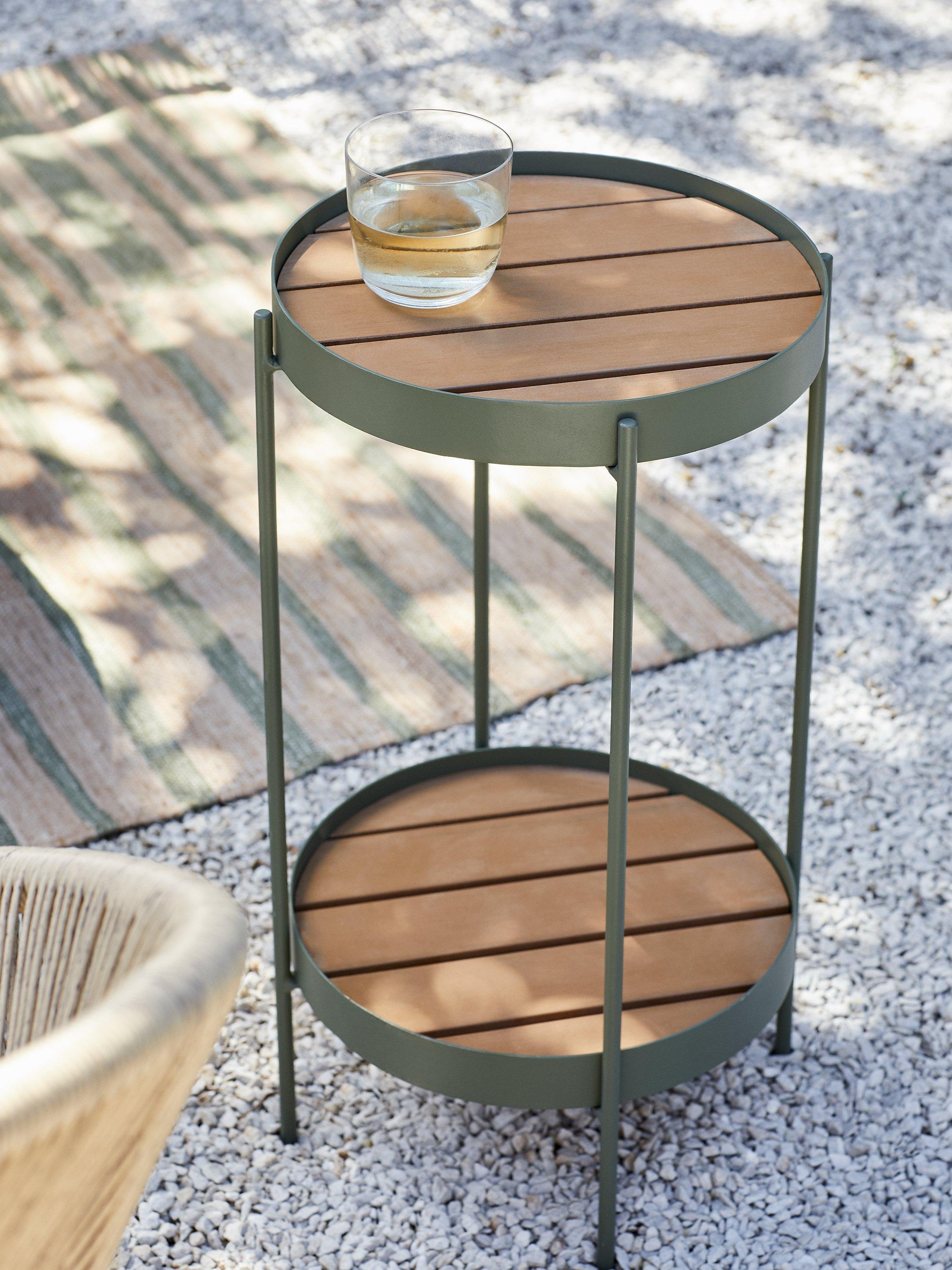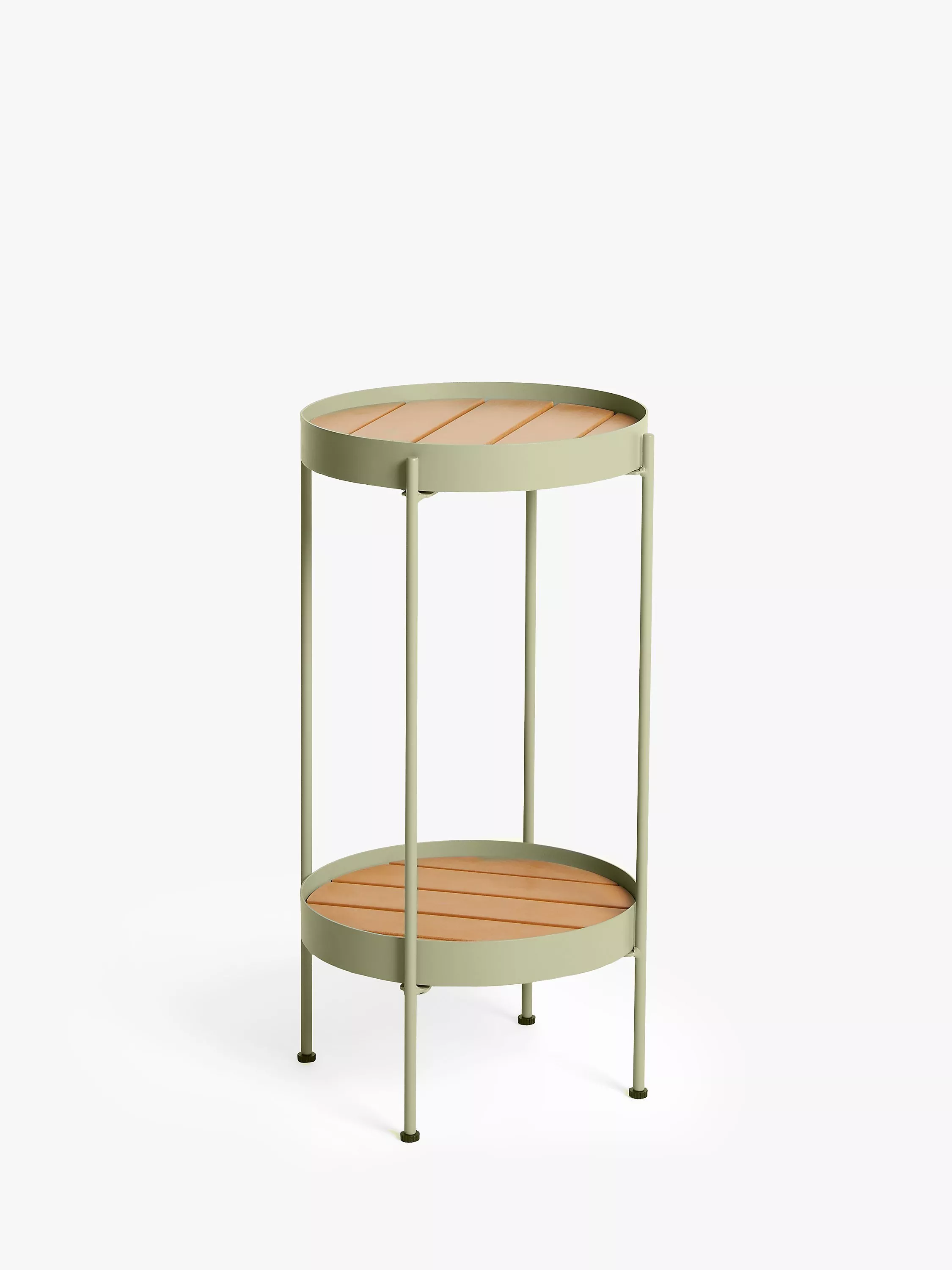 Our Jax side table is such a popular design we decided to make an outdoor version. So that it's suitable for use in the conservatory or garden, on the patio or balcony, this round table has two durable slatted shelves made of weather-resistant plywood and a powder-coated colour on the sturdy steel frame. Easy to assemble, choose a colour to suit your space.