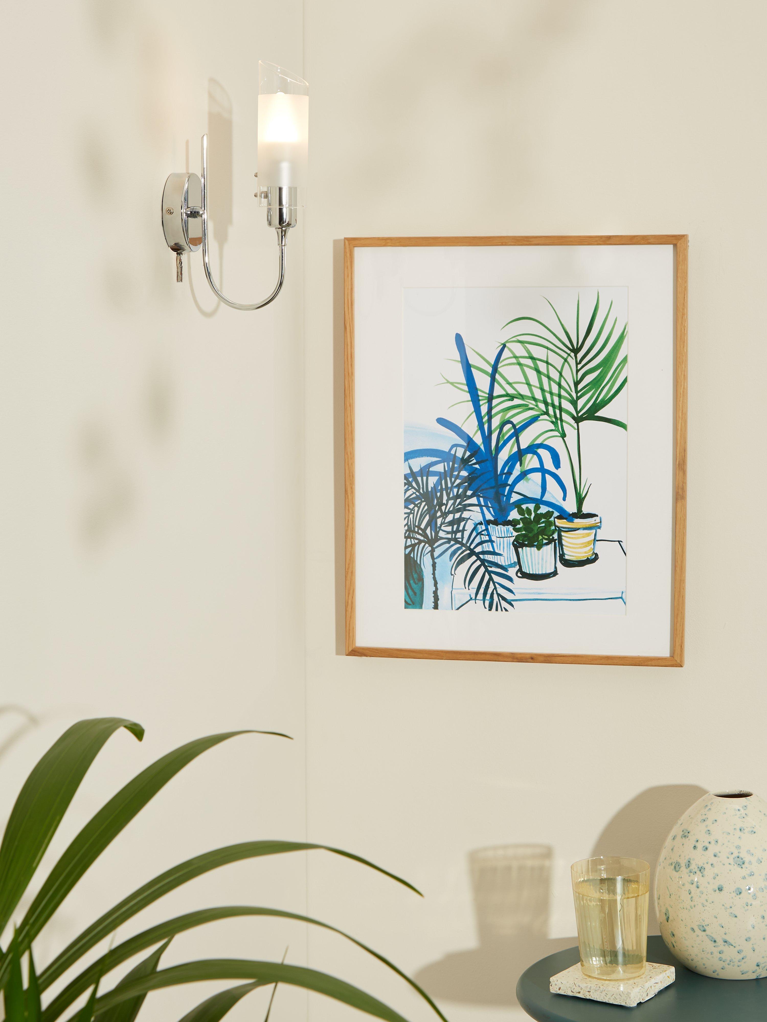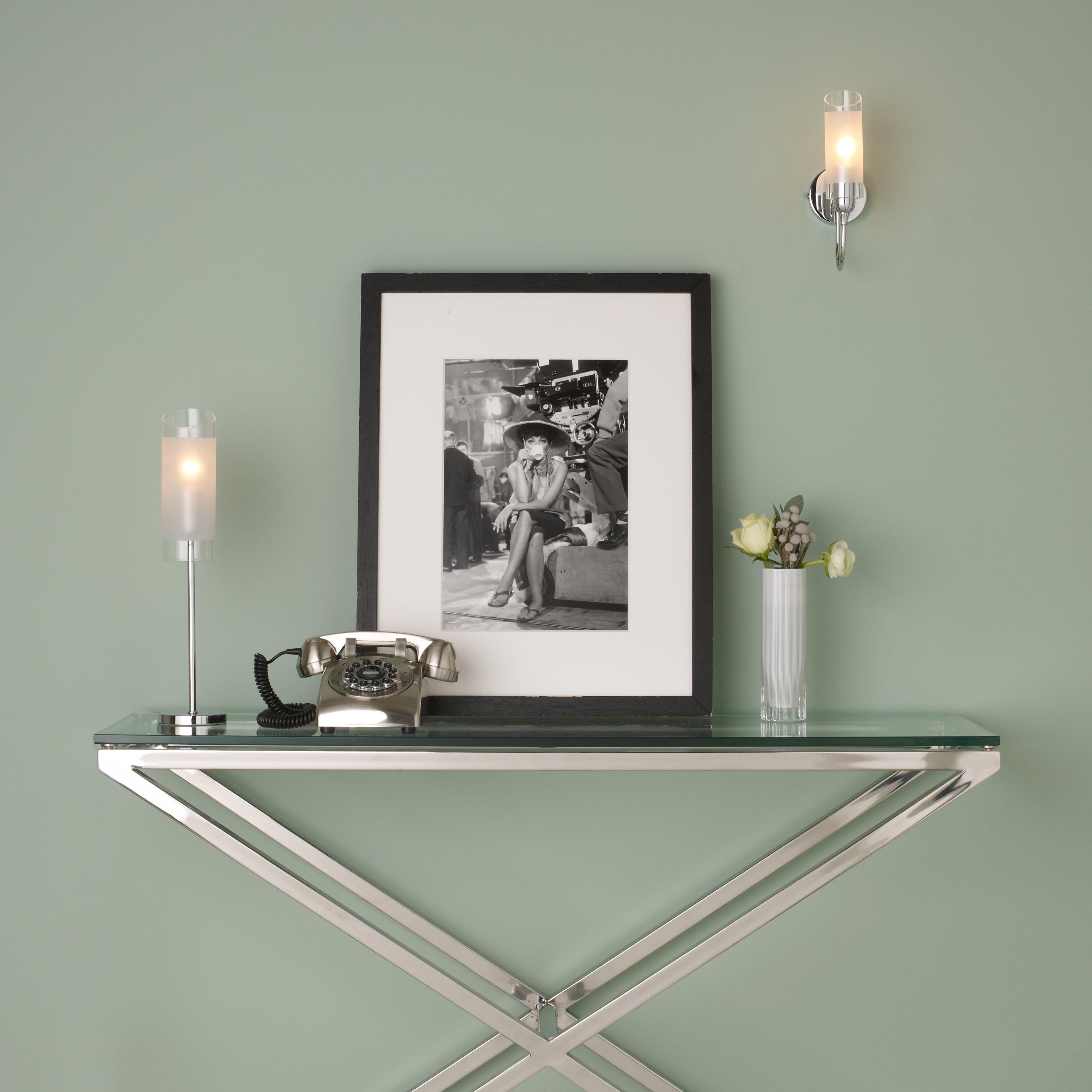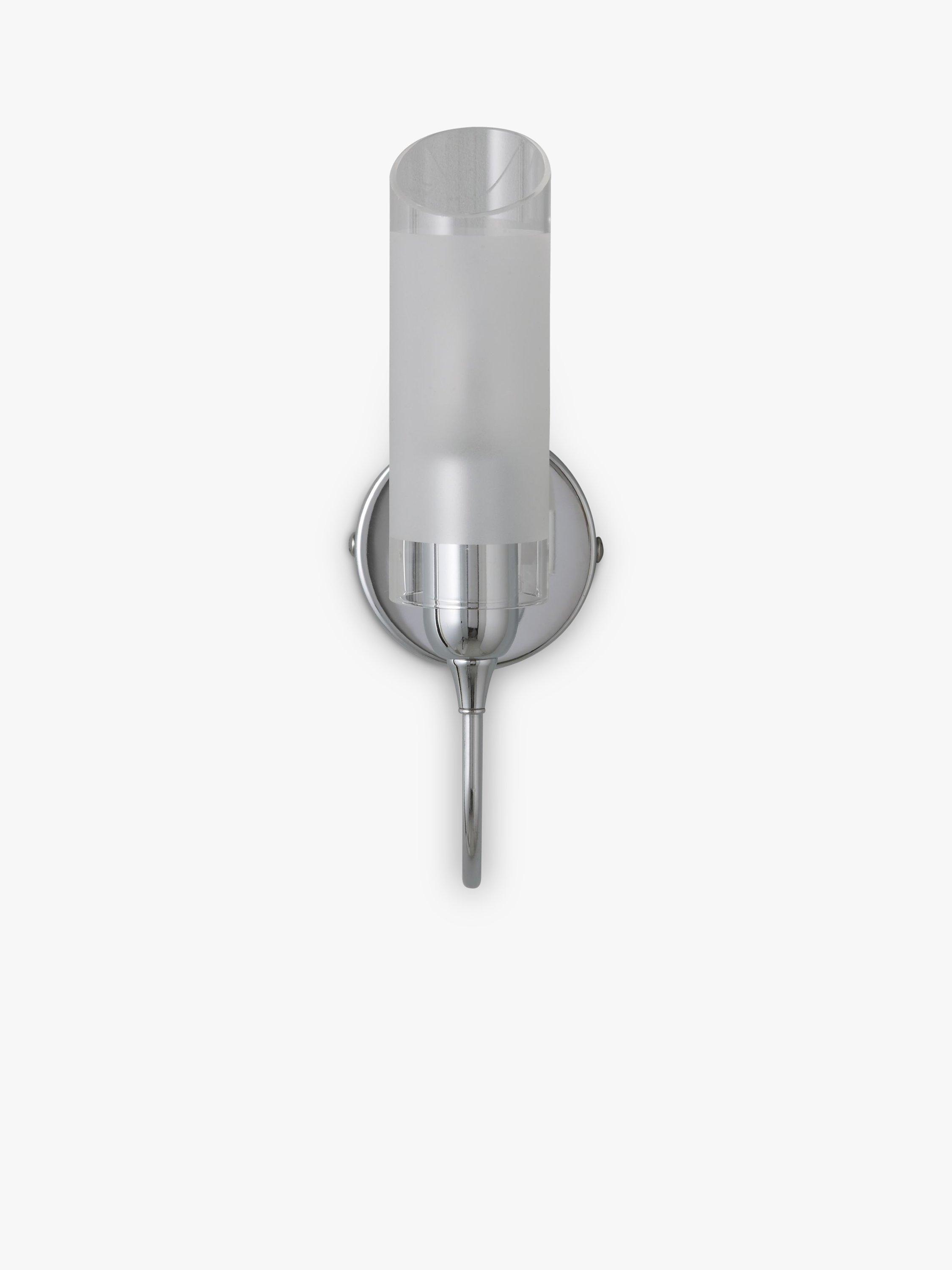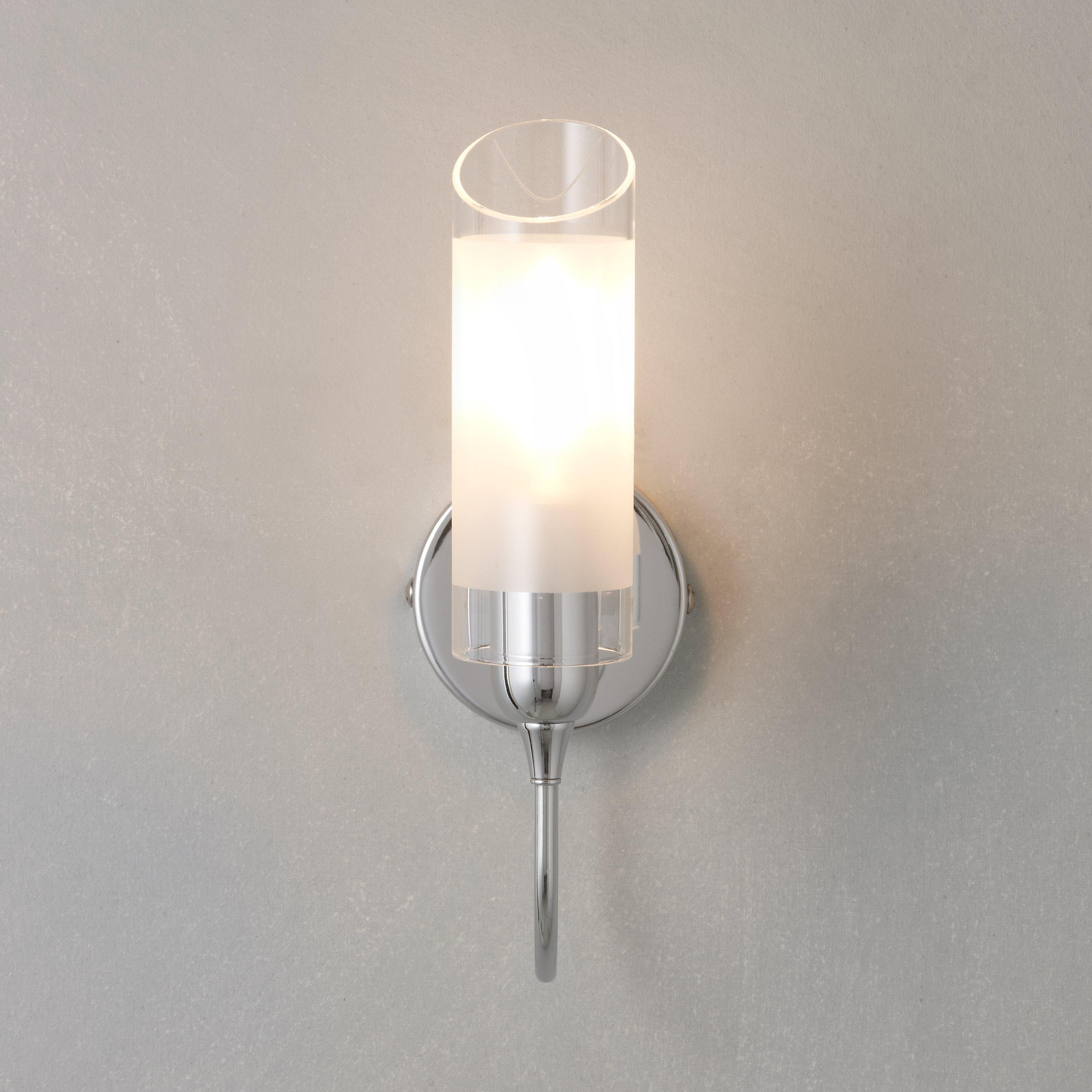 Refined simplicity: this single arm wall light features a frosted glass shade on a smart, chrome plate. Ideal for creating an inviting ambience in your space, at a great price.