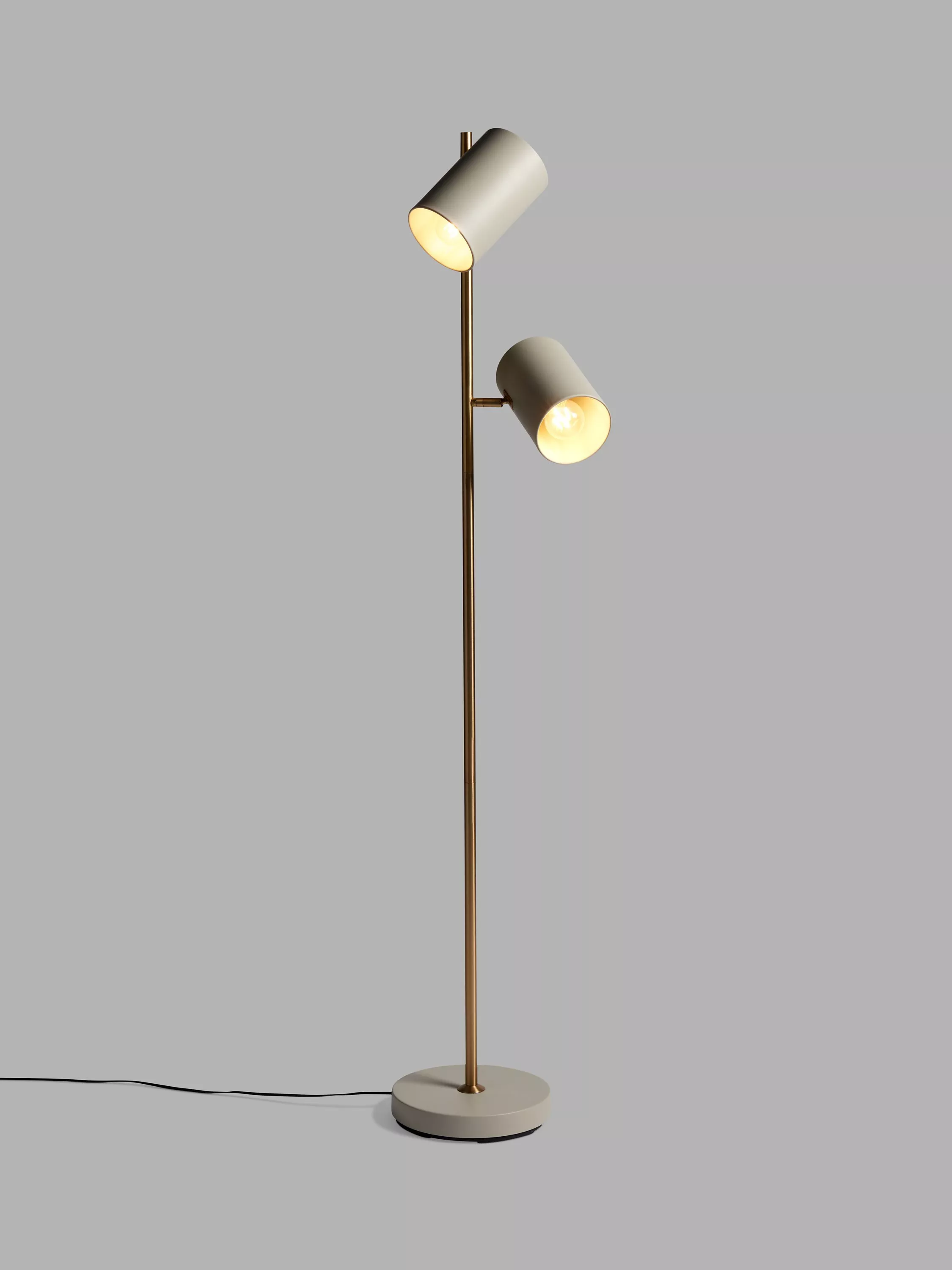 We've designed this great-value floor lamp with two adjustable heads that rotate so you can direct light exactly where you need it. One head can cast light into your reading corner, while the other can work as an uplighter and fill your space with a warm glow. The heads are slightly oversized to give the design a more modern and playful look. Two LED bulbs are required.