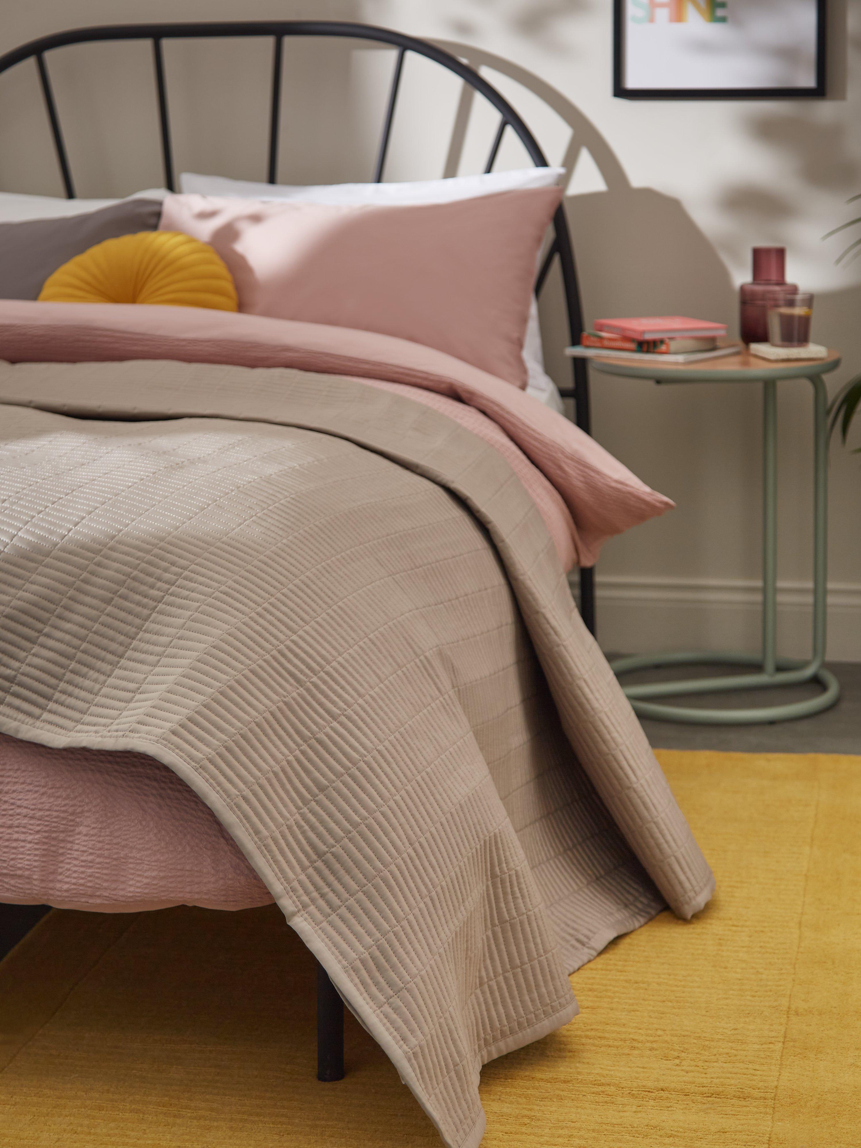 "Mimicking the feel of more luxurious fibres, this smart polyester bedspread adds a touch of elegance to your sleep sanctury, with the added benefit of being easy to care for; machine washable and quick drying.