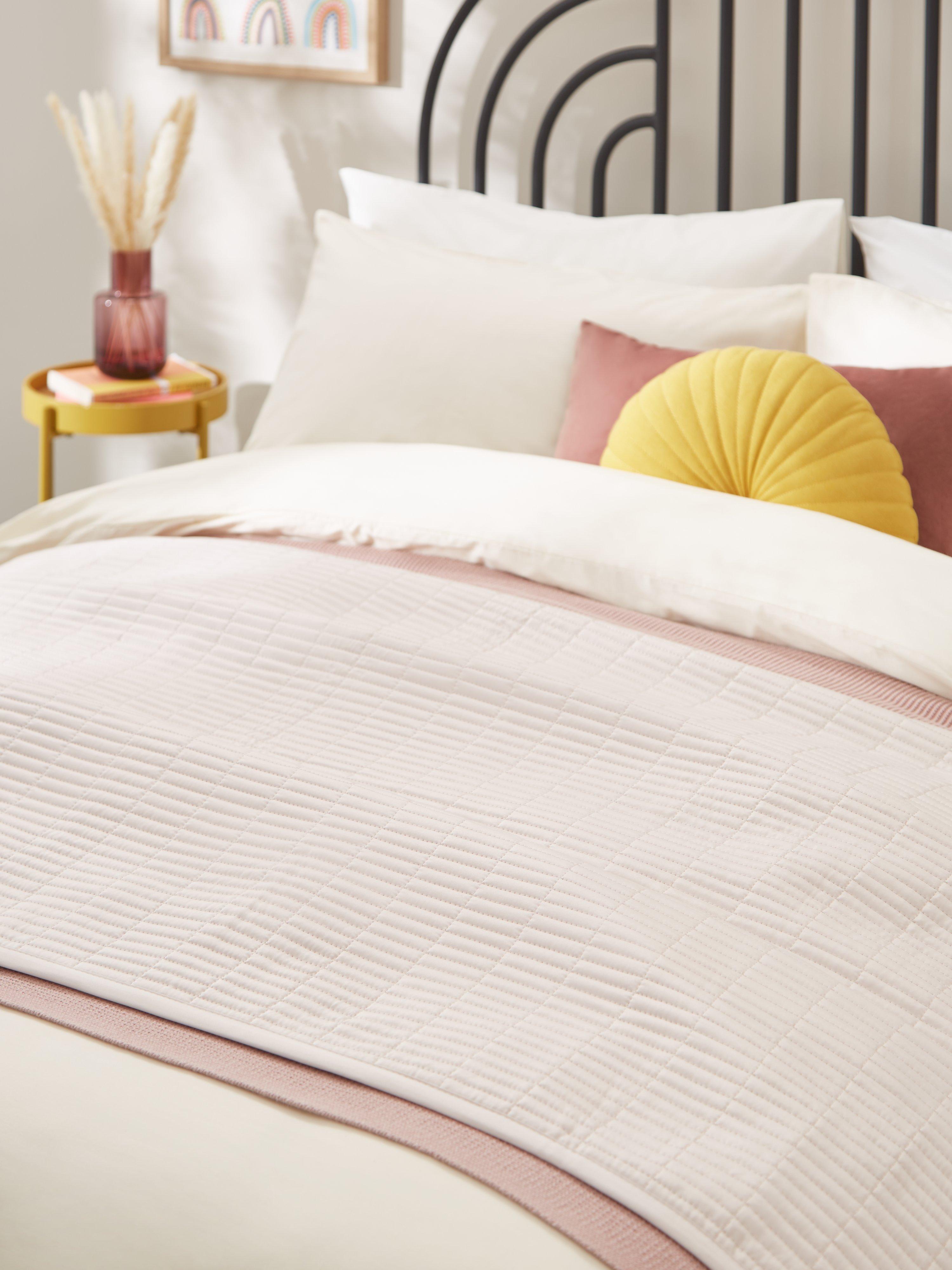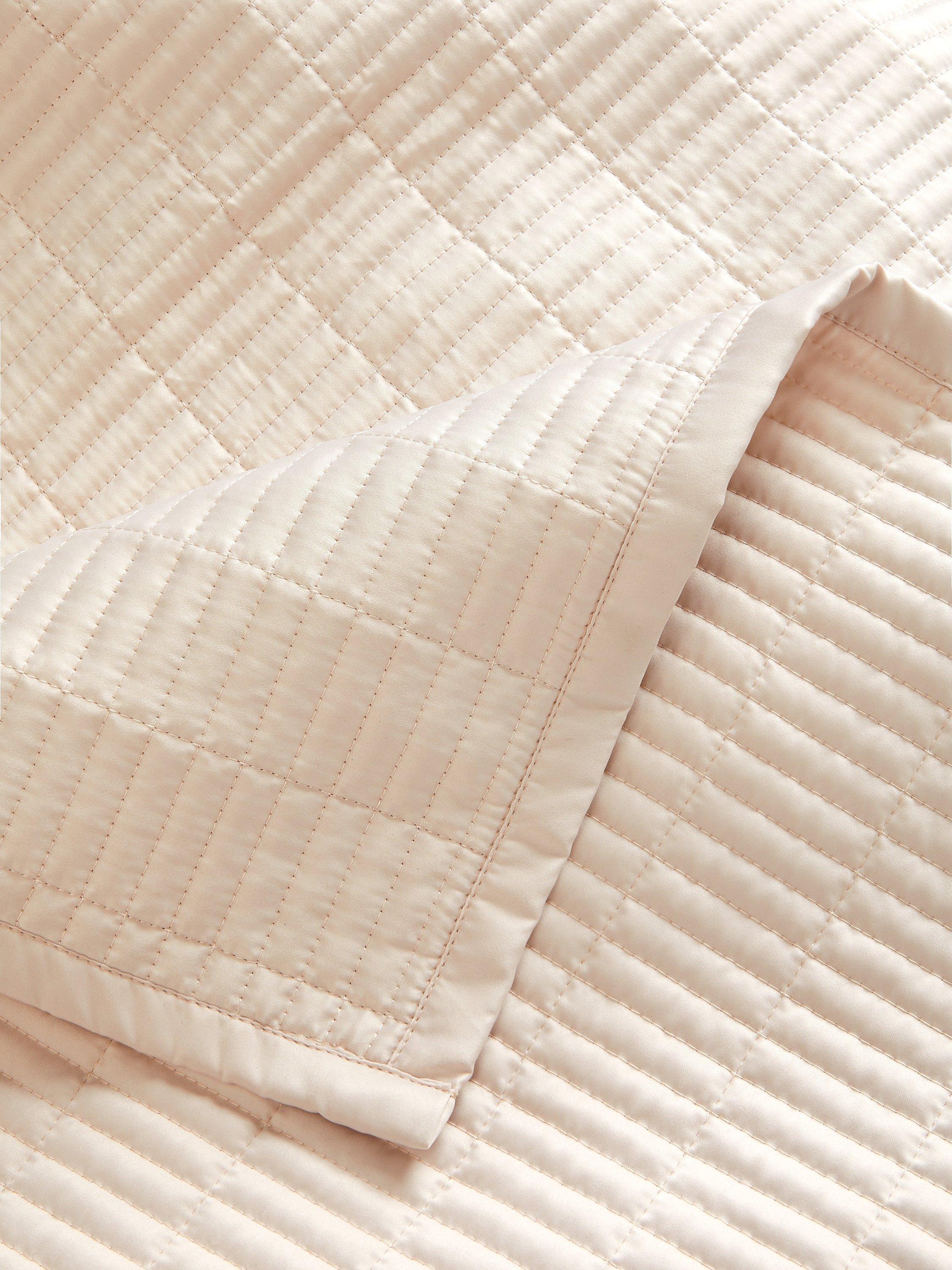 A lightweight, quilted polyester throw in a range of subtle shades.