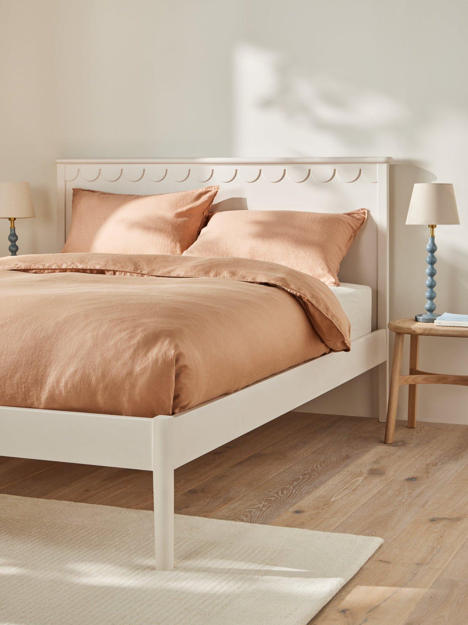 An injection of decorative design and a splash of colour are two ways to transform your bedroom. This bed frame combines both, with its sweet, scalloped design detail and bold painted finish. Our Hem bed frame is sturdy and incredibly versatile.