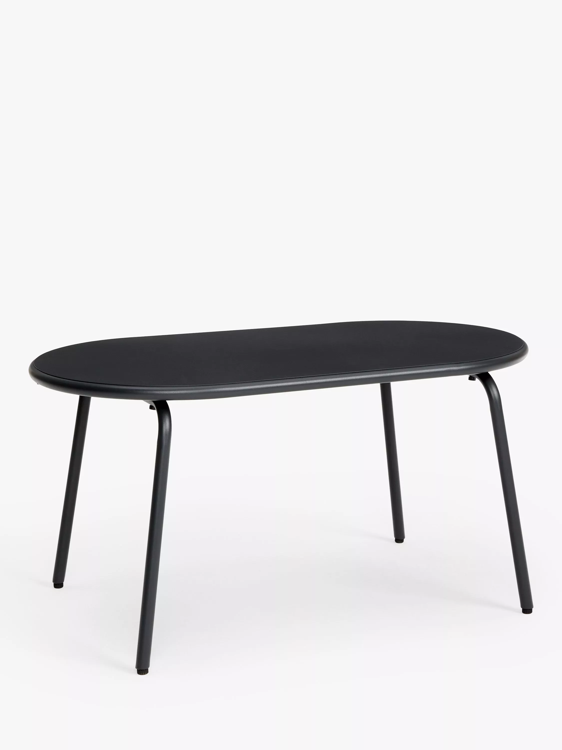 Contemporary oval coffee table made of sturdy steel with a durable and weather-resistant powder-coated finish. Easy to maintain, all it needs is a quick wipe down with warm, soapy water to keep it clean. Team it with other metal garden furniture in this range.