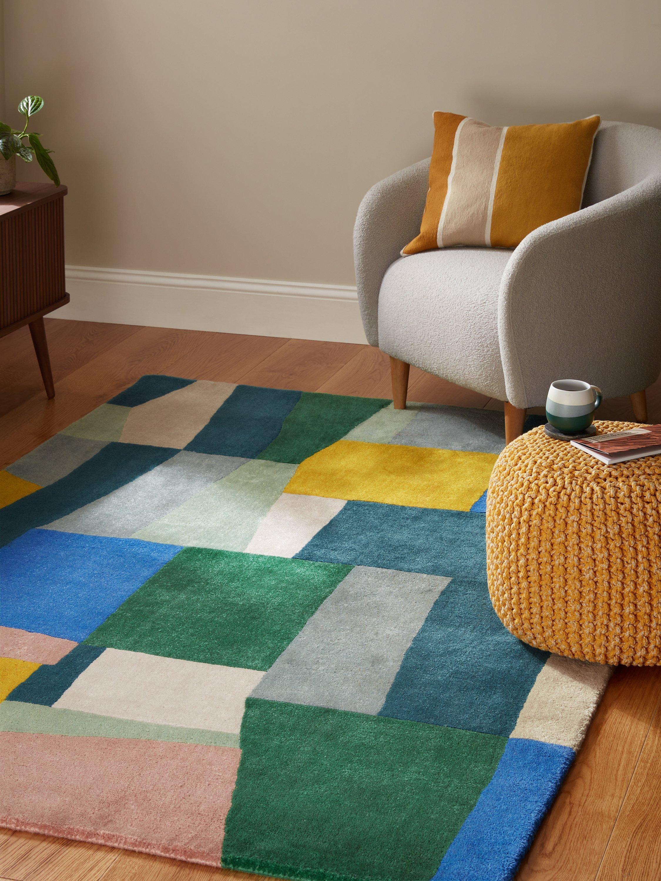 An abstract design that's ideal for adding a splash of colour to your home, we styled this rug with vibrant blocks in complementary tones.