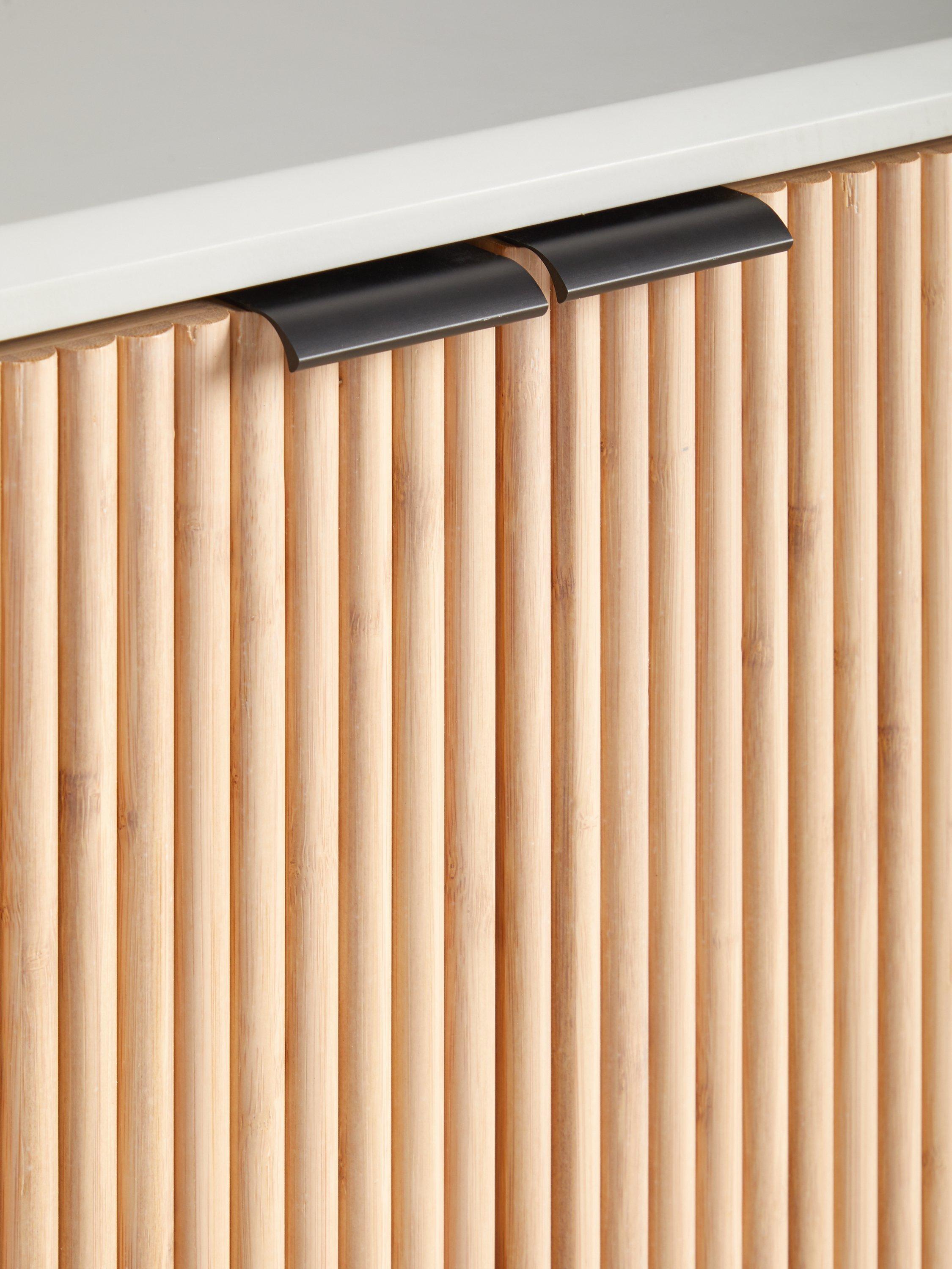 We've made this brilliant-value storage cabinet from a combination of painted MDF and natural bamboo, which we've used to create the ridge feature on the cupboard doors. There's plenty of storage space thanks to three adjustable shelves inside and the steel frame provides a minimalist, but reassuringly stable and robust base. Easy to assemble and available in neutral or bold painted finishes so you can add an accent of colour to your space.