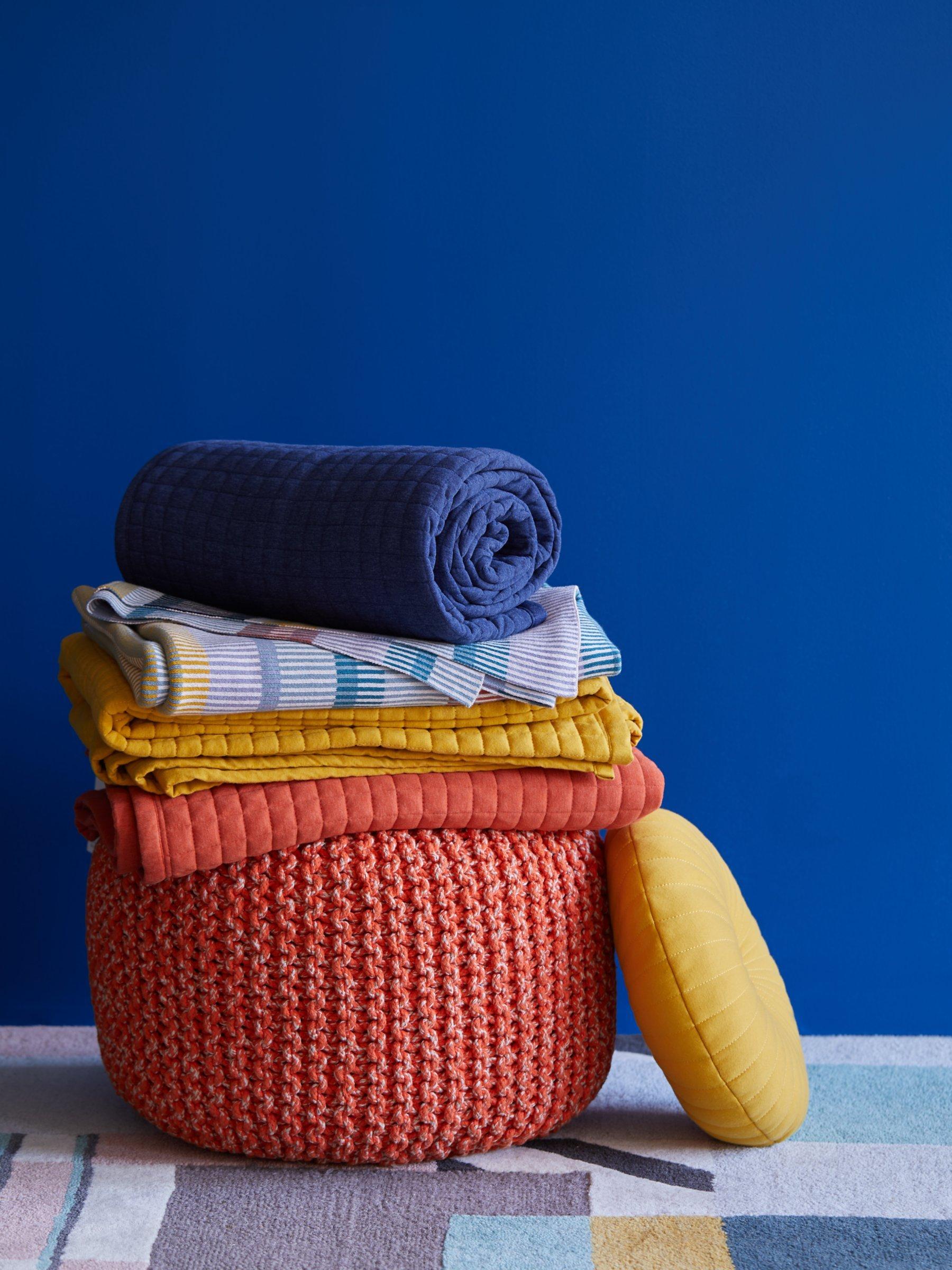 This plump, round cushion is made from soft, pleated jersey and has a fun, retro look.
