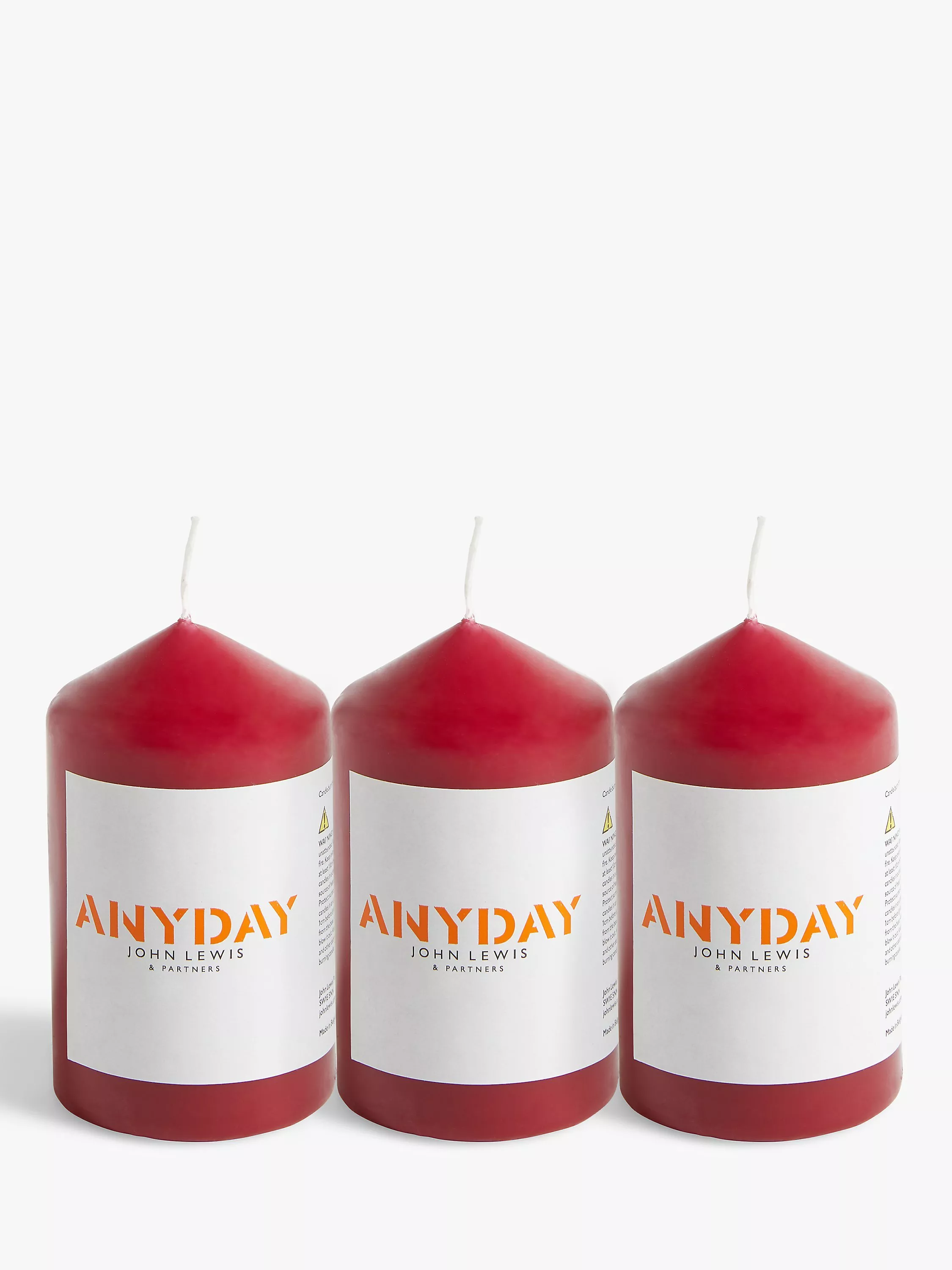 John Lewis ANYDAYSmall Pillar Candle, Red, Set of 3