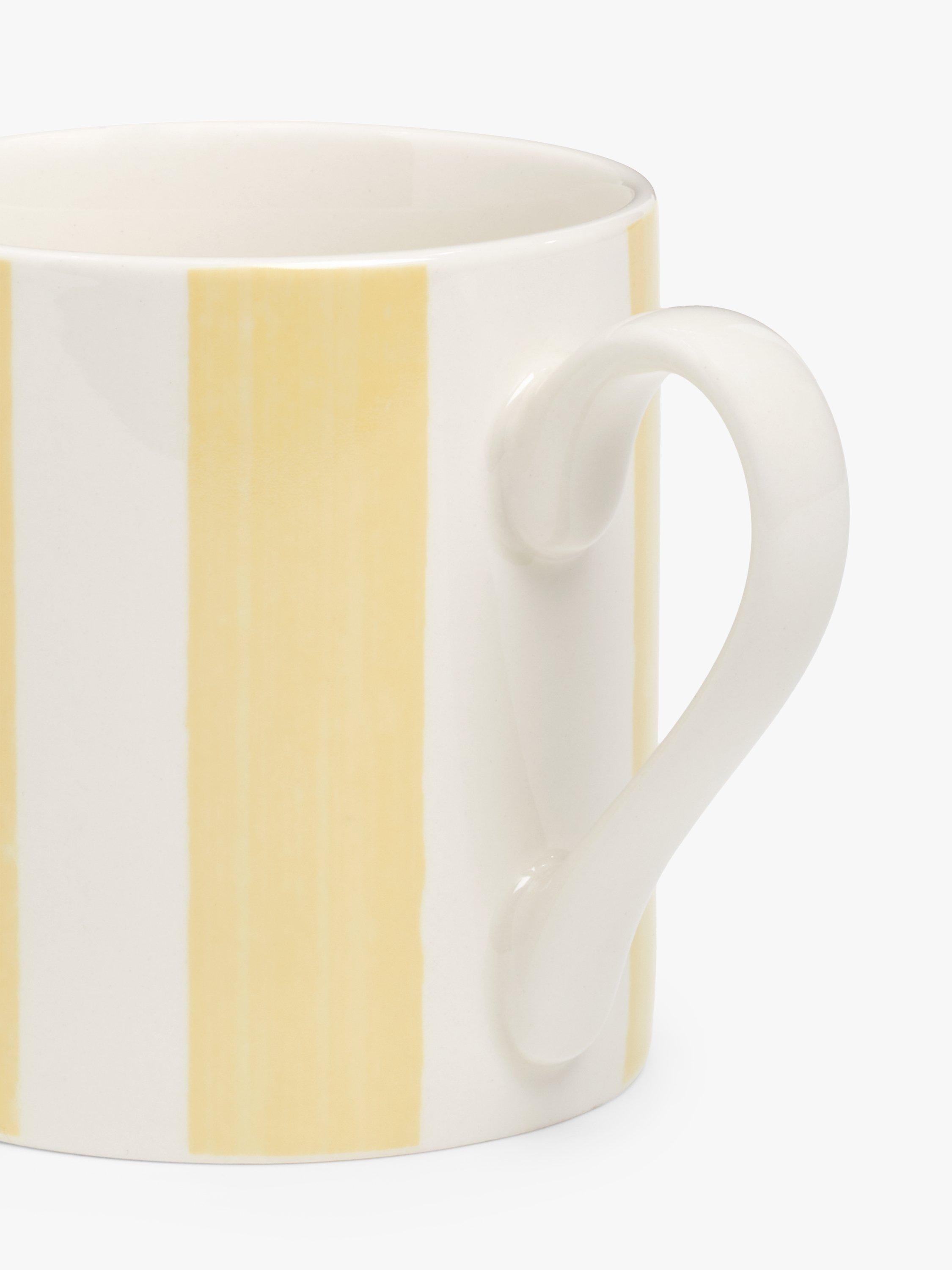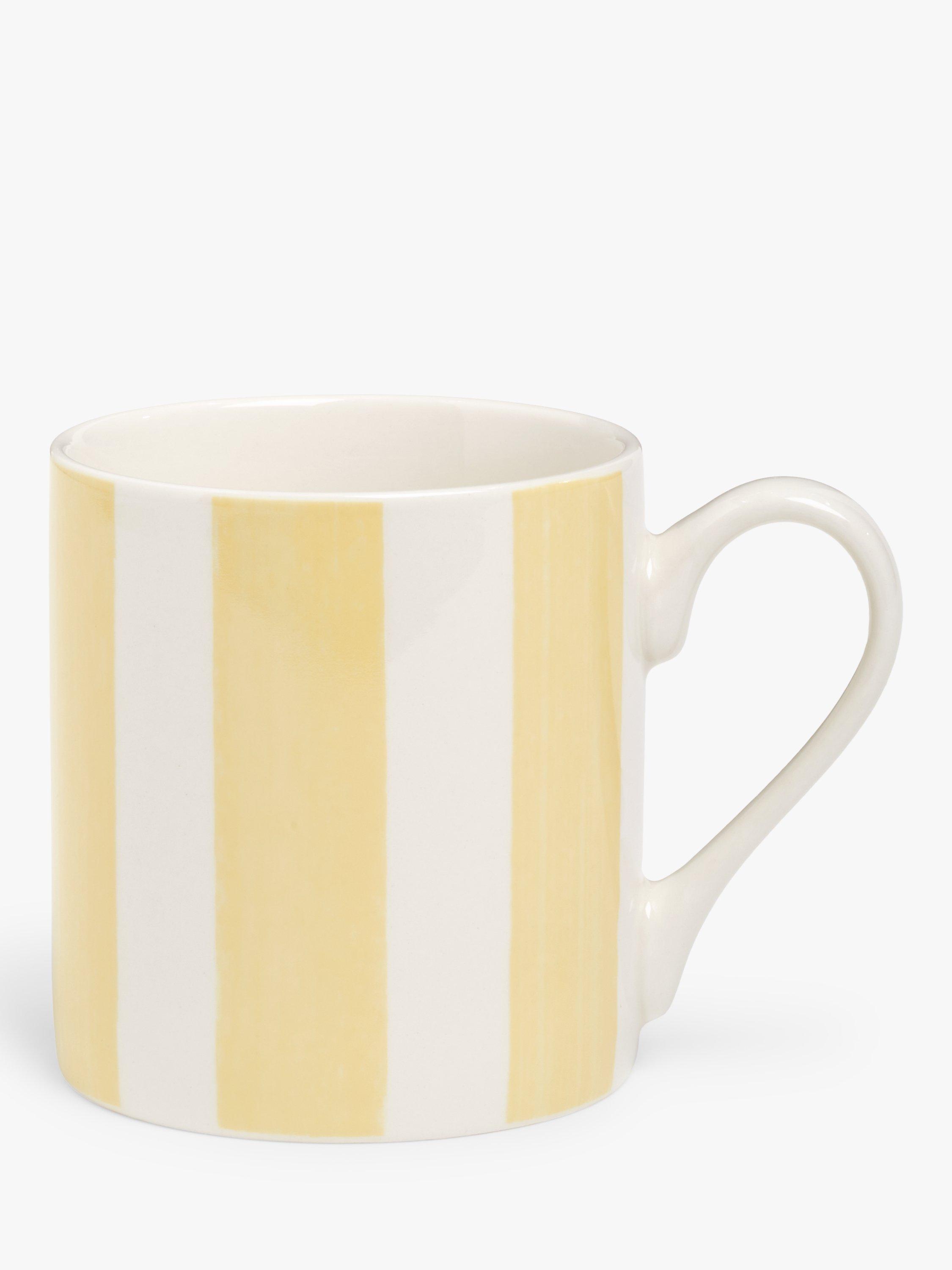 Bold striped mug with a hand-painted look, made of chip-resistant stoneware. Dishwasher and microwave safe for everyday use.