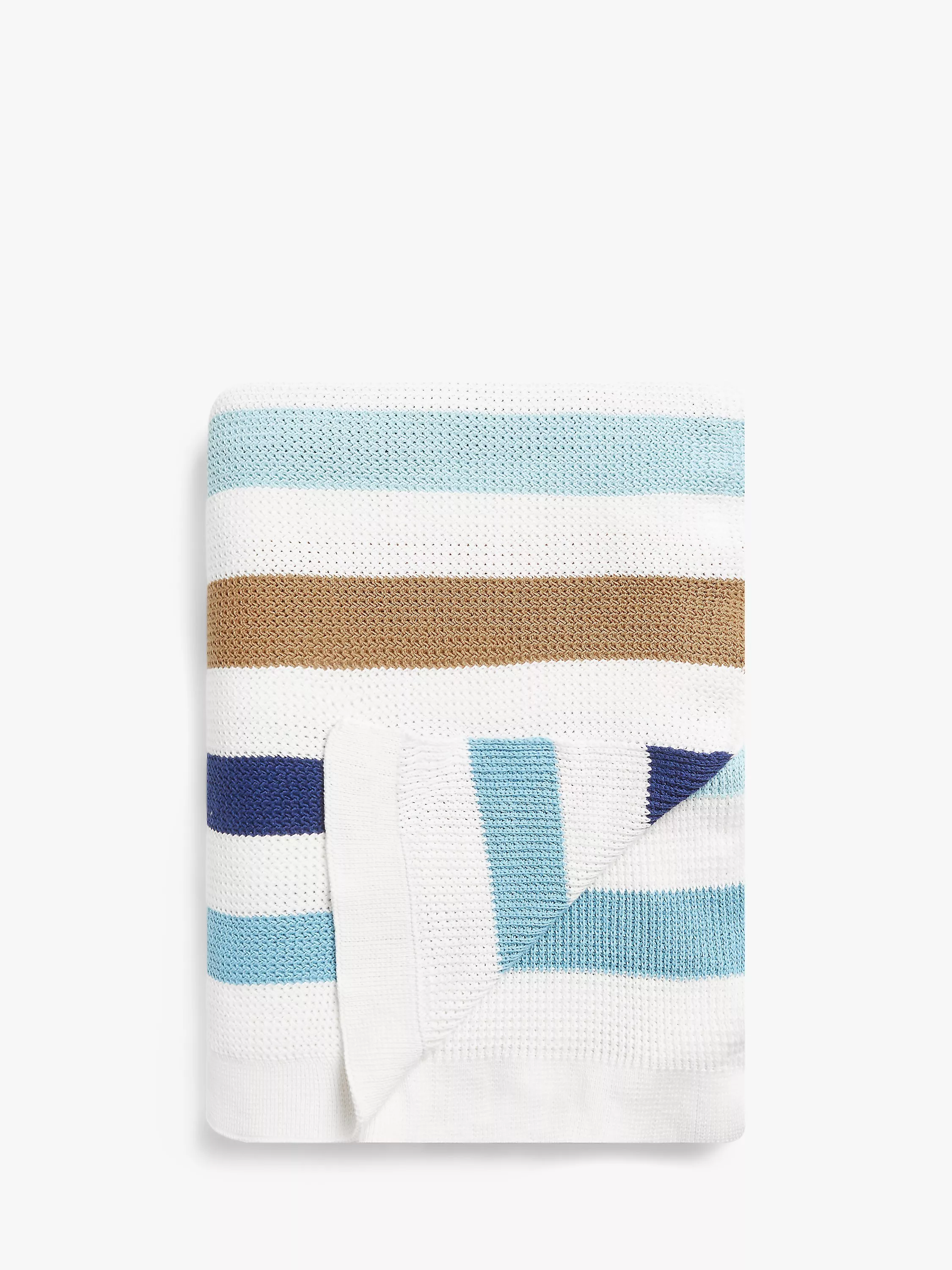 This knitted cotton throw makes a bright and colourful addition to your summer bedding.