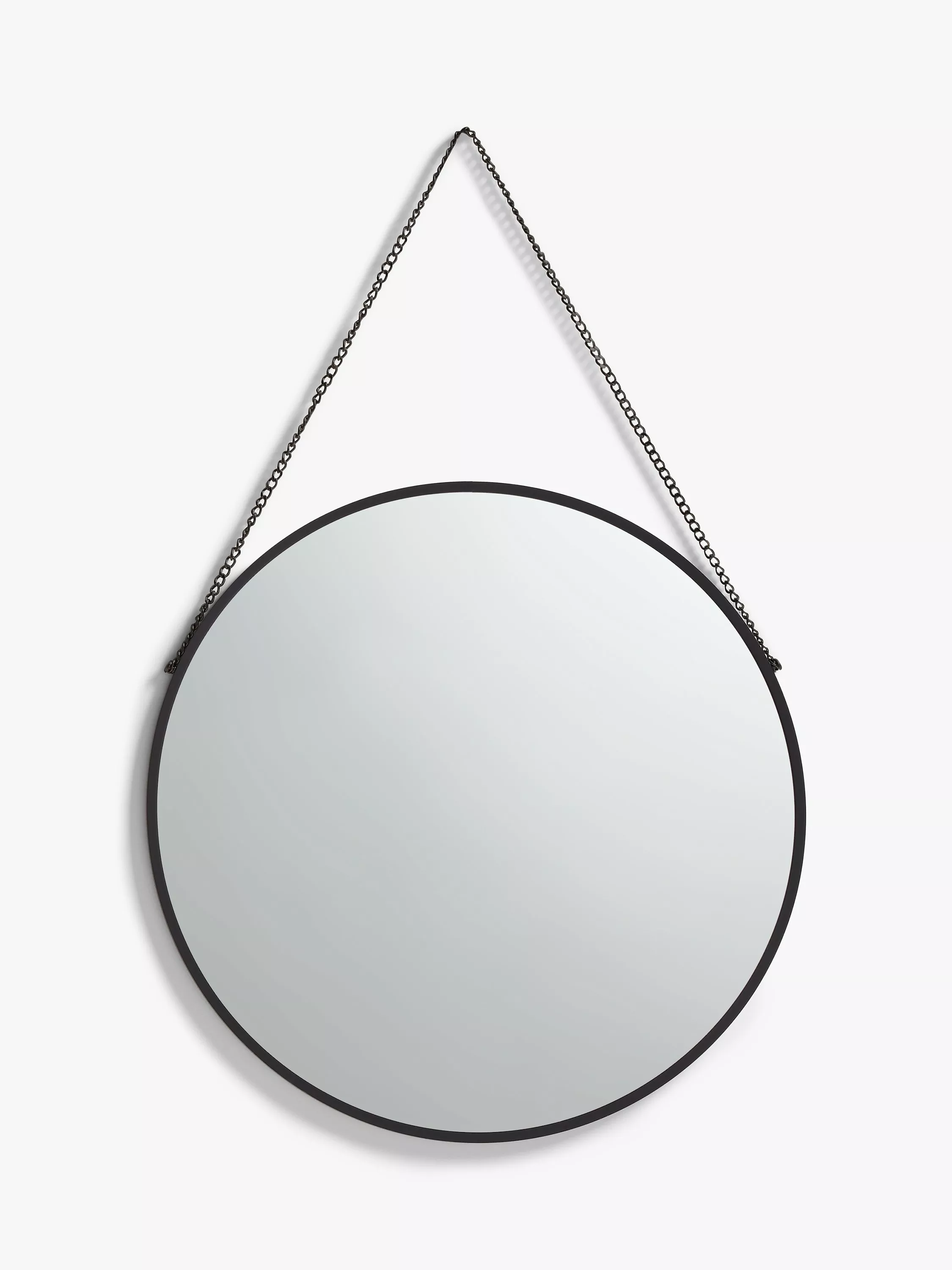 Designed with a slim-profile aluminium frame and 3mm-thick mirror glass, this contemporary round mirror suspends from a matching metal chain. It's ideal for the hallway, for that final check just before you leave the house.