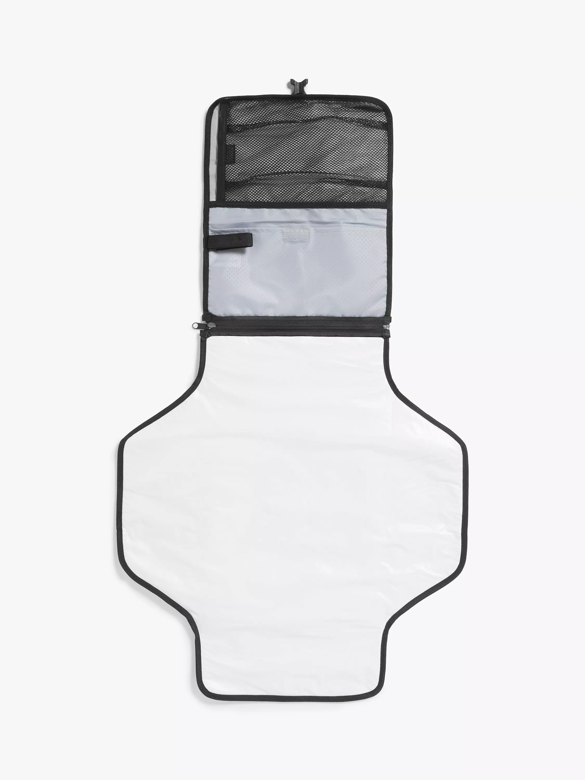 Compact and convenient, our travel change mat can be carried with a handle or attached to your pushchair or stroller. It has 3 pockets for all your essentials, along with a detachable wipe clean padded change mat.