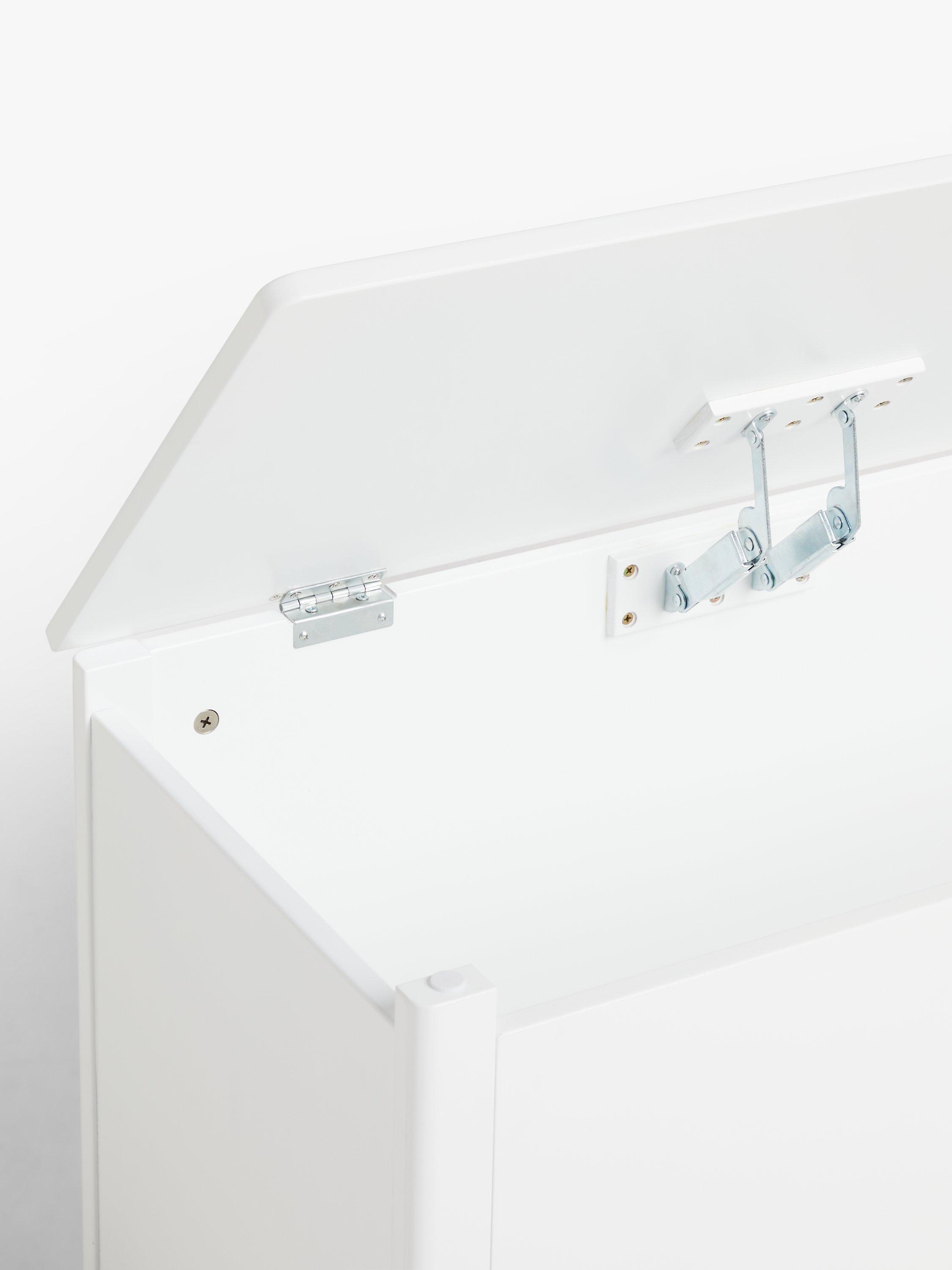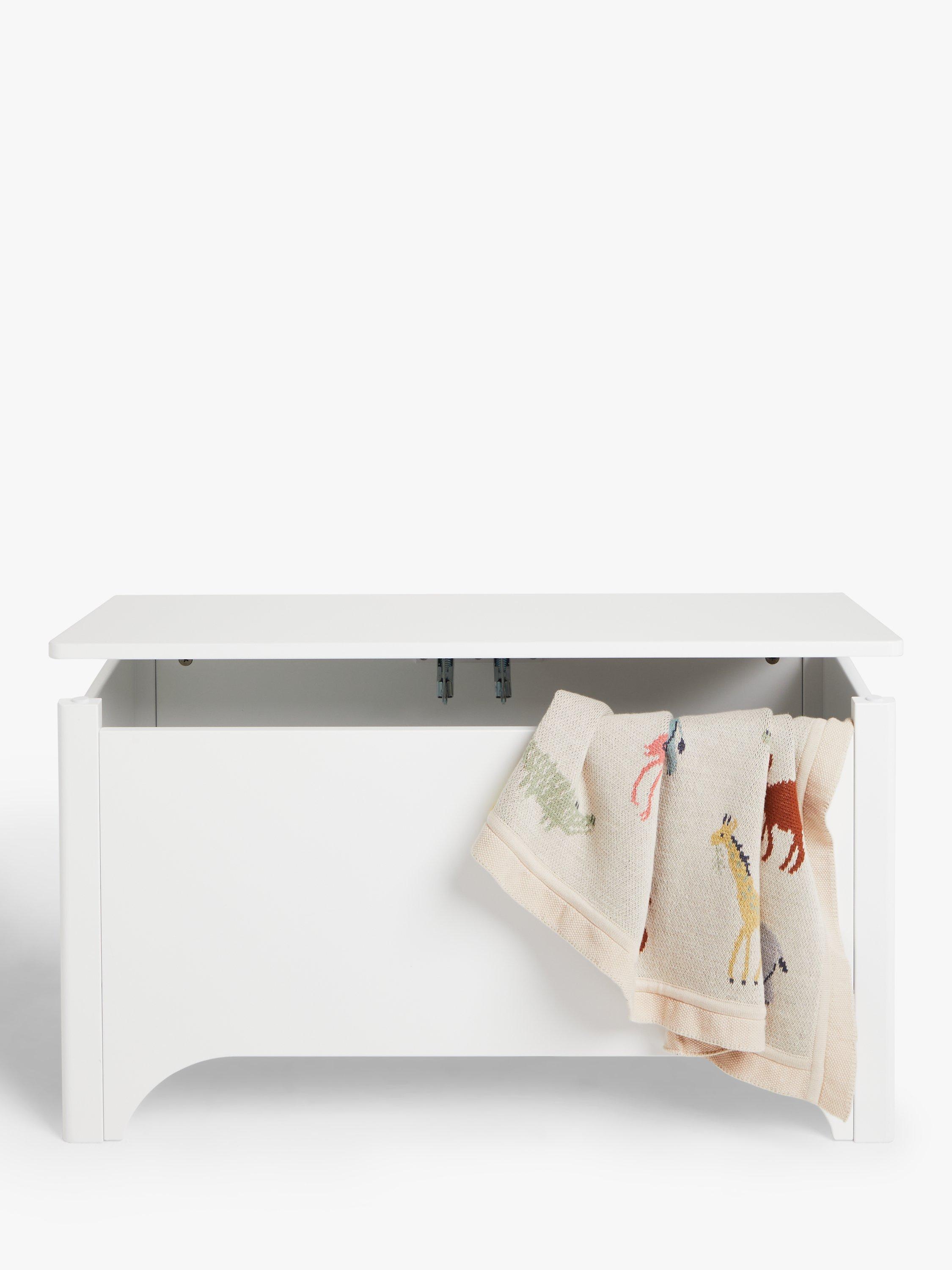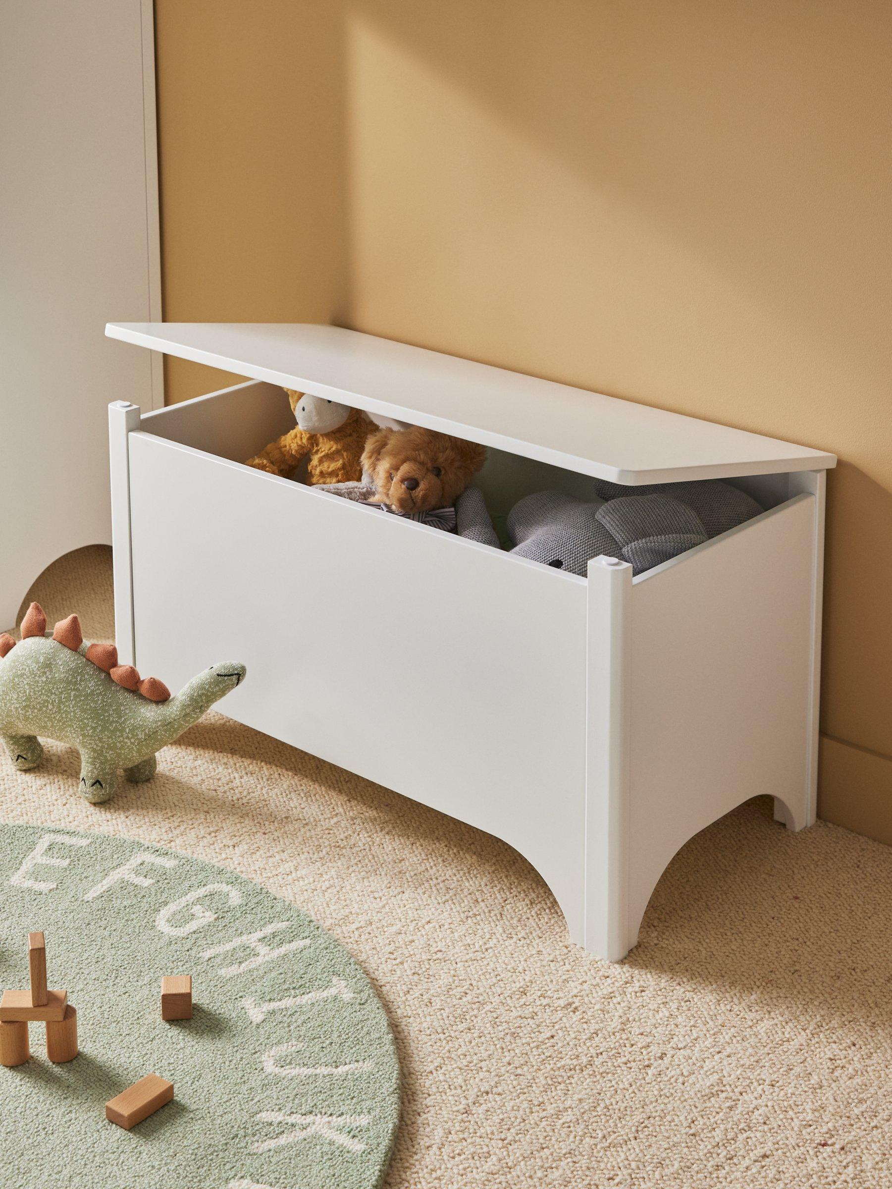 A sturdy design, there's plenty of storage space in this toy box and it comes with safety hinges to keep it lifted open instead of slamming shut. We've applied a finish that's easy to wipe clean with a damp cloth.