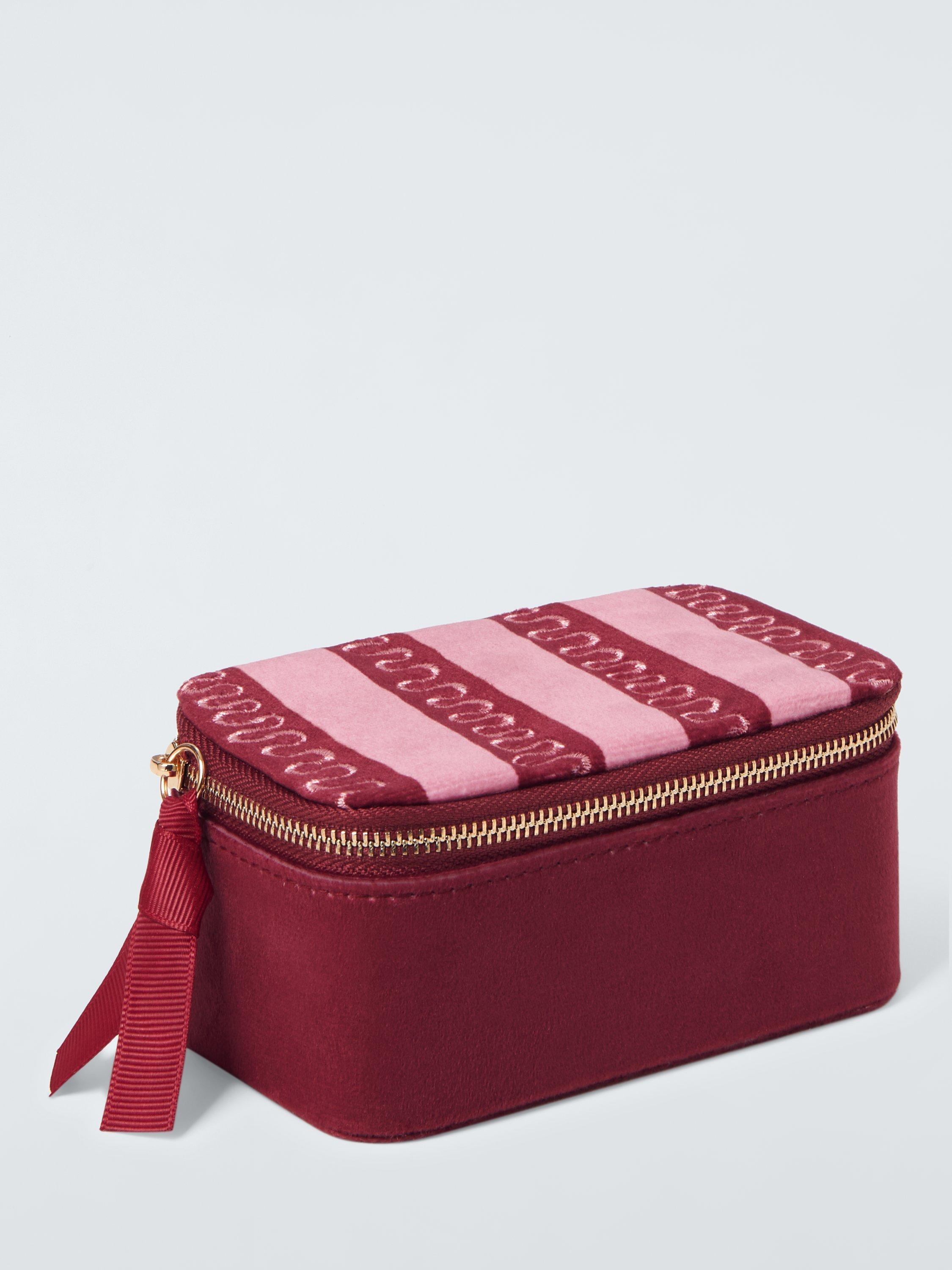A handy jewellery box with an archive-inspired stripe print lid.