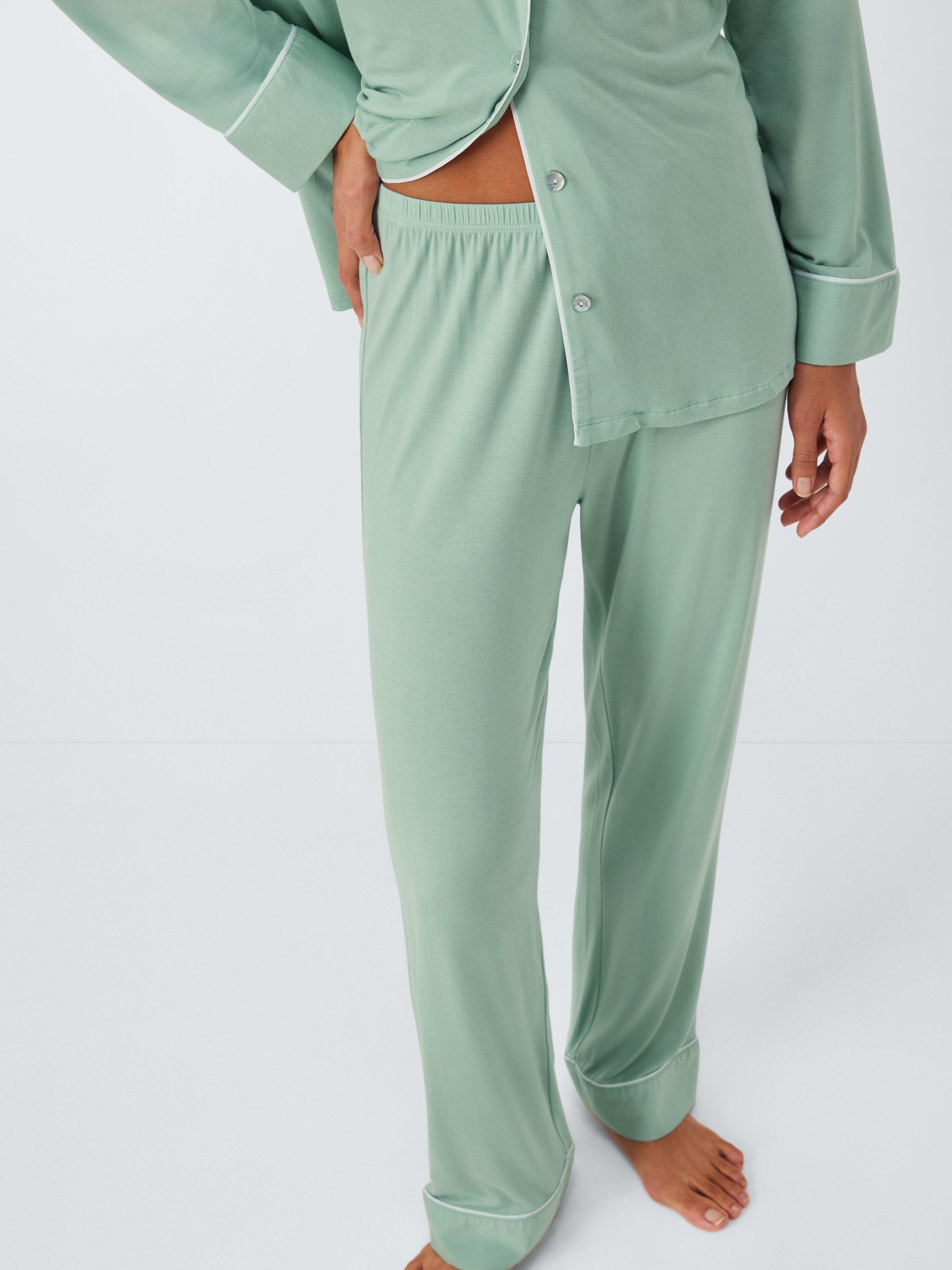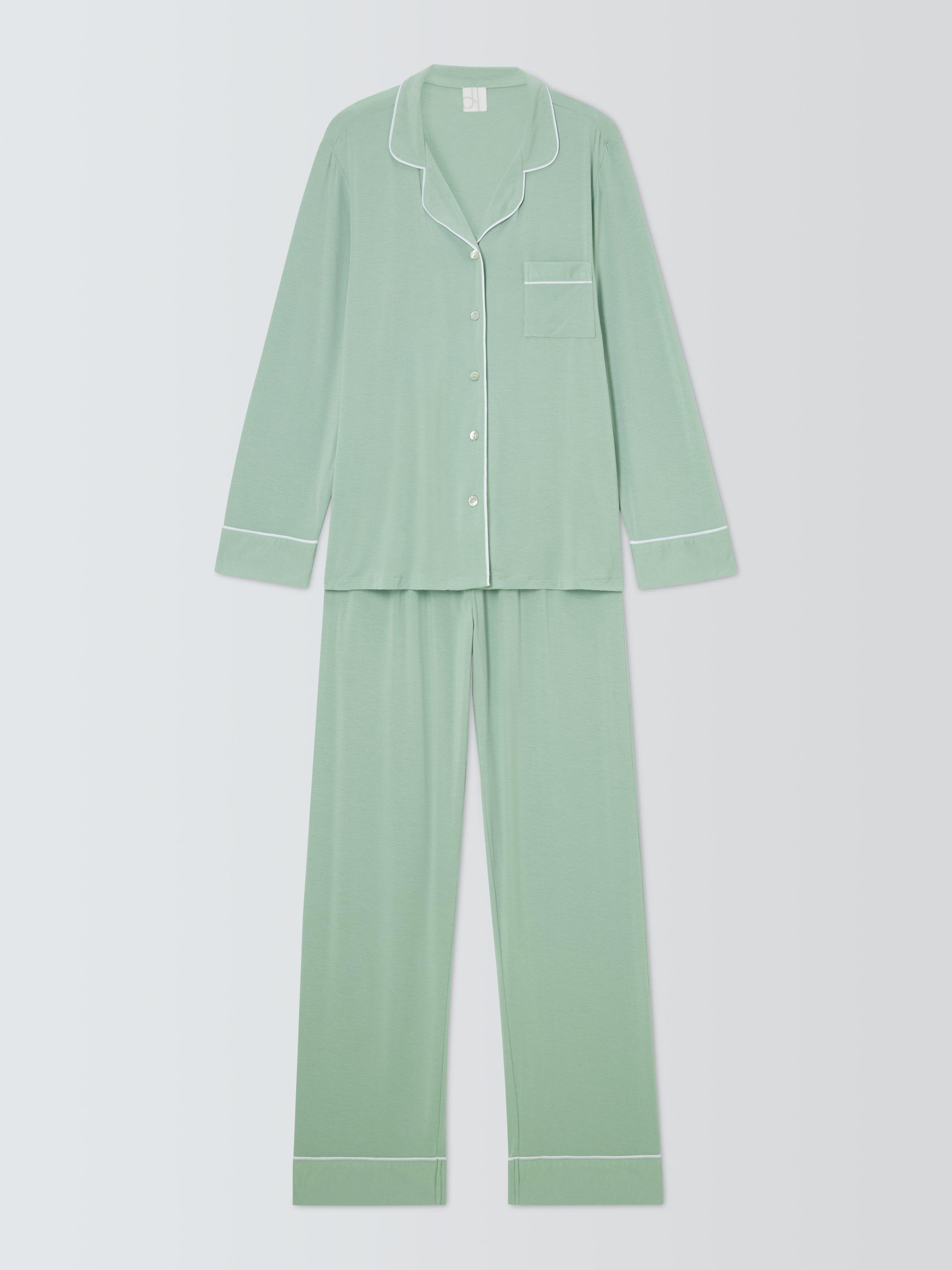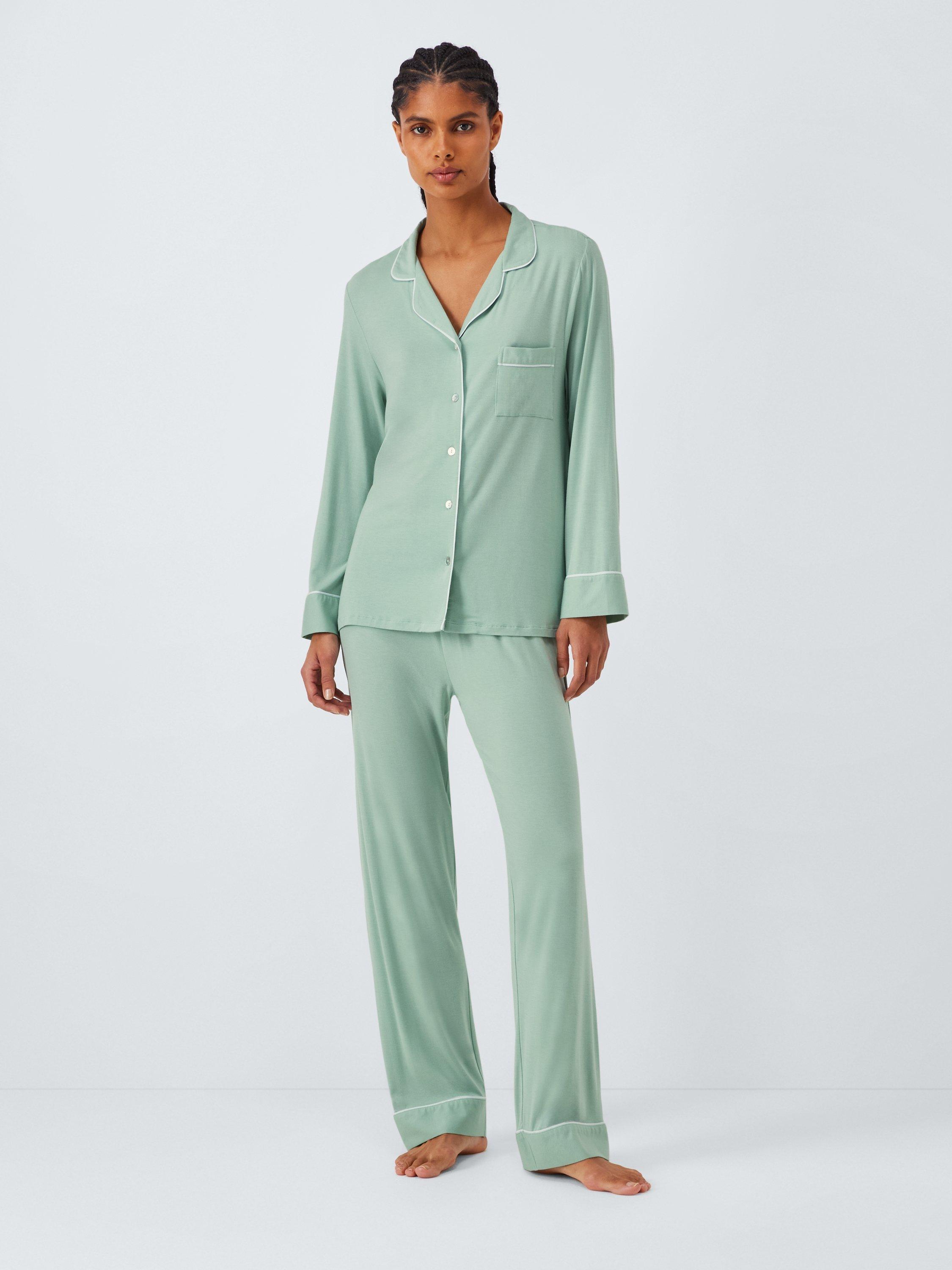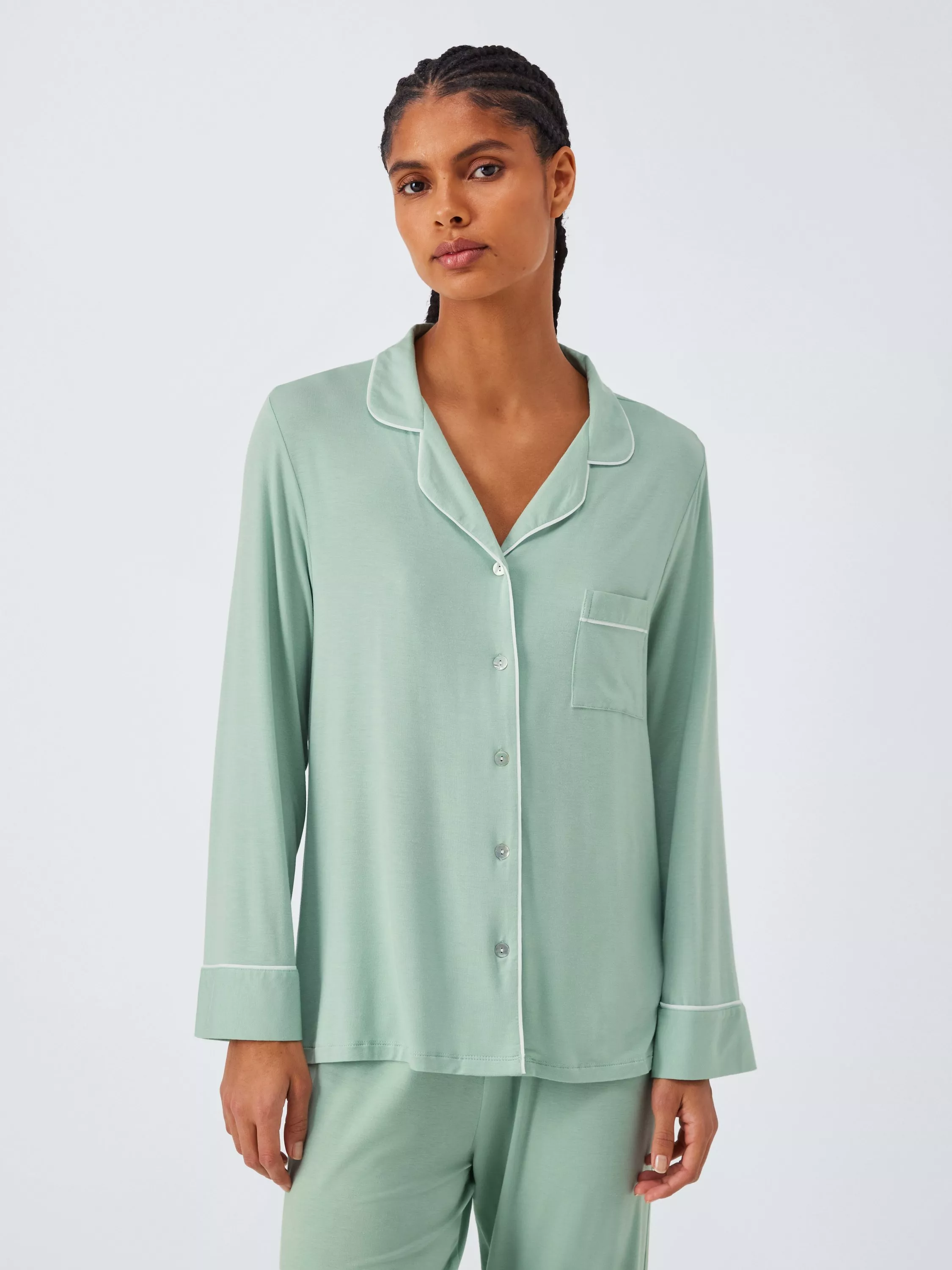 Offering a relaxed, fluid fit in soft modal jersey, our Aria pyjamas are a cosy, comfortable option for cooler nights. They feature straight-fit bottoms and a classic button-through shirt with full-length sleeves, while the curved collar gives the top a softer, feminine look. This set is finished with smart trims in a striking contrast tone.