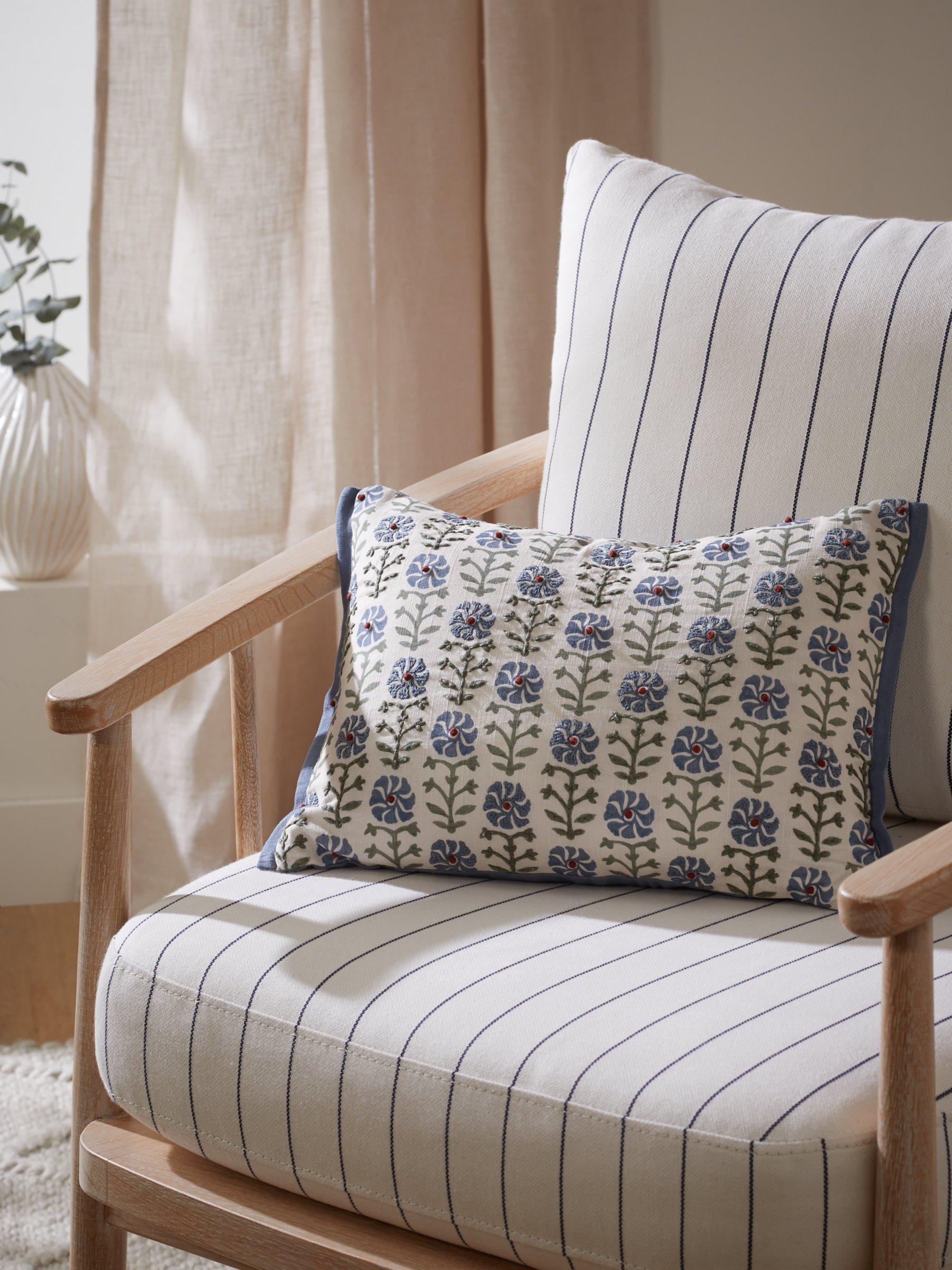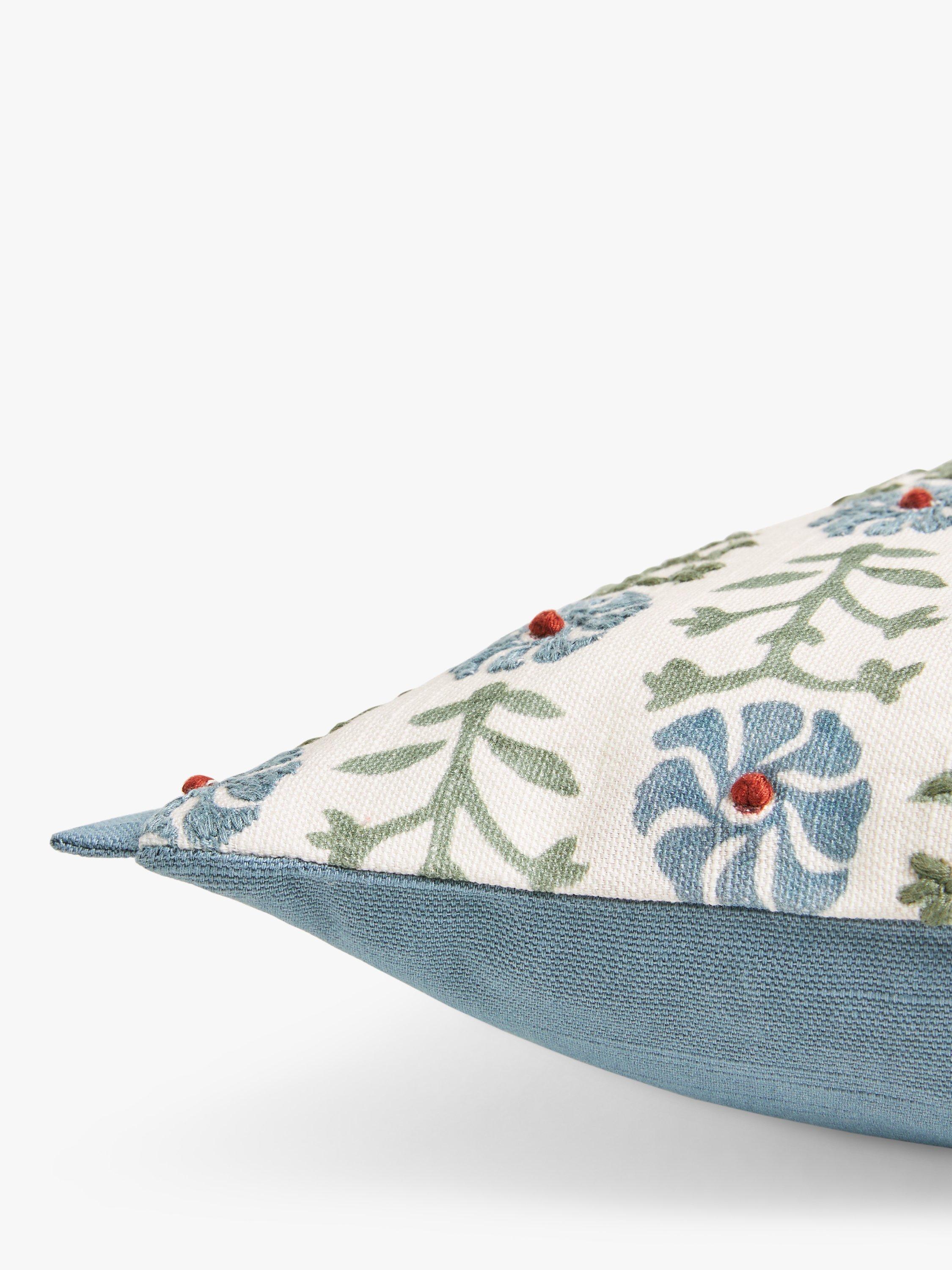Add country cottage charm to a bed or sofa with this cotton-printed cushion. It's finished with hand-guided machine embroidery and flanged edges.