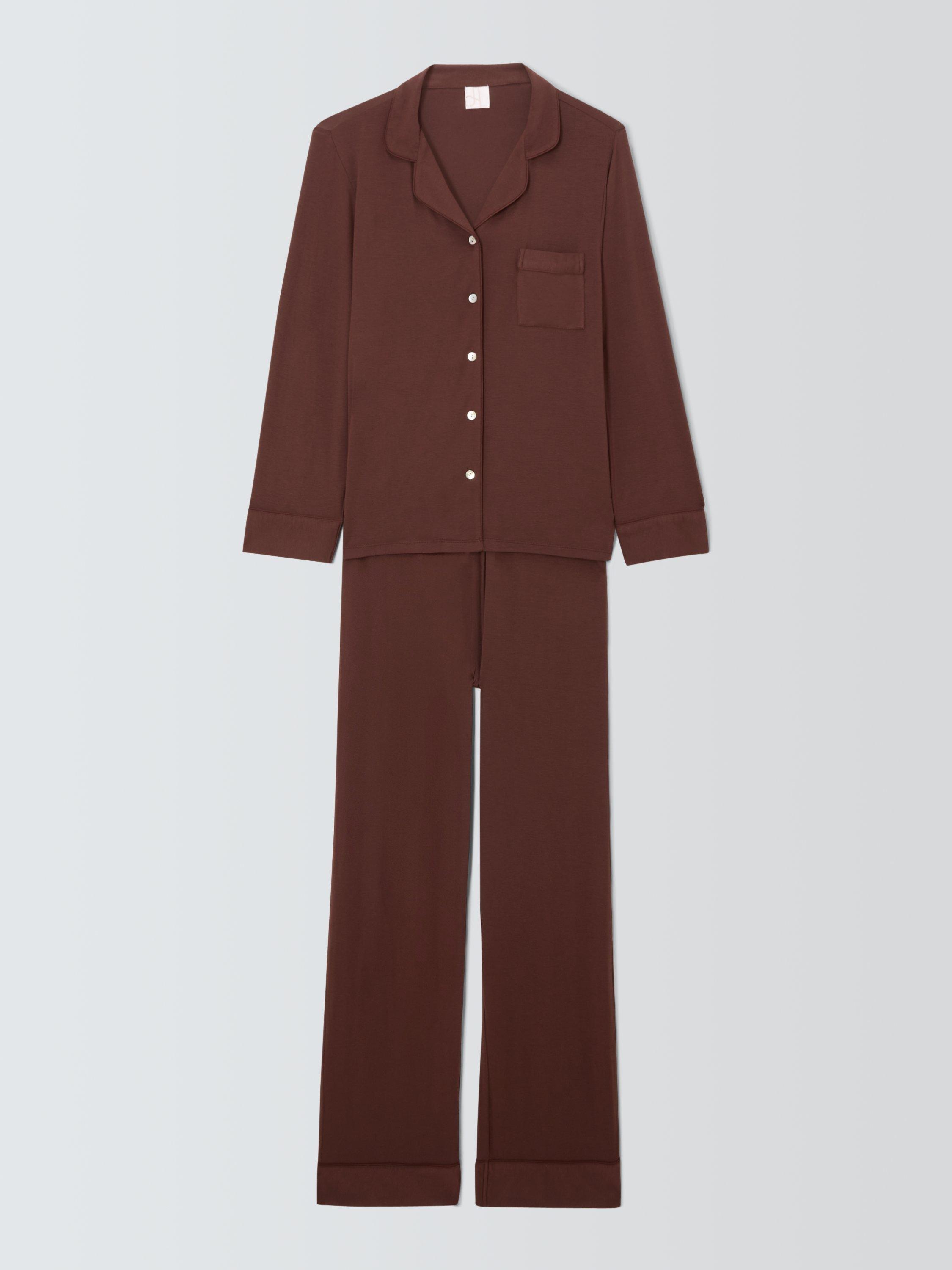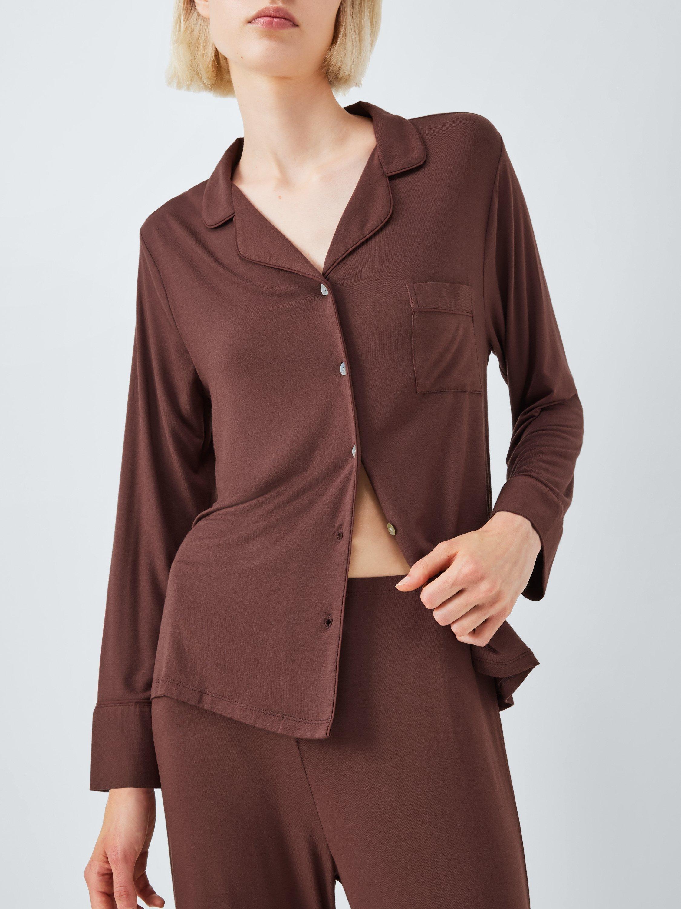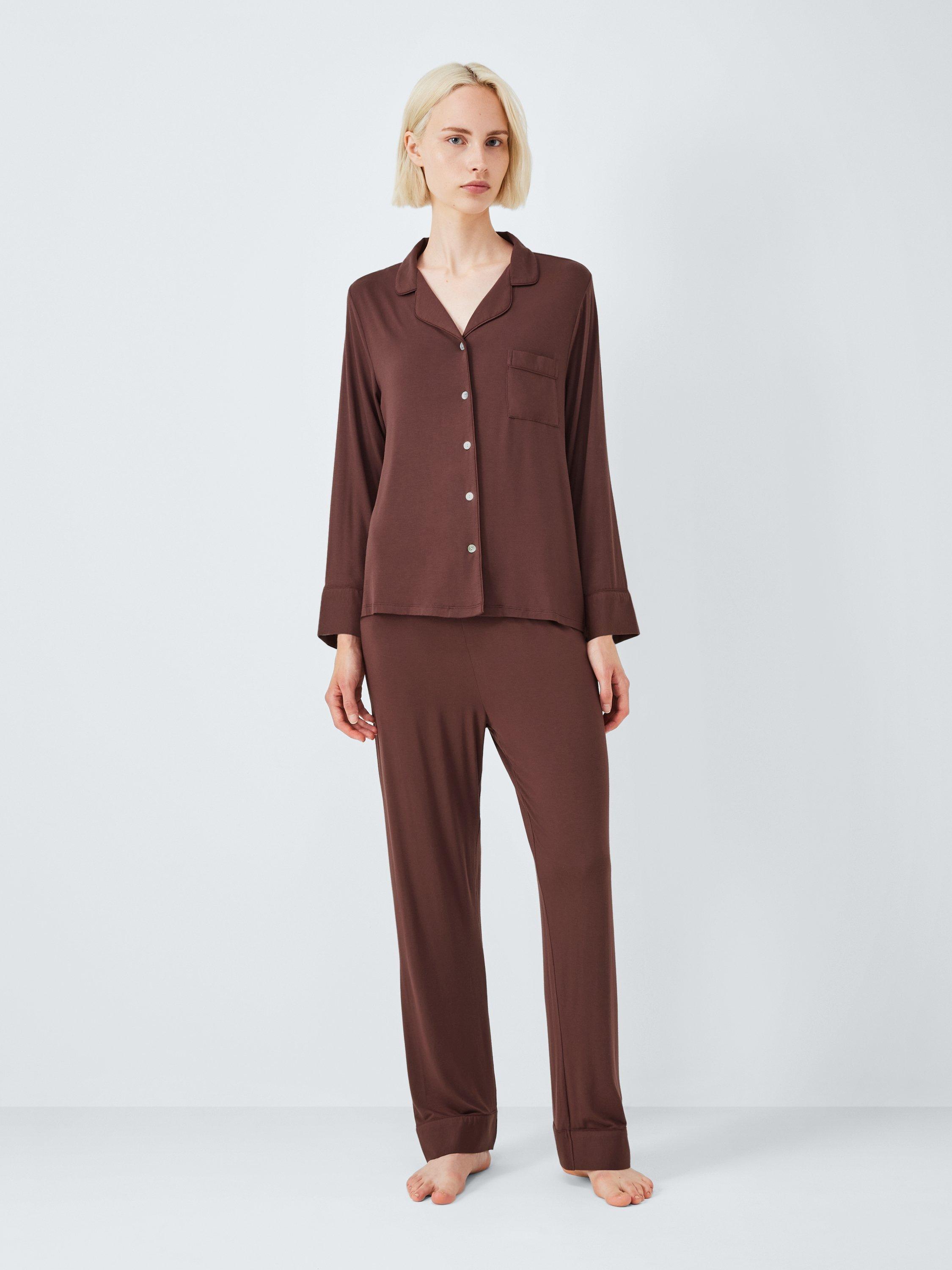 A staple of your pyjama drawer, this set comes with a revere collar shirt featuring natural shell buttons and a pair of bottoms with elasticated waistband and folded hems.