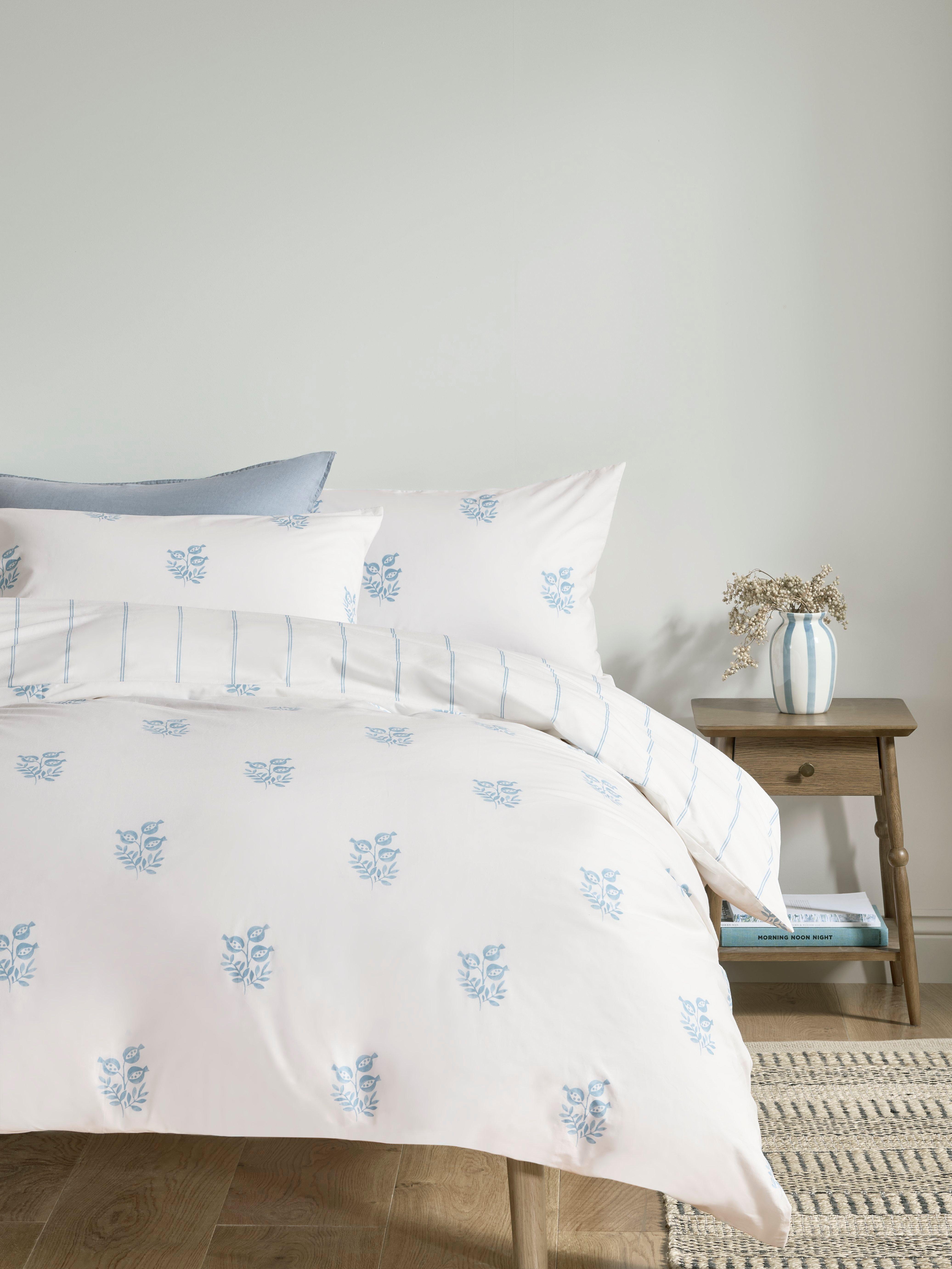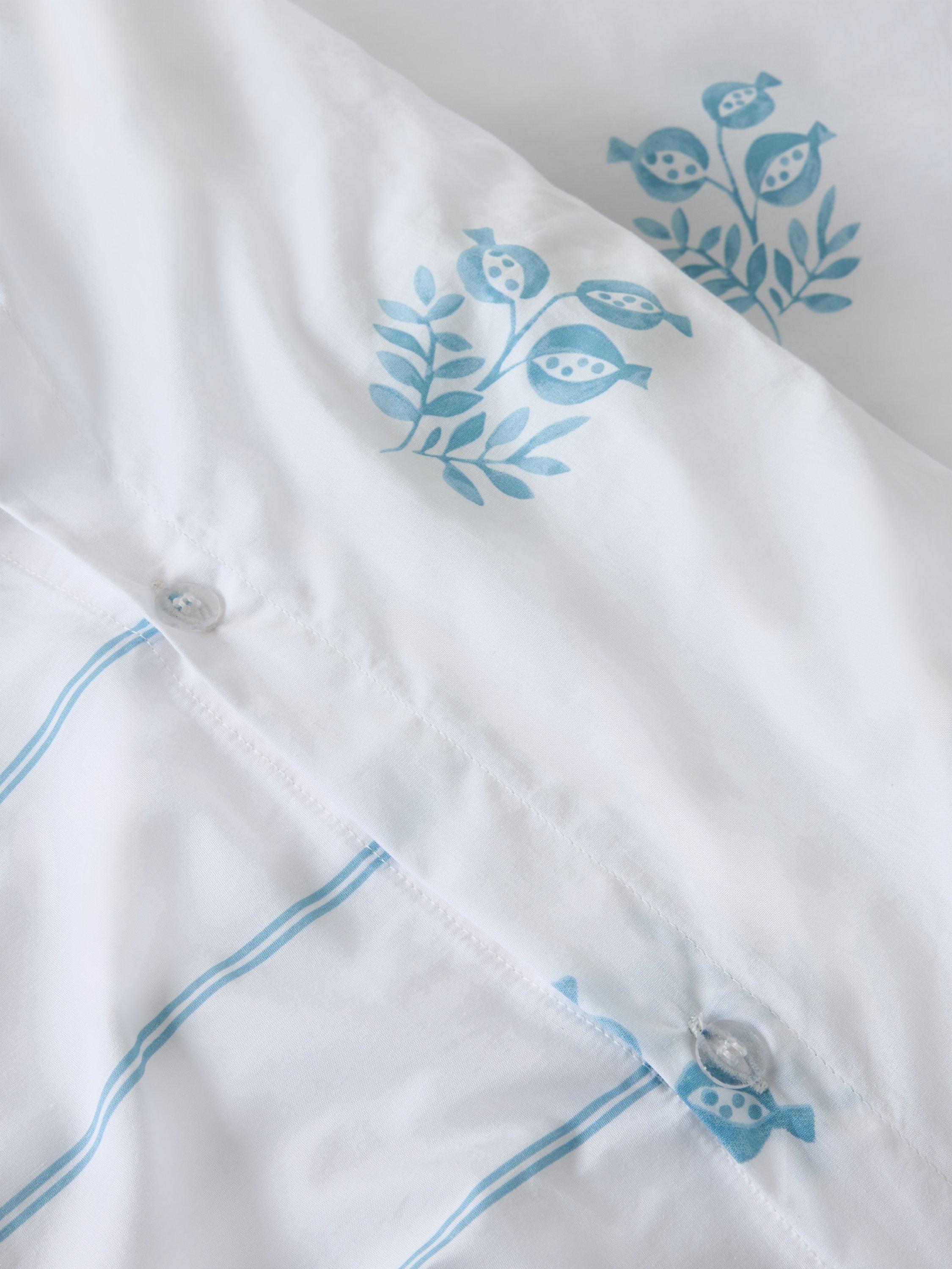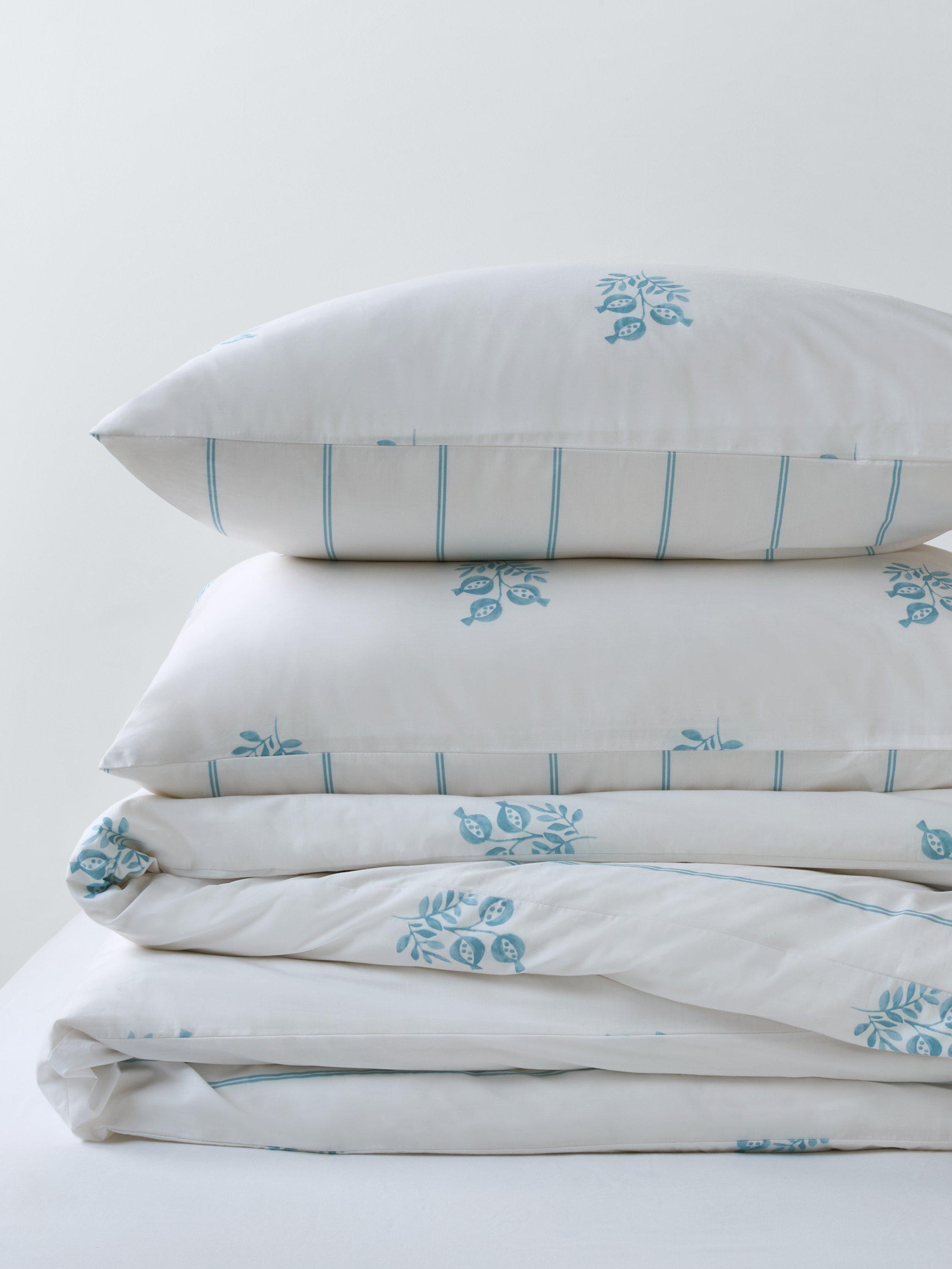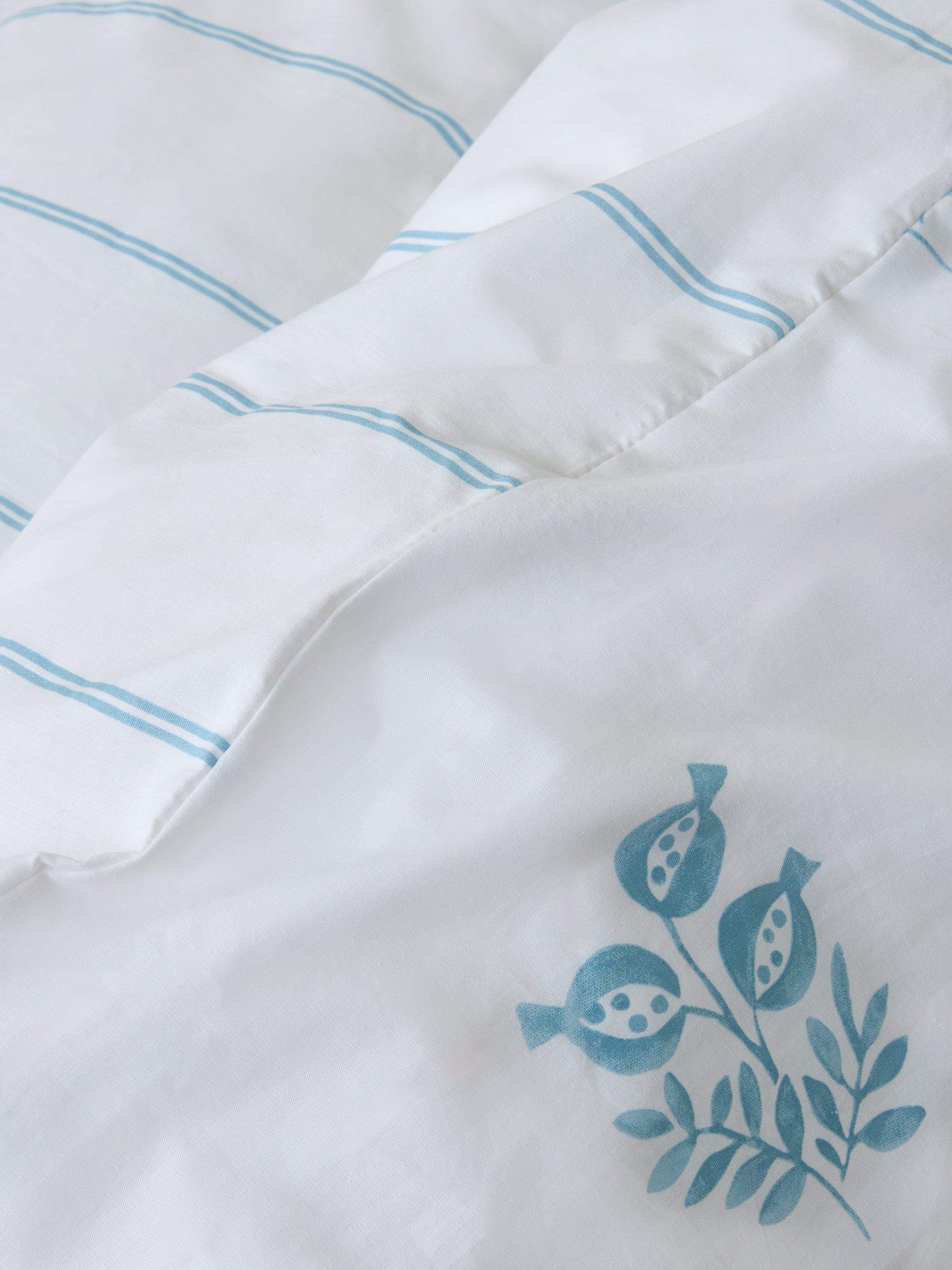 A fresh and pretty duvet cover set with stylised pomegranate clusters on the front and narrow stripes on the reverse.