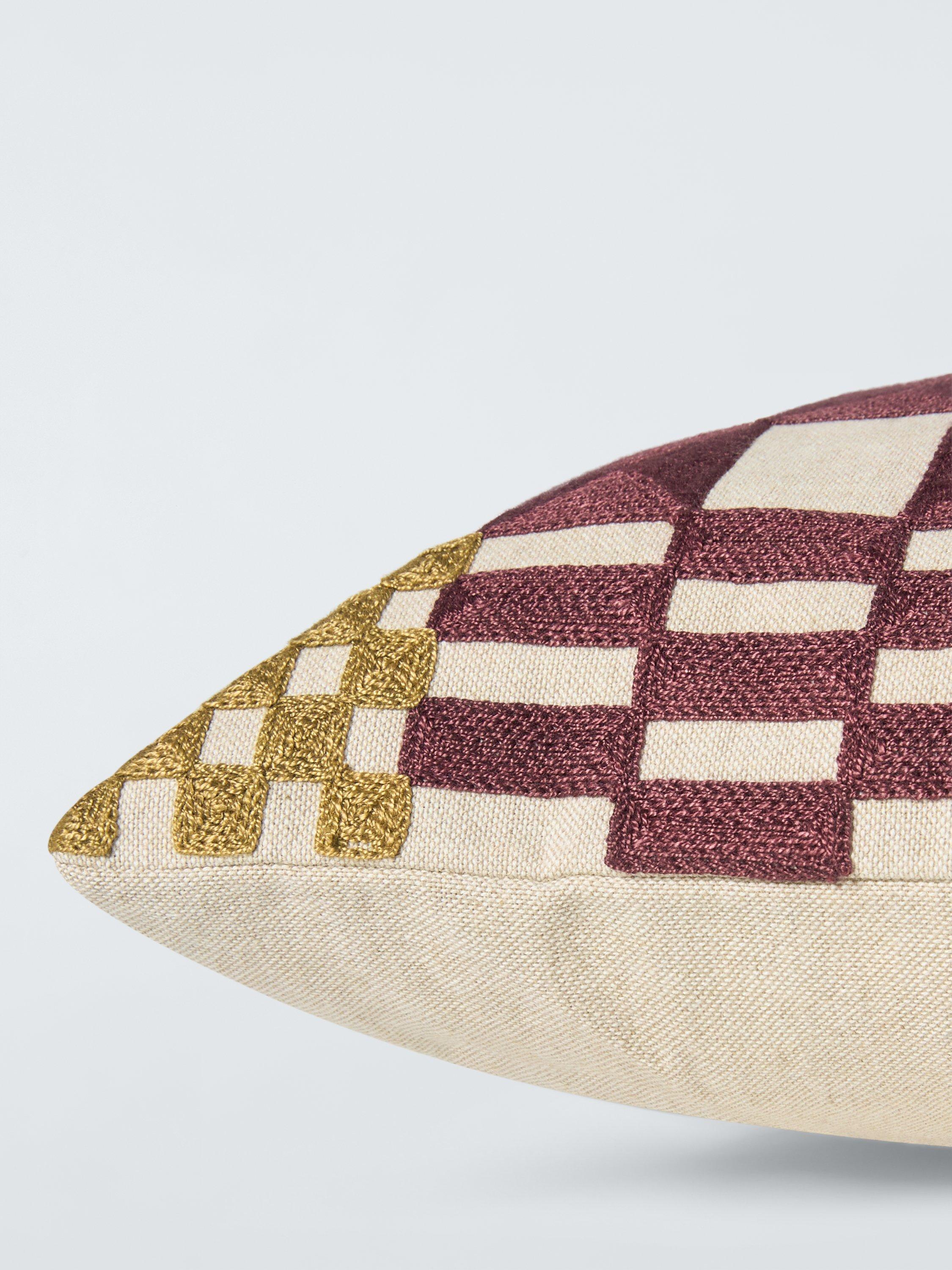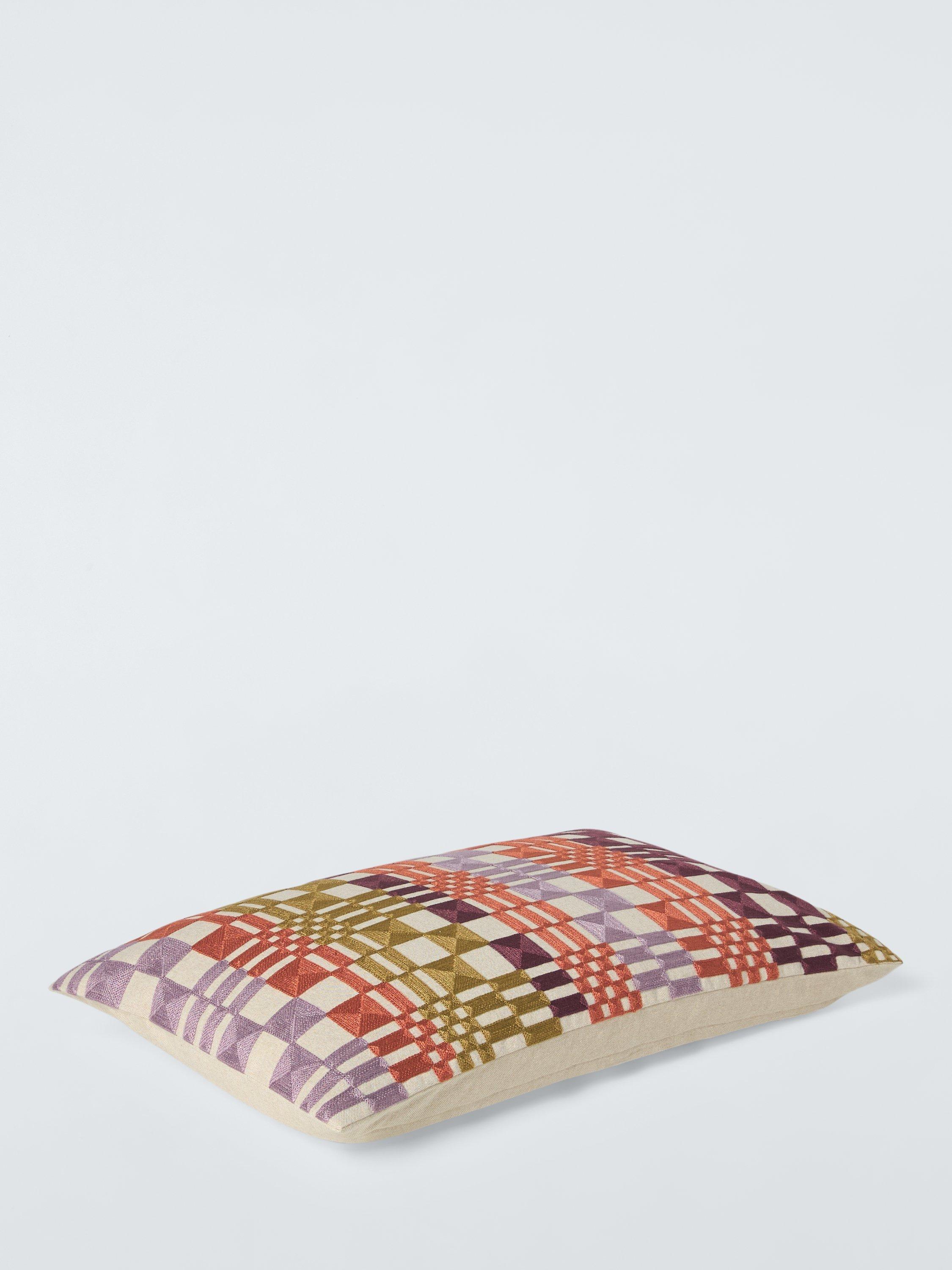 This colourful cushion engages the senses with its embroidered texture and eye-catching irregular check design.