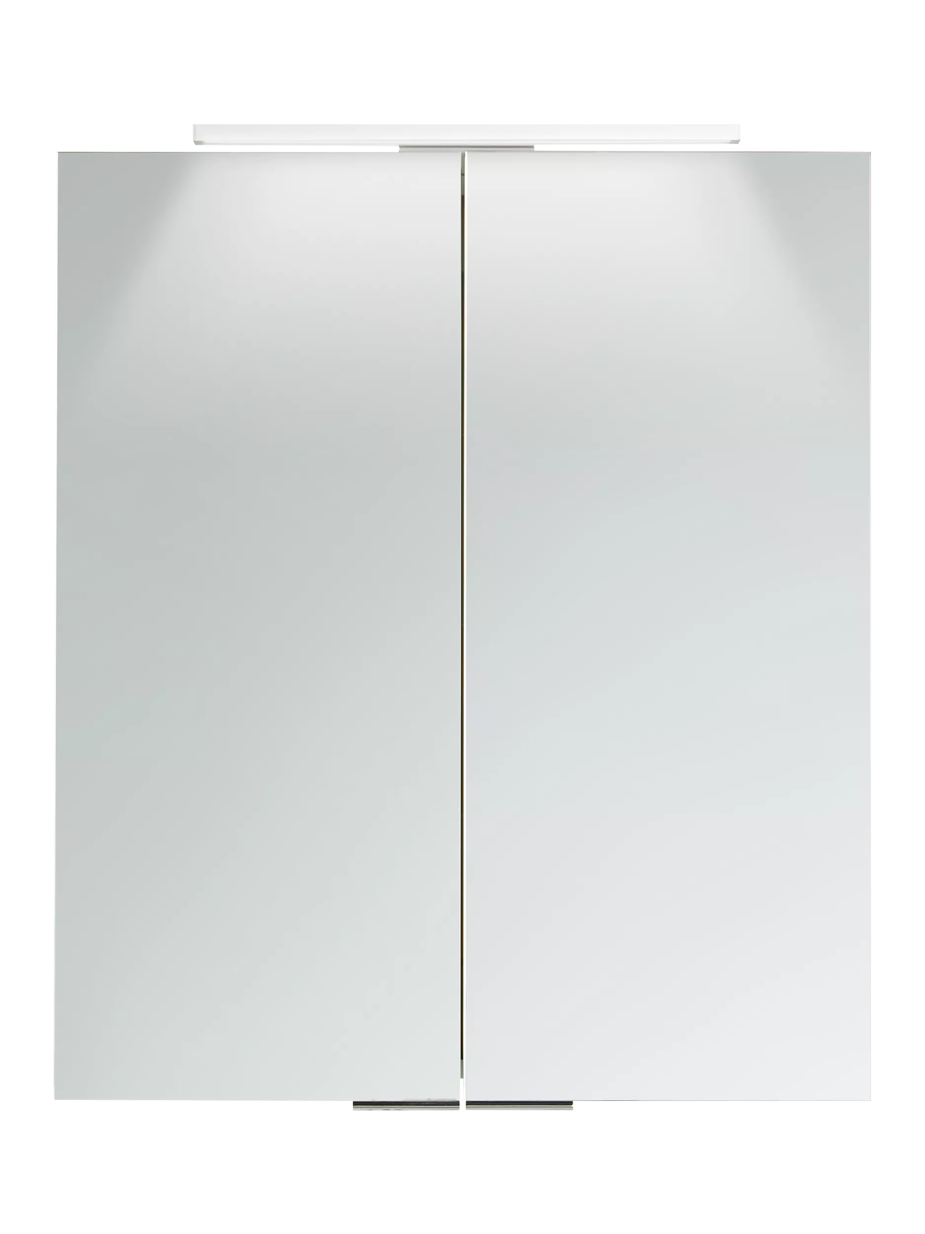 Our Ariel bathroom cabinet has two double-sided mirror doors and overhead LED illumination.