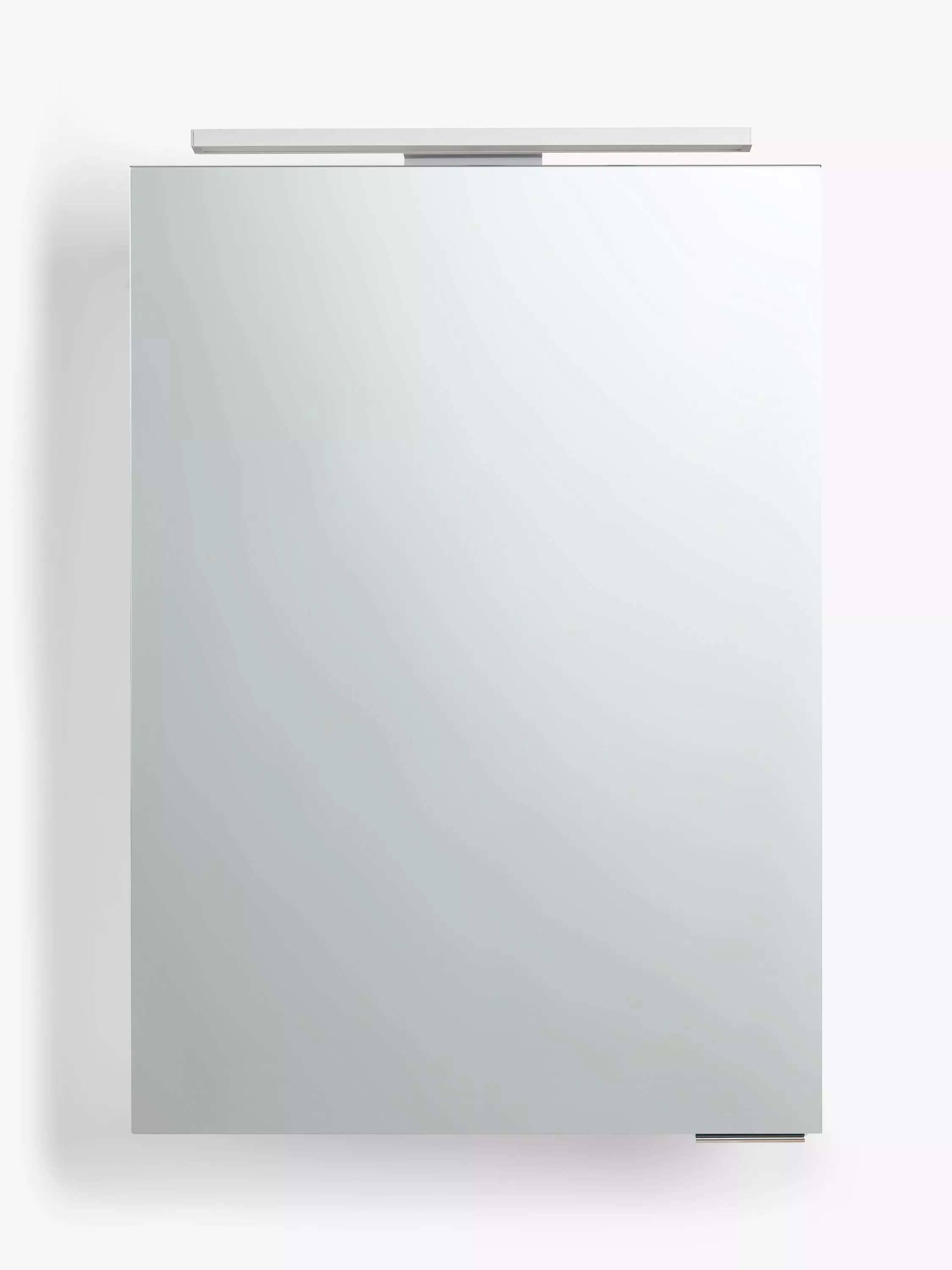 Our Ariel bathroom cabinet has a double-sided mirror door and overhead LED illumination.