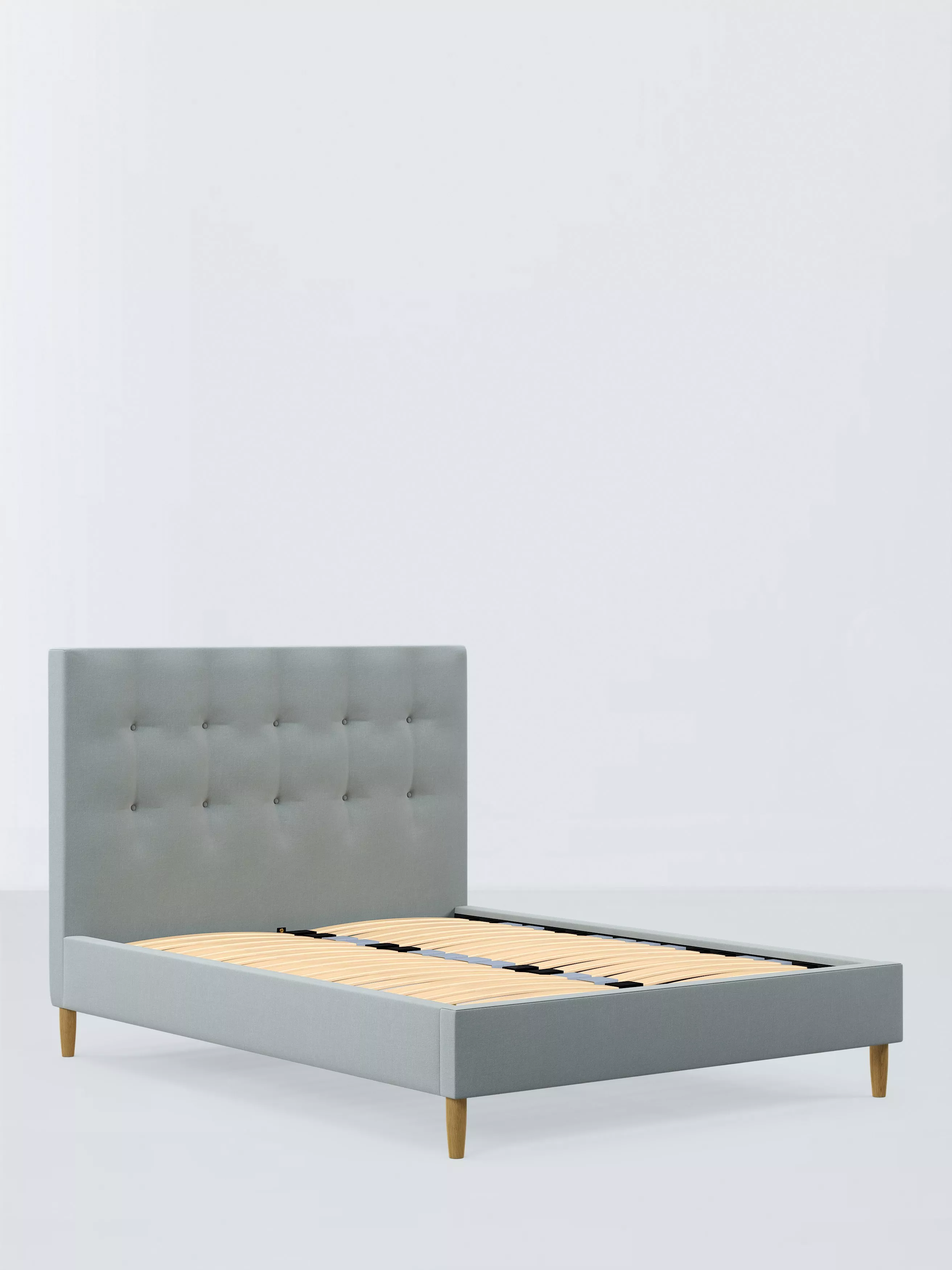 Our Arlo bed frame boasts timeless style with a versatile, clean-lined shape. Designed with button detailing, the headboard is foam filled to ensure optimal comfort, supported by curved wooden legs. We've added sprung Smart Slats to the base which provide enhanced support where you need it most.