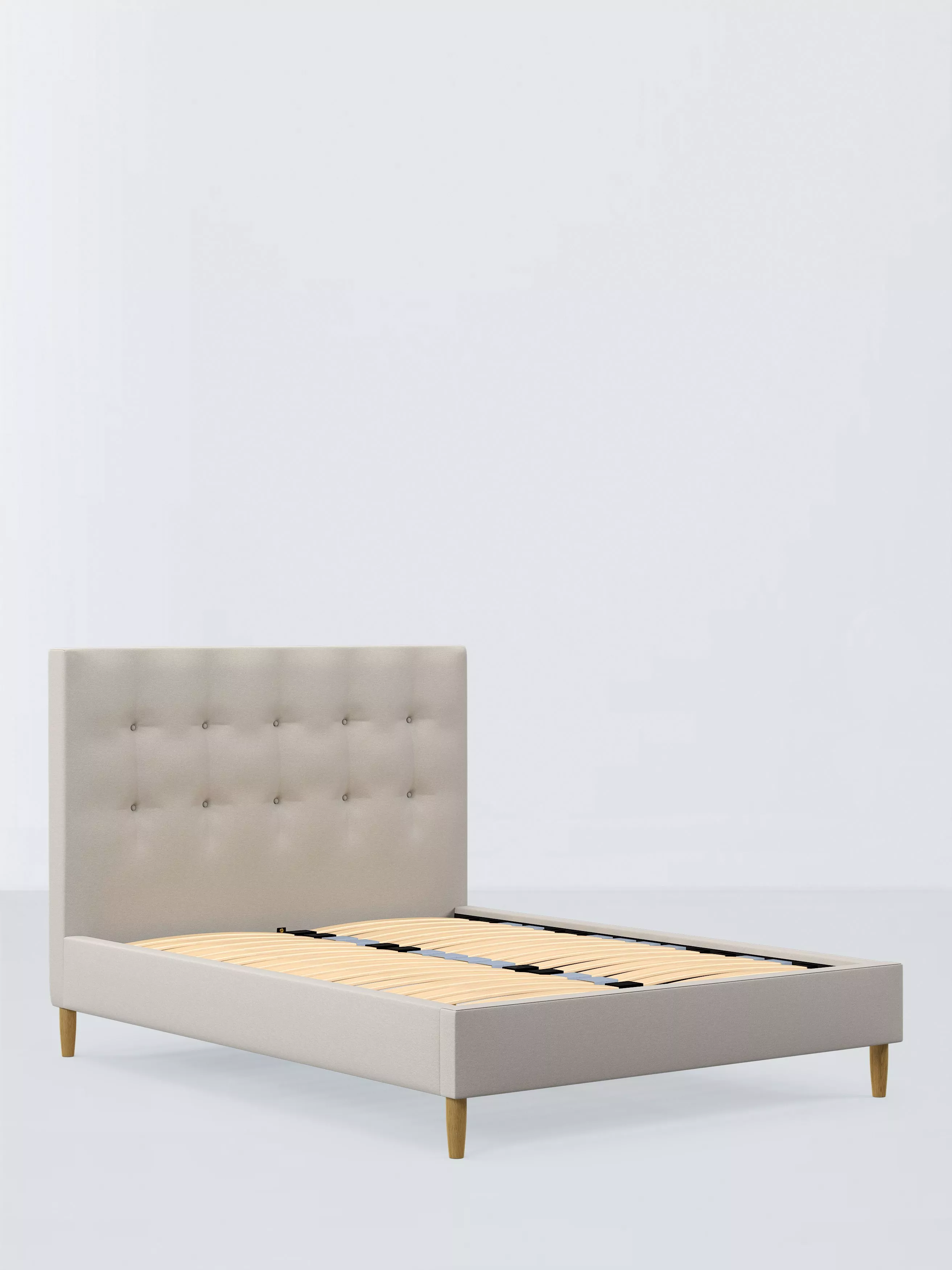 Our Arlo bed frame boasts timeless style with a versatile, clean-lined shape. Designed with button detailing, the headboard is foam filled to ensure optimal comfort, supported by curved wooden legs. We've added sprung Smart Slats to the base which provide enhanced support where you need it most.