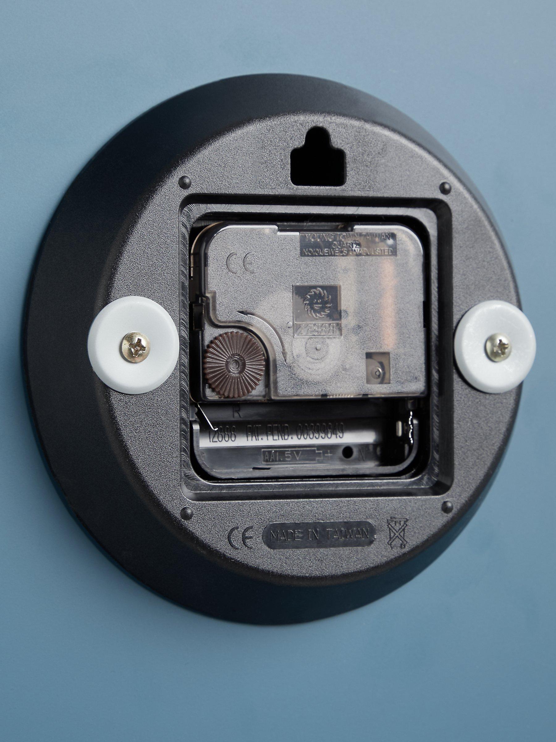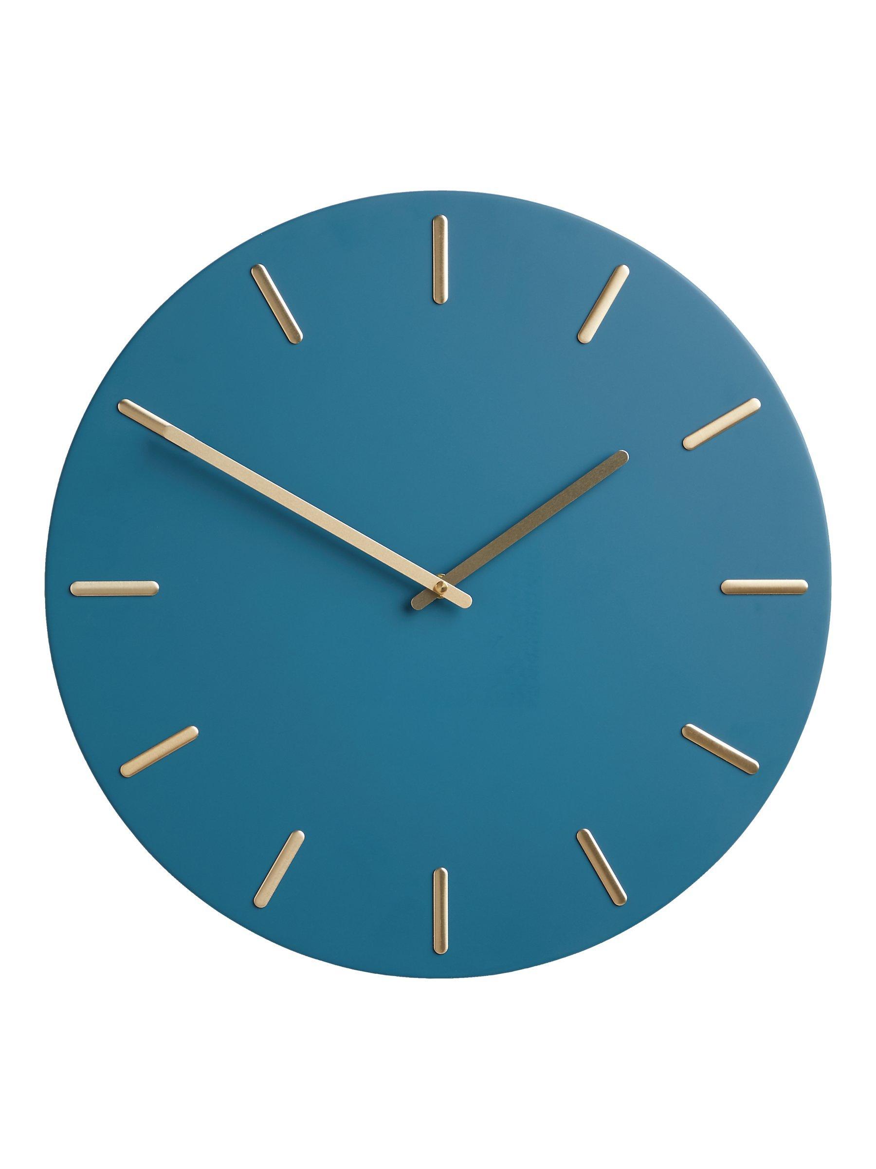 Metallic hands in a brass finish and matching hour markers contrast beautifully with the understated clock face on the Arne wall clock. Hang it on the wall by the keyhole fitting on the back to enhance a room.
