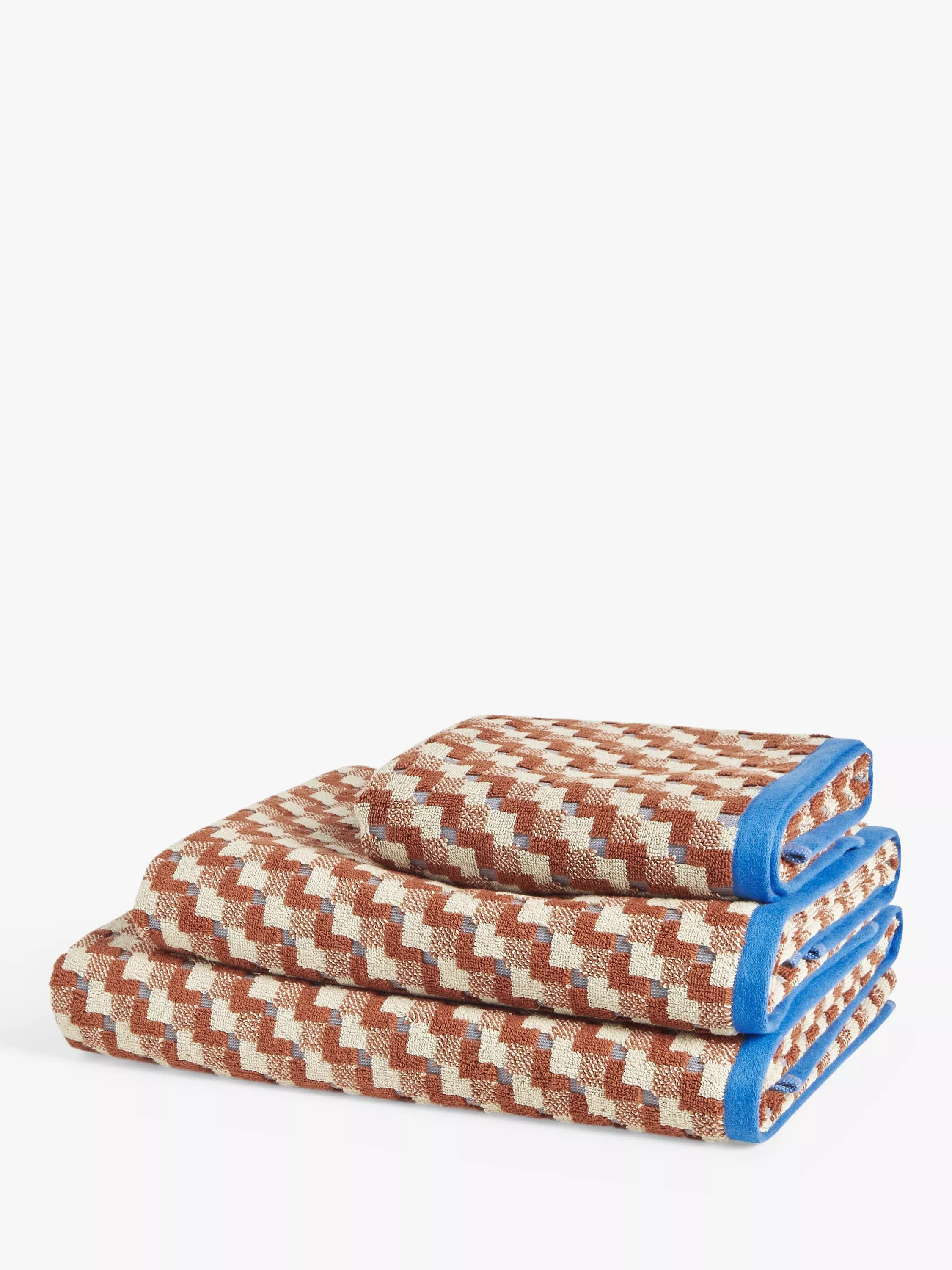The Jacquard finish of these colourful towels enhances the block pattern for a 3D look.
