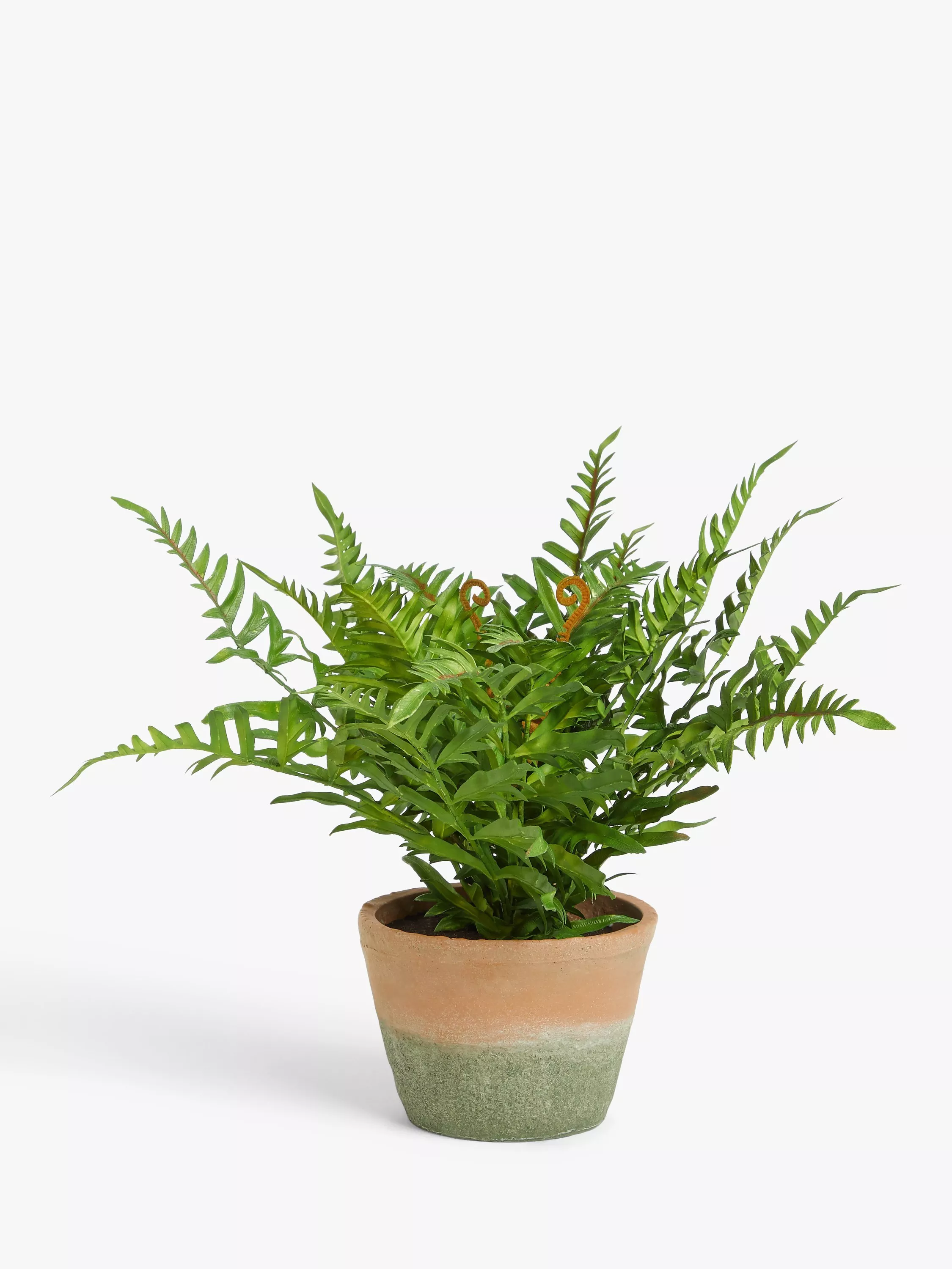 A great, maintenance-free way to add some style to your home, this artificial fern bush is presented in a charming terracotta pot.
