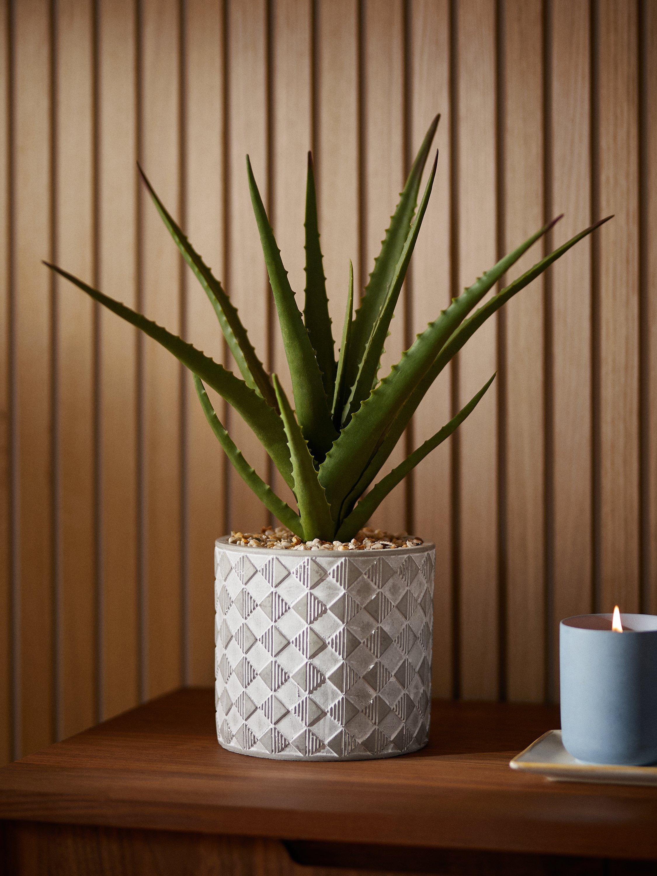 John LewisArtificial Large Aloe Plant & Concrete Pot