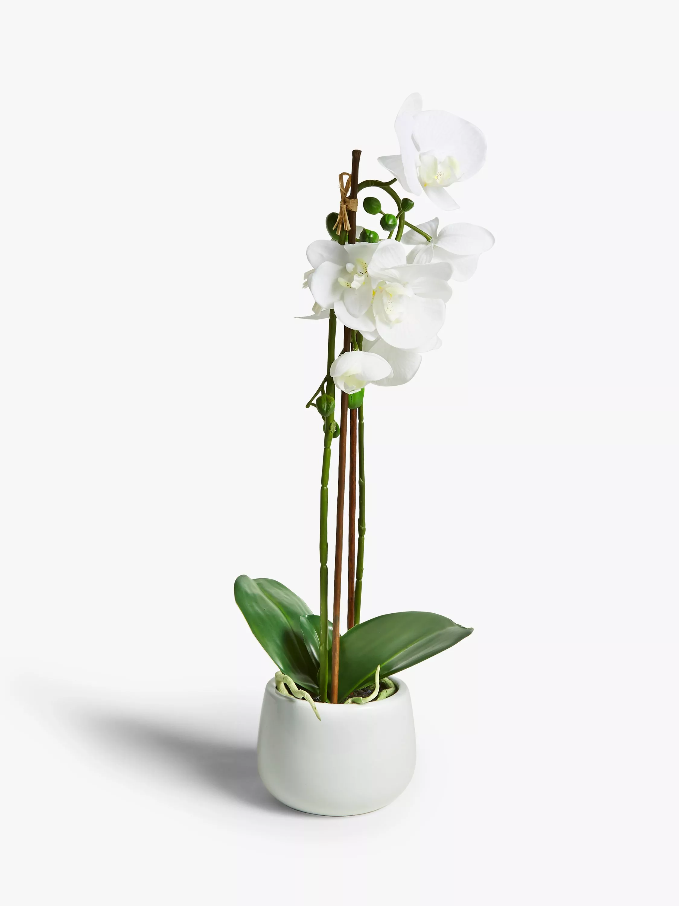 Created with a detailed bud and flower design, this artificial orchid comes in an understated ceramic pot meaning it will fit in well in both a neutral and colourful setting.