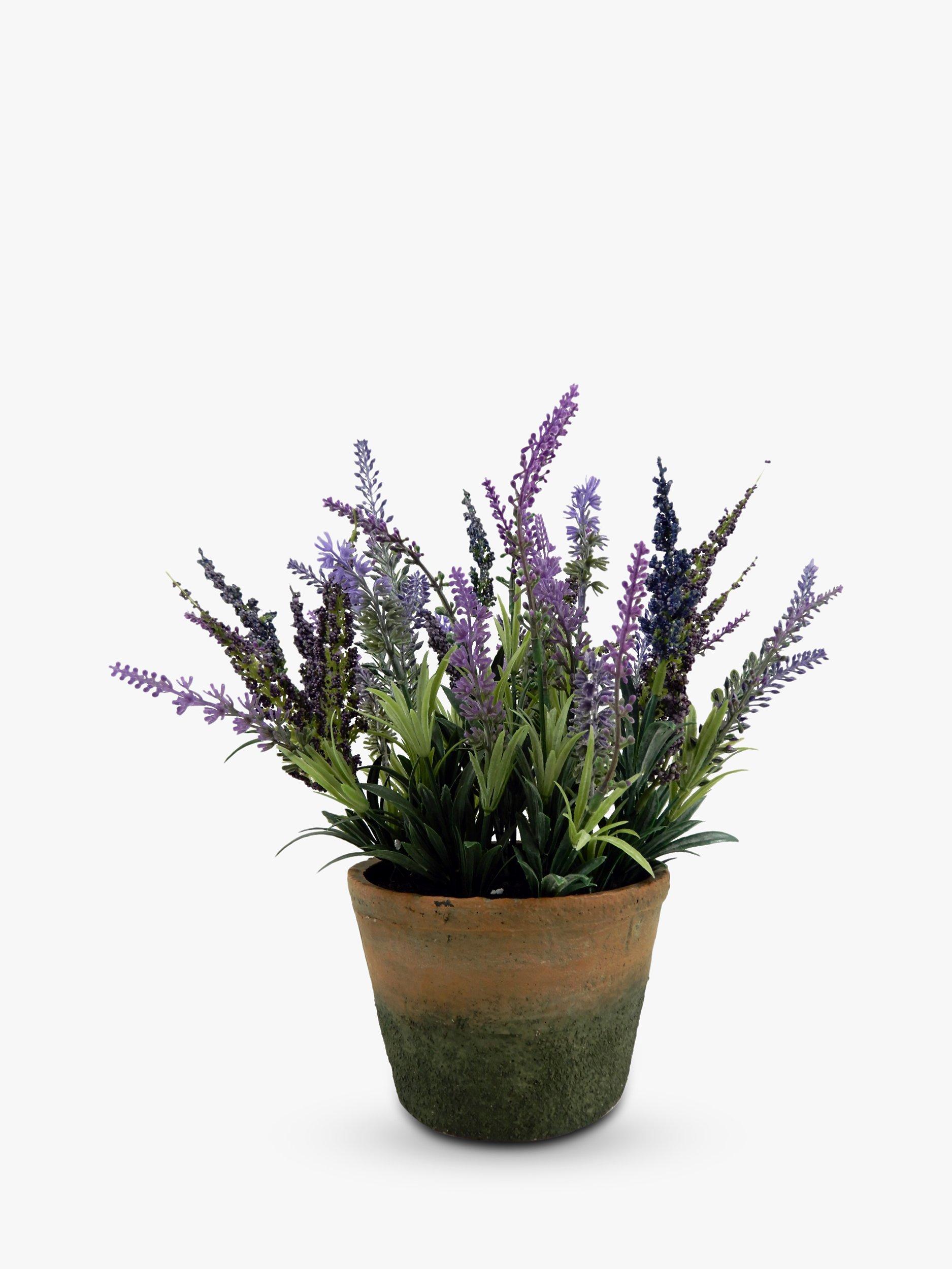 Enjoy the natural beauty of lavender without the overwhelming scent with our artificial but lifelike interpretation offered in a rustic-style cement pot.