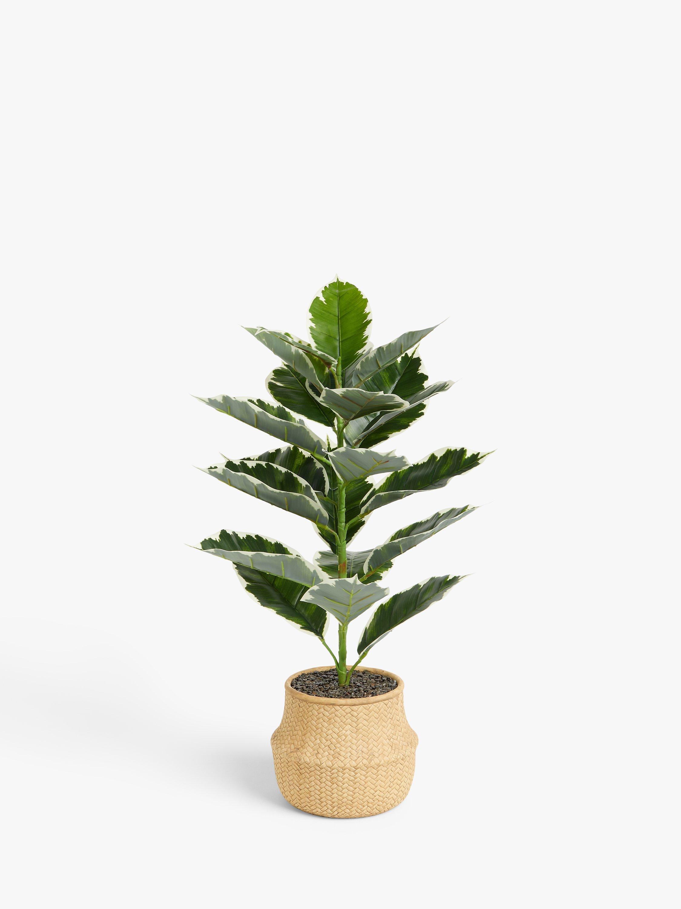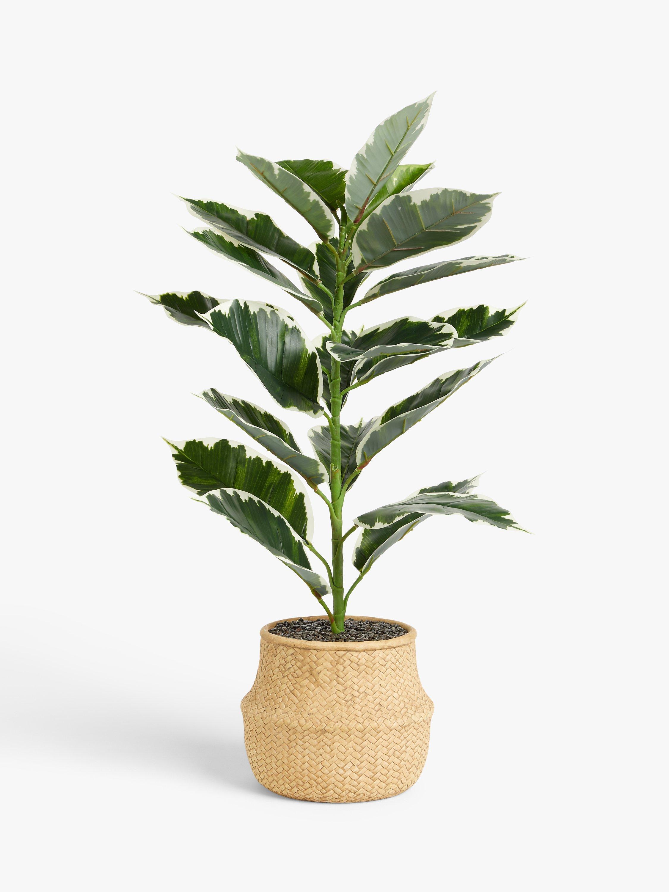 A great, maintenance-free way to add some style to your home, this artificial varigated fig is presented in a charming basket pot.