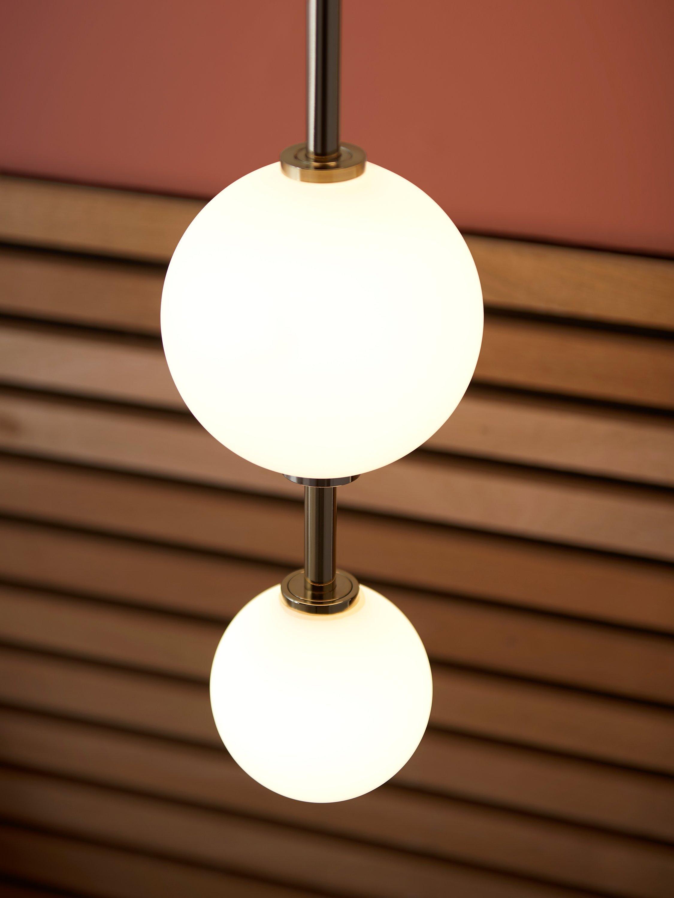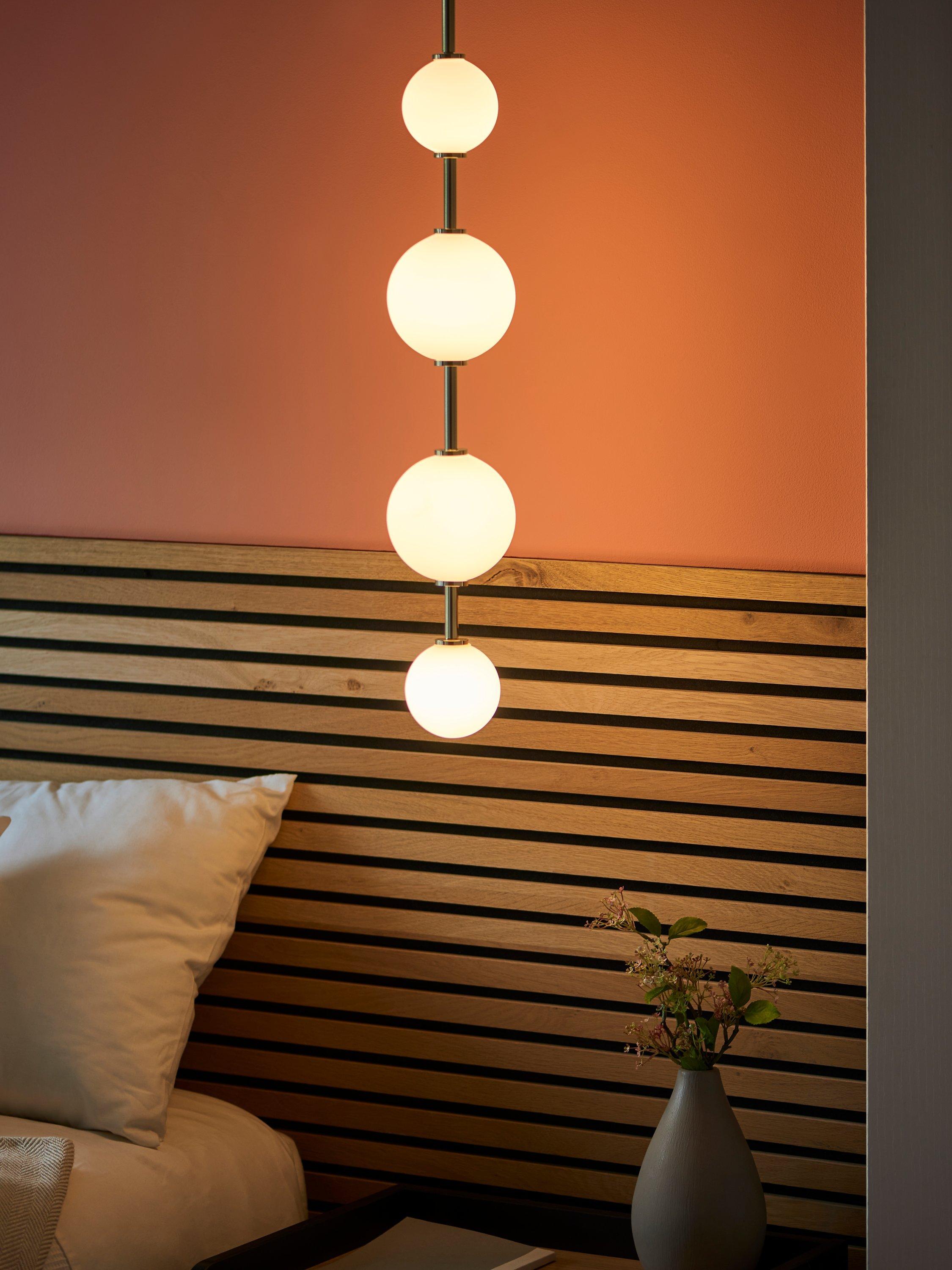 Create a refined, modernist look with our Ascend LED pendant - our new take on sofa-side and bedside lighting. The linear form and statement height will have a trans-formative effect on any interior. The LED light source means that the glass is evenly lit and energy efficient.