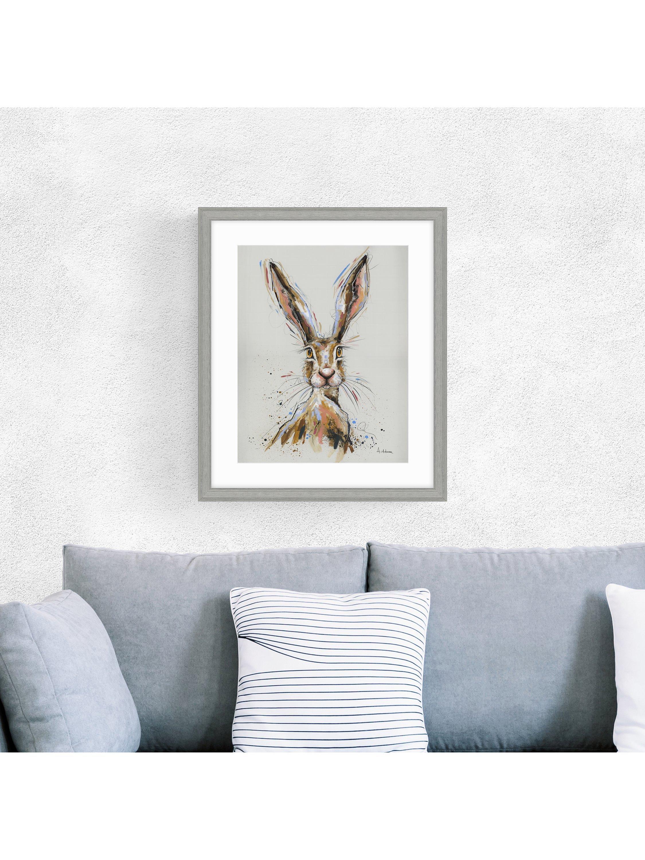 A quirky wild hare by artist Ashley Saunders. Made in the UK, this print is mounted, glazed and framed, ready to hang on your wall.